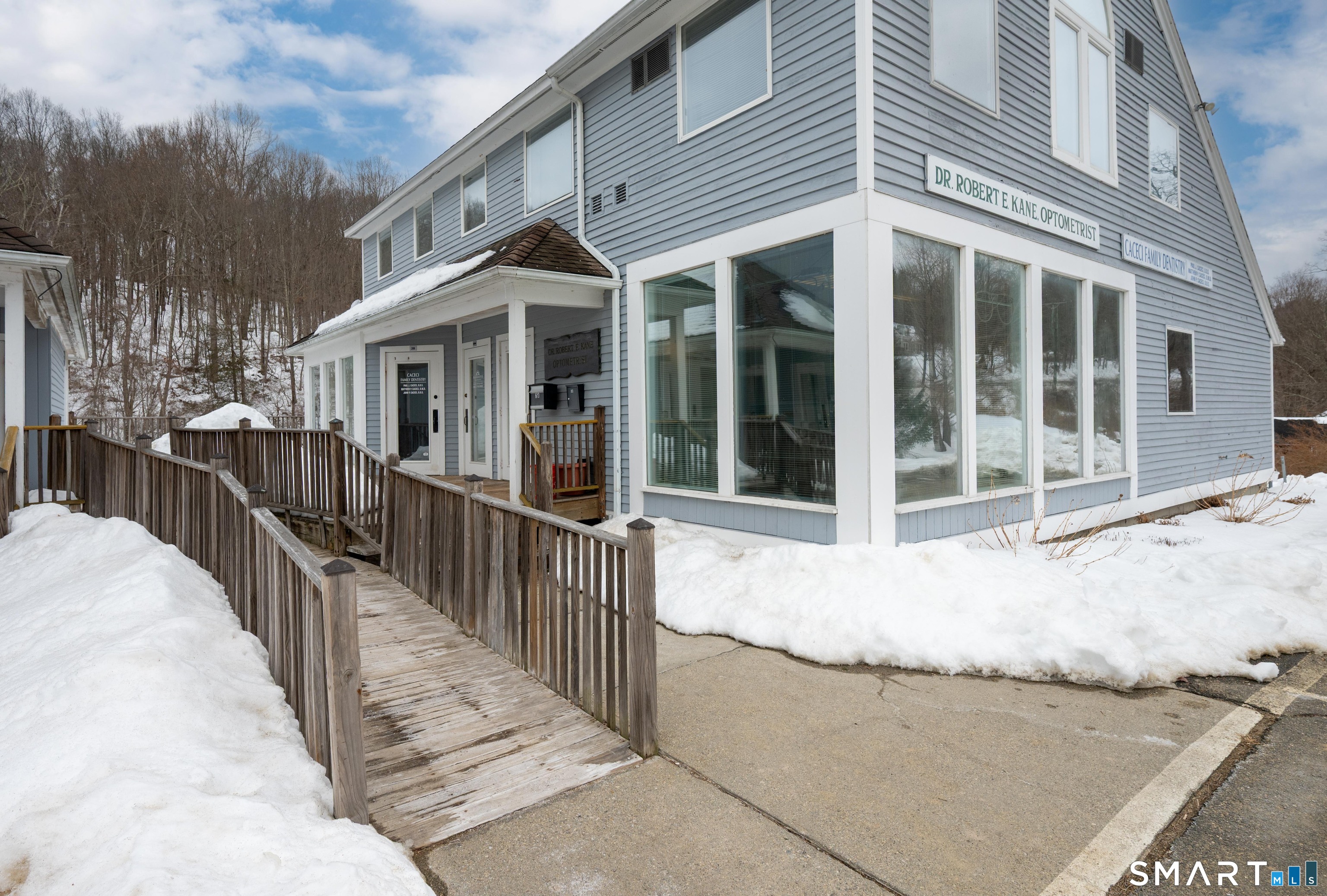 Unit available in Stonemill Commons, Well-located commercial condominium for sale in the heart of New Preston/Marbledale, directly on New Milford Turnpike (Route 202), offering excellent visibility and high traffic exposure. This unit has been home to a long-established and successful optometry practice, demonstrating the strength and functionality of the location for professional and medical use. The interior features a versatile and efficient layout with a welcoming sitting/waiting area, dedicated reception space, private office, a large interior room suitable for exam rooms or conference space, additional treatment or office rooms, and a shared bathroom. Sinks in each room, totaling 3. (Refer to floor plan for current layout configuration.) The floor plan allows for excellent separation between public and private areas and supports a variety of professional configurations. Shared lower level that includes kitchen area/break room, bathroom and large basement storage. Convenient access to surrounding Litchfield County towns including New Milford, Washington, and Litchfield. Ideal for medical, professional, wellness, financial, or service-oriented businesses. Owner-user or investment opportunity.