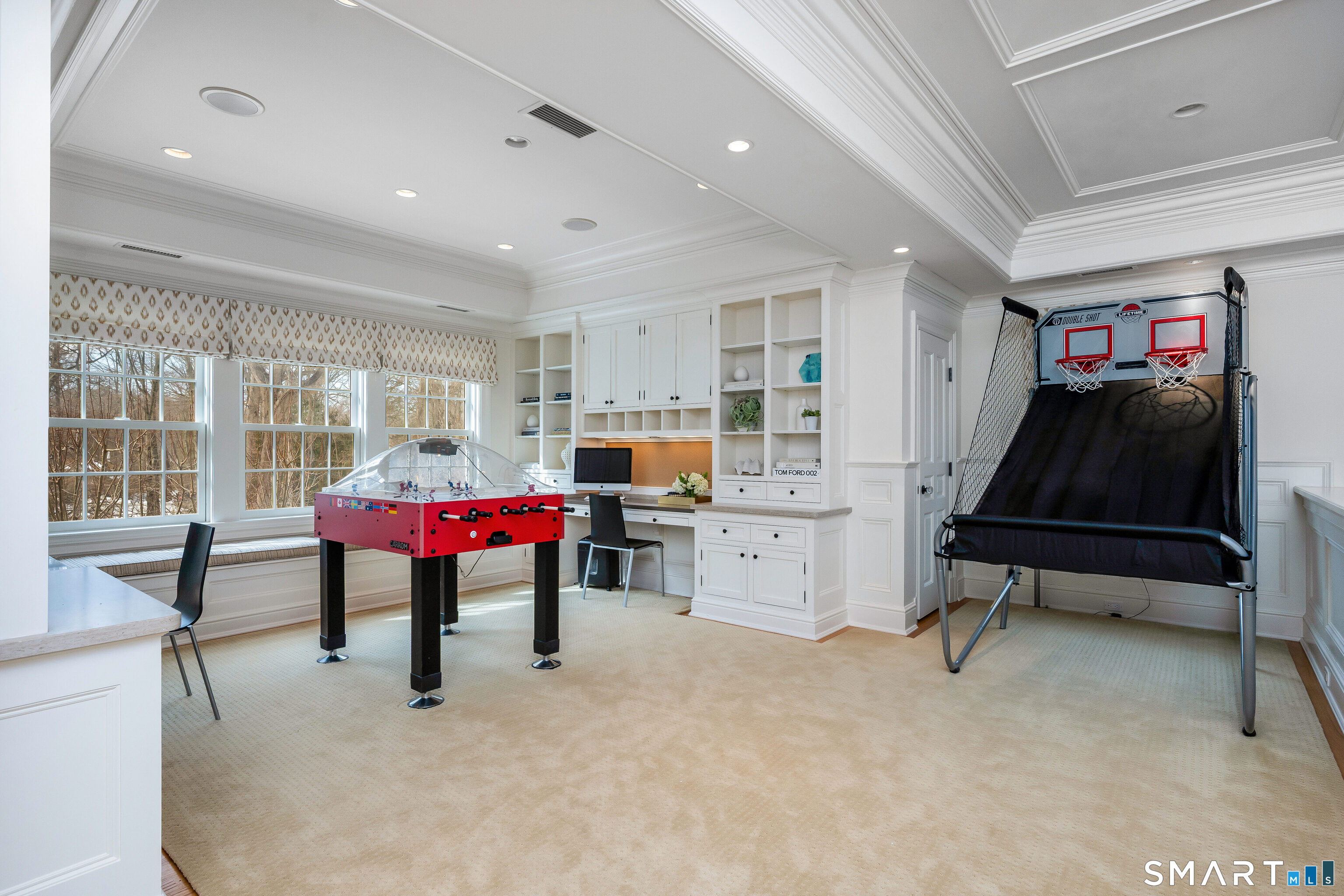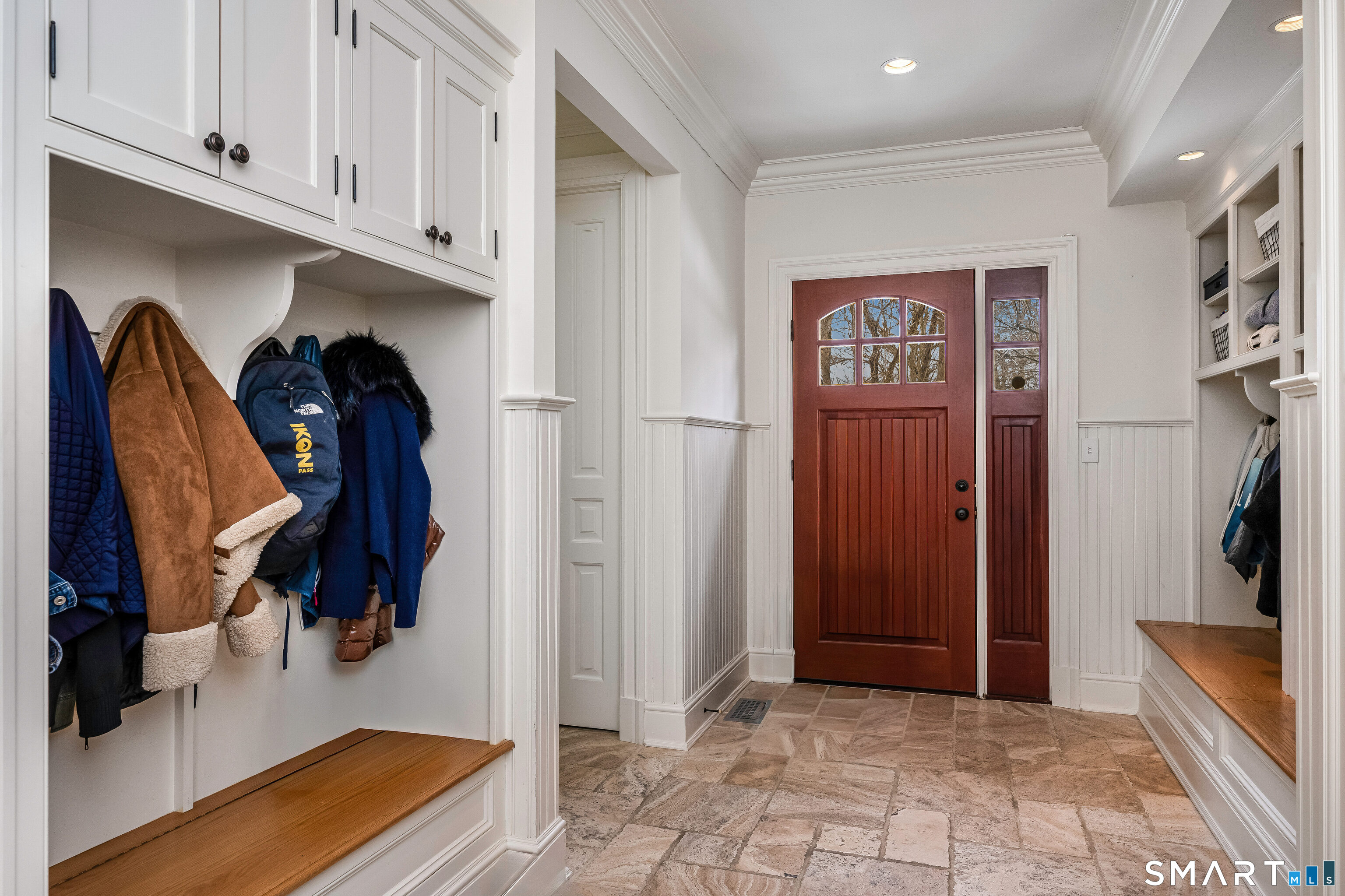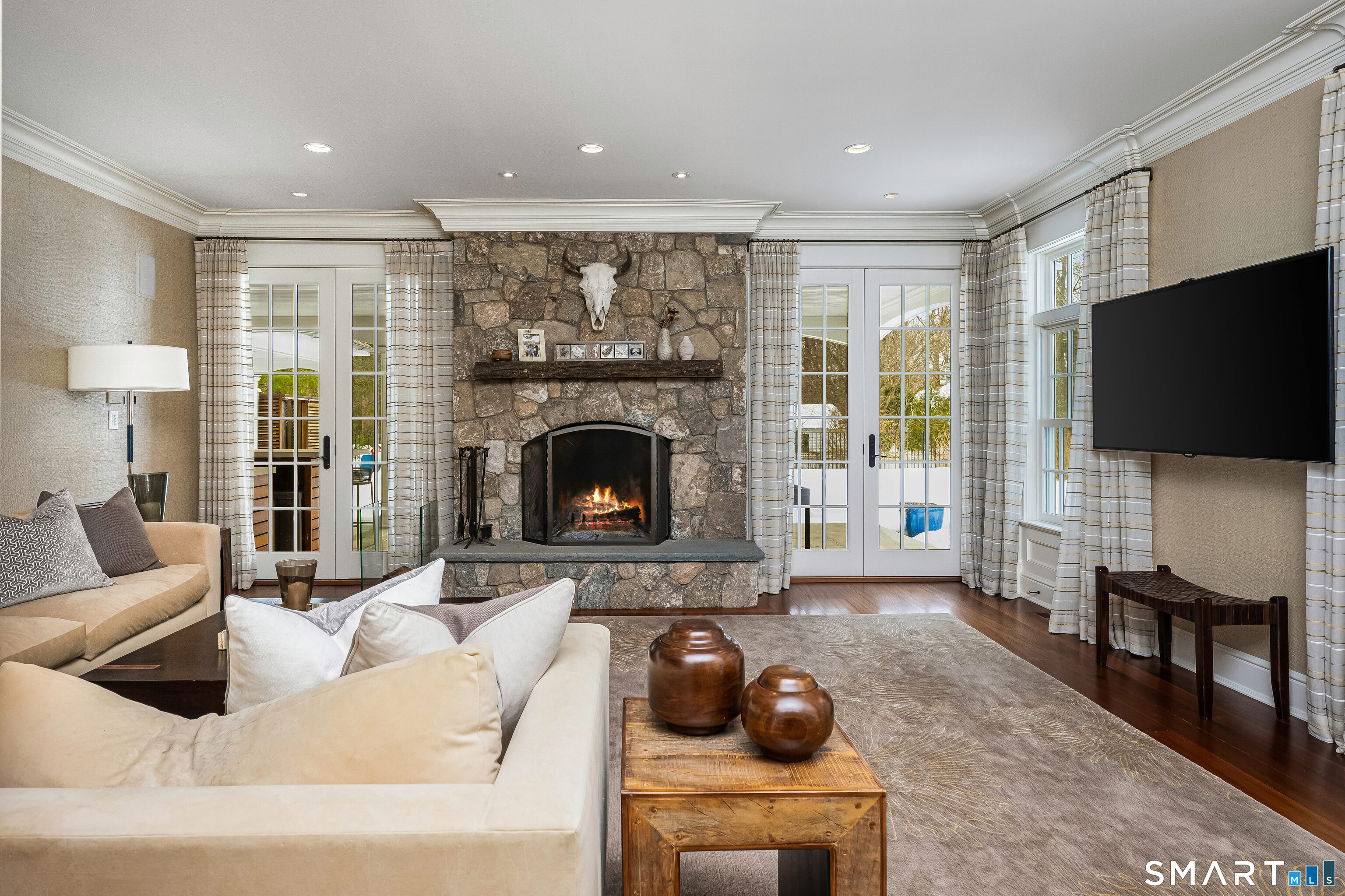 Welcome to 473 Hollow Tree Ridge Road in Darien - a custom built, stone and shingle Colonial set on 1.3 professionally landscaped acres offering exceptional indoor and outdoor living. This 5-bedroom smart home blends timeless architecture with extensive upgrades and modern technology throughout. The resort-style backyard features a pool with spa, pool house with nano doors, outdoor shower, custom outdoor bar, Lynx grill, fireplace, and covered patio. A slate roof, horseshoe driveway, whole-house 25kW Generac generator, and oversized 3-car garage with heated epoxy floors, built-ins, and wainscoting provide both convenience and peace of mind. The fully remodeled kitchen includes a Wolf range, additional wall oven, Sub-Zero double refrigerator/freezer, double islands with prep sink and second dishwasher, Negresco granite and quartz countertops, island seating, and a wet bar with glass dishwasher and ice maker. A paneled office, homework stations, guest/au pair suite with private access, oversized mudroom, laundry, and two powder rooms complete the main level. Upstairs, the primary suite features a renovated spa bath with heated floors, freestanding tub, oversized shower with rain head, and custom walk-in closets. Two additional ensuite bedrooms, a fourth bedroom with hall bath, game room with full wet bar, media room, and office/workstations provide flexible living.