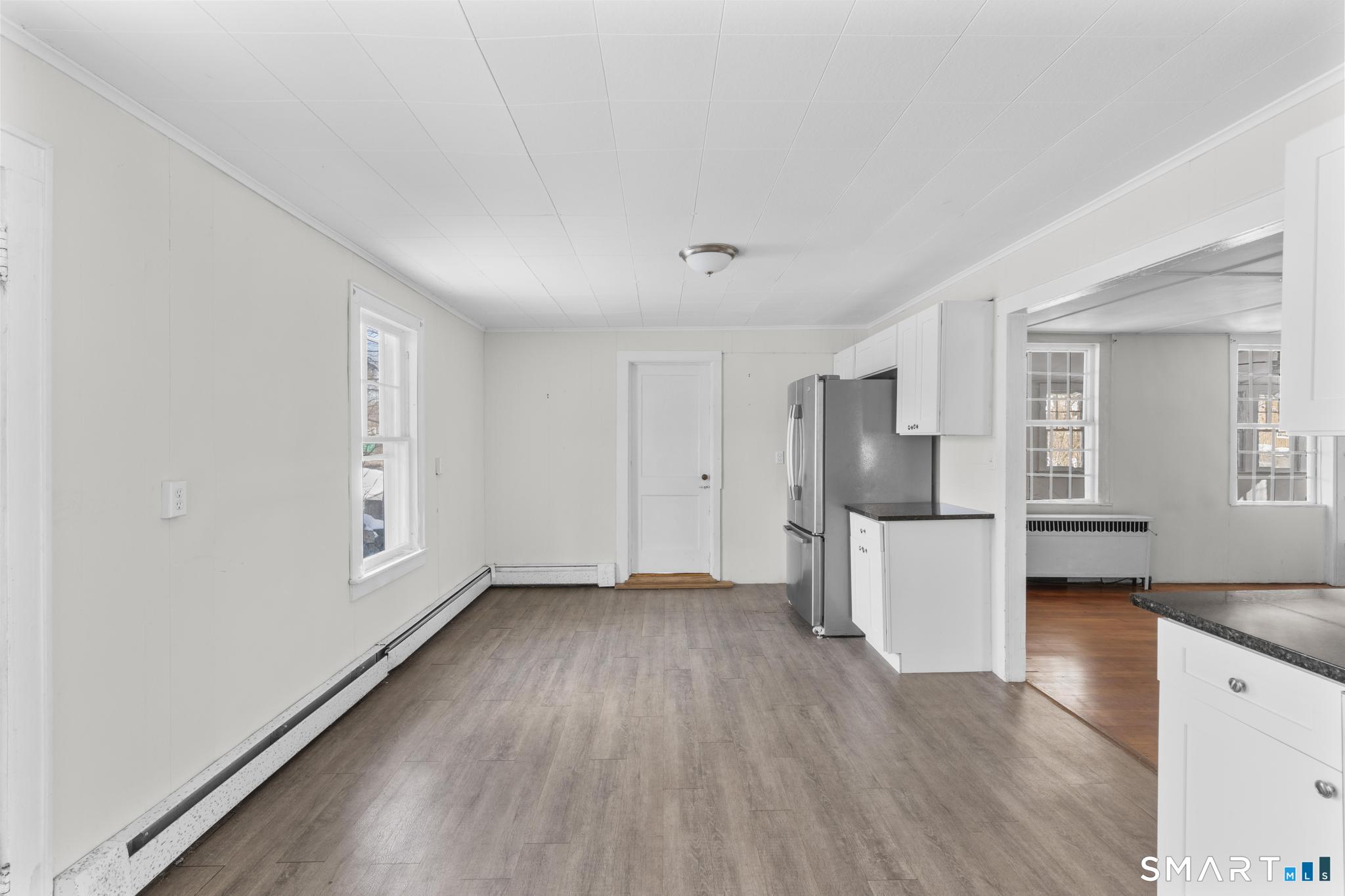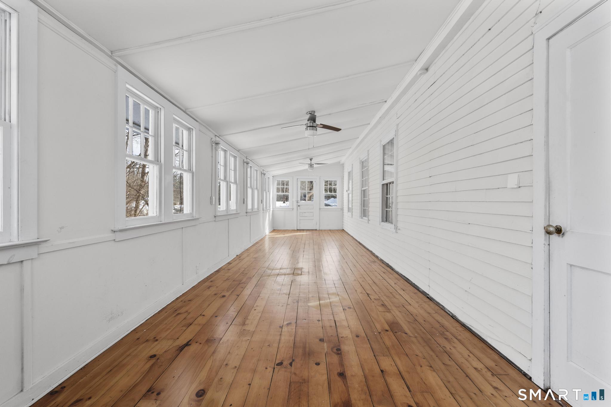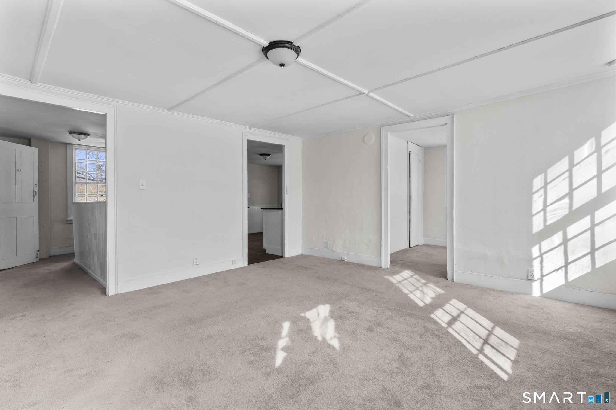 Positioned in a highly desirable Madison location just minutes from town, shoreline beaches, and local shops, 1281 Durham Road delivers space, versatility, and opportunity on approximately half an acre. This property offers a flexible layout rarely found at this value point in the shoreline market. The main level showcases a generously sized living room centered around a fireplace, creating a warm and inviting gathering space. Two bedrooms and a full bath provide convenient first-floor living, while the spacious kitchen offers excellent functionality and flow. A dedicated laundry area adds practicality, and an expansive additional room stretching the length of the home presents endless possibilities - ideal for entertaining, recreation, a home office, or extended living needs. Oversized windows throughout invite sunshine, enhancing the home's bright and open feel. The upper level expands the potential even further, featuring its own kitchen, living area, two bedrooms, and full bath. An enclosed private balcony overlooks the backyard, offering a peaceful retreat and added character. Sunlight pours into this level as well, reinforcing the home's airy, comfortable atmosphere. Outside, a detached one-car garage and a substantial yard provide space to enjoy, garden, or customize to your needs - all within an established and sought-after neighborhood setting.