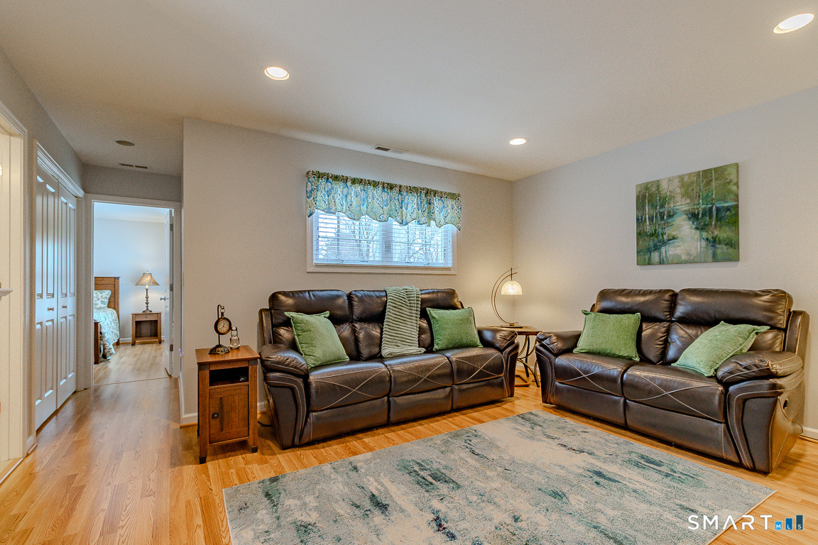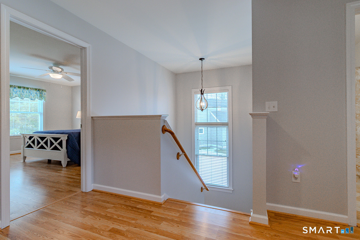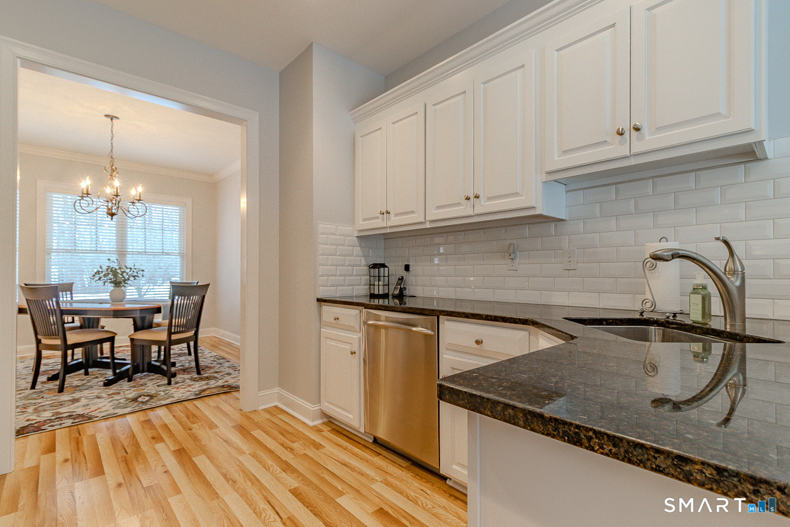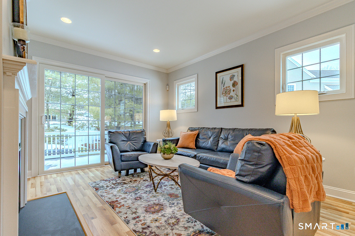 Immaculate! Luxury END-UNIT townhome with a 2-car garage in highly desirable Bradford Walk - pristinely maintained and move in ready! Step into the welcoming foyer featuring gorgeous new flooring throughout, 9-foot ceilings and crown molding. Freshly painted throughout, the inviting living room offers a cozy gas fireplace and oversized slider leading to a private back deck and wooded landscape. The beautiful white kitchen features granite countertops, new GE Profile stainless appliances, tile backsplash, breakfast bar, and a cozy kitchen nook for a table or sitting chairs. Upstairs, a versatile loft provides ideal space for a family room, office, or guest area. The spacious primary suite includes a double-sink vanity, elegant glass shower, separate Jacuzzi tub, and large walk-in closet. Down the hall is the second full bath, convenient laundry hookups in the hall closet and the second bedroom with its own walk-in closet. Residents of Bradford Walk enjoy a stunning clubhouse and park-like grounds perfect for recreation and gatherings. Ideally located near UConn Medical Center and John Dempsey Hospital, West Hartford Center, Westfarms Mall, I-84, Route 9, as well as the areas top dining and entertainment. Beautifully maintained with clear pride of ownership! All furnishings are negotiable.