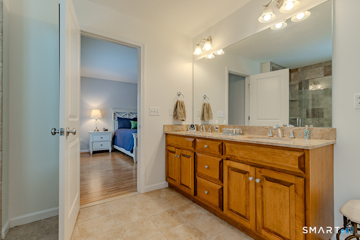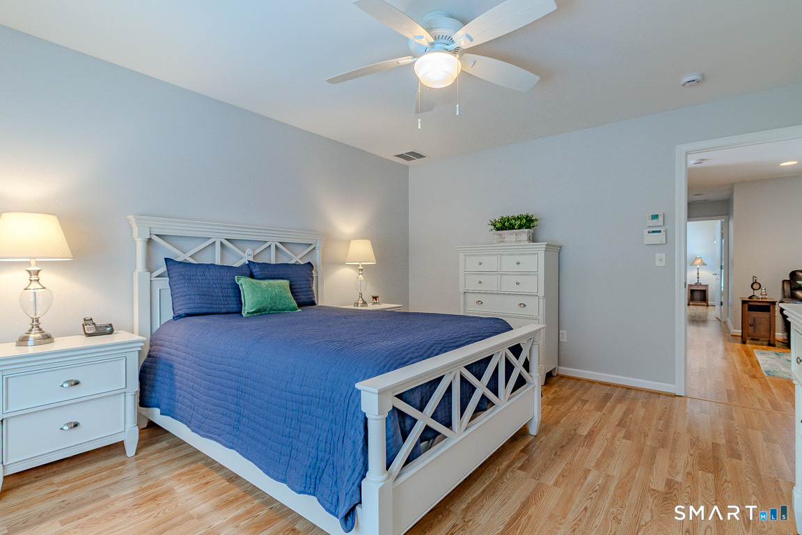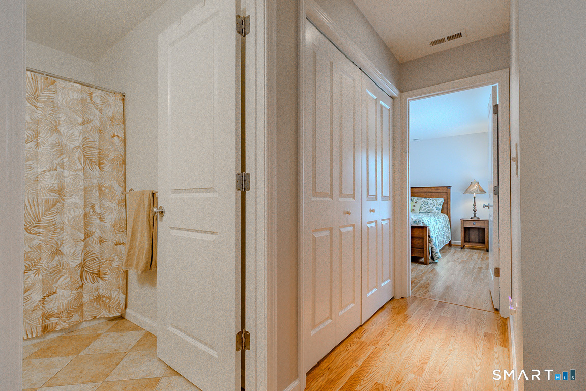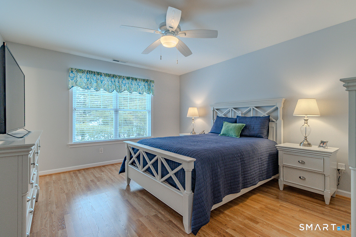 Immaculate! Luxury END-UNIT townhome with a 2-car garage in highly desirable Bradford Walk - pristinely maintained and move in ready! Step into the welcoming foyer featuring gorgeous new flooring throughout, 9-foot ceilings and crown molding. Freshly painted throughout, the inviting living room offers a cozy gas fireplace and oversized slider leading to a private back deck and wooded landscape. The beautiful white kitchen features granite countertops, new GE Profile stainless appliances, tile backsplash, breakfast bar, and a cozy kitchen nook for a table or sitting chairs. Upstairs, a versatile loft provides ideal space for a family room, office, or guest area. The spacious primary suite includes a double-sink vanity, elegant glass shower, separate Jacuzzi tub, and large walk-in closet. Down the hall is the second full bath, convenient laundry hookups in the hall closet and the second bedroom with its own walk-in closet. Residents of Bradford Walk enjoy a stunning clubhouse and park-like grounds perfect for recreation and gatherings. Ideally located near UConn Medical Center and John Dempsey Hospital, West Hartford Center, Westfarms Mall, I-84, Route 9, as well as the areas top dining and entertainment. Beautifully maintained with clear pride of ownership! All furnishings are negotiable.