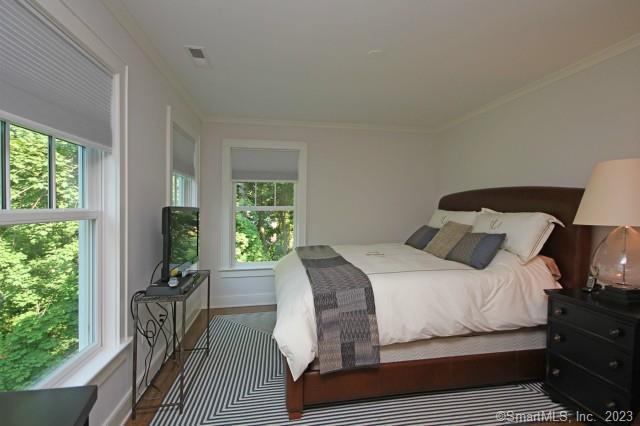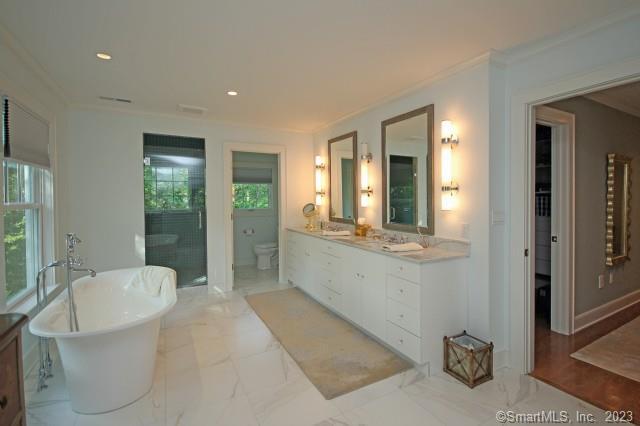 Designed by renowned architect Nancy Thiel, this pristine farm-style residence, featured in "Cottages & Gardens", sits on a prime location directly opposite of the Hunt Club. It boasts high ceilings, an open floor plan, and an abundance of natural light. The main floor encompasses a fabulous kitchen, complete with a large center island, top-of-the-line appliances, and ample storage. In addition, the main floor features a formal living room, an elegant dining room, a cheerful family room, and a private office. All of these rooms feature 9' ceilings and beautiful hardwood floors. The second floor has four generously sized bedrooms, each with its own en-suite bathroom and walk-in closet. The luxurious primary suite stands out with its two massive walk-in closets, custom built-in drawers, a dressing area, and a spa-like bathroom that offers a serene retreat. Ascending to the third floor, you'll discover a versatile space that can serve as a second office, or a private getaway. The lower level presents a fifth bedroom with a full bathroom, ideal for accommodating guests or creating a private space for an au-pair or in-law. Additionally, the lower level features a spacious playroom with a fireplace. The finished walk-out lower level provides seamless access to the outdoors and adds to the home's overall living space. The architect's past-meets-present approach when designing this house is topped off by the state of the art geothermal heating and cooling system.
