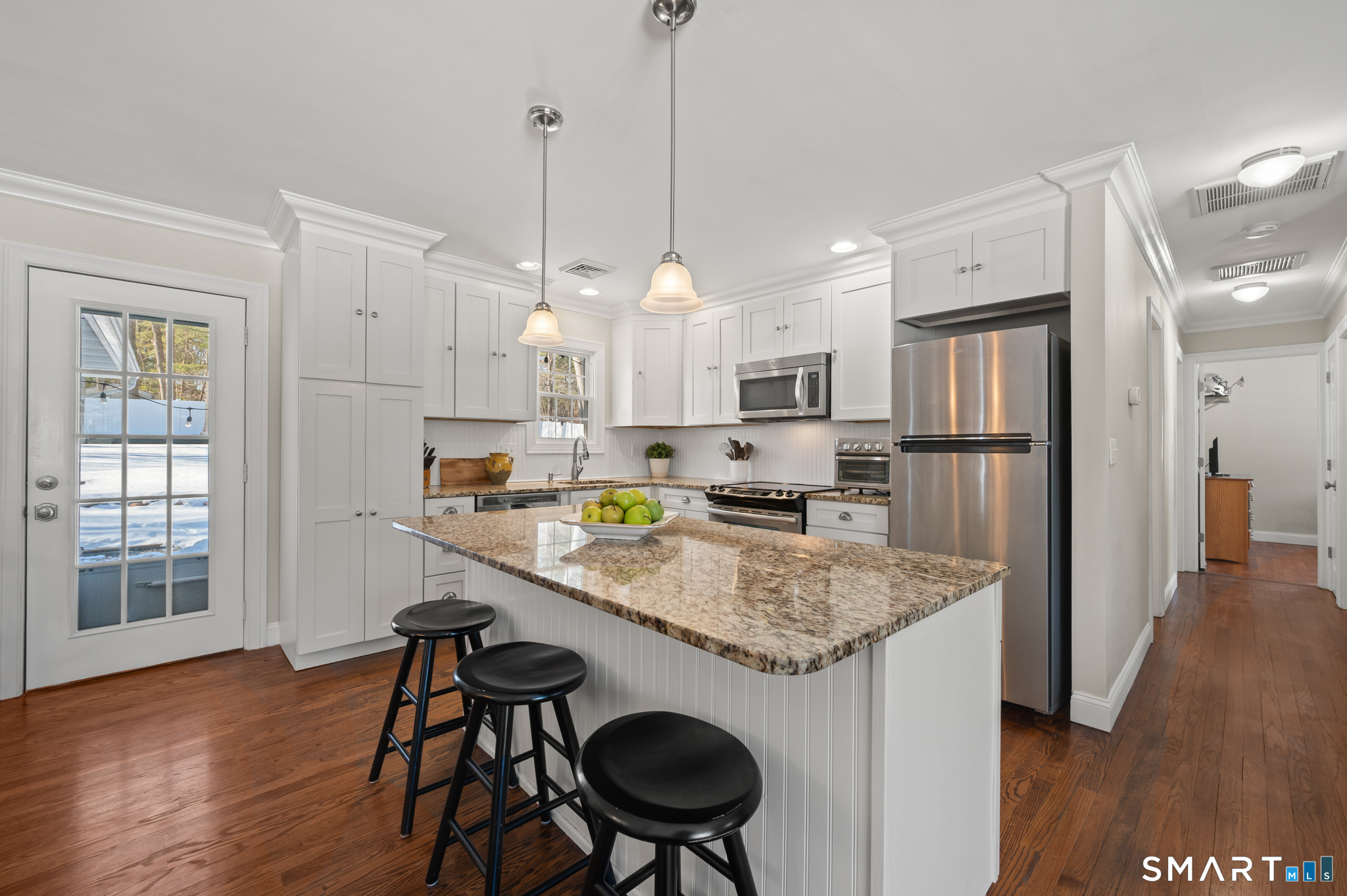 BEST AND FINAL OFFERS DUE MONDAY, MARCH 9, AT 5:00 PM. STUNNING Ranch style home, every inch of which was COMPLETELY redone/ remodeled/ renovated in 2013. Not only is there a NEW kitchen, bathrooms, flooring, lighting, and open floor plan but the ADDITION of a magnificent primary bedroom, bathroom, walk-in closet, AND a 2-car garage! The home sparkles inside and out, from top to bottom, with an open design impressive to even the most discerning buyer. The kitchen boasts crisp, white cabinetry, stainless appliances and center island with seating for 4. Living room and dining area are loaded with natural light, and the fireplace looks like it was lifted straight out of a magazine. Flanking this living space, on one side, is a luxurious primary bedroom suite with dramatic cathedral ceiling - a retreat with relaxation written all over it. In the "east" wing are the 2nd and 3d bedrooms, one with an ensuite remodeled bath that could serve as a second primary bedroom. An OFFICE with closet for laundry, and 3d fully remodeled bath complete this versatile space! In the lower level is an additional 500 sq ft of living space, ideal for media, recreation, exercise, and/or office. The home is nestled on a .5 acre, park-like, fenced yard in a sought-after neighborhood, close to town and schools. Stroll down newly- installed sidewalks to hiking trails leading through a woodland preserve to Smith School! Additional amenities include vinyl siding, new driveway 2023,