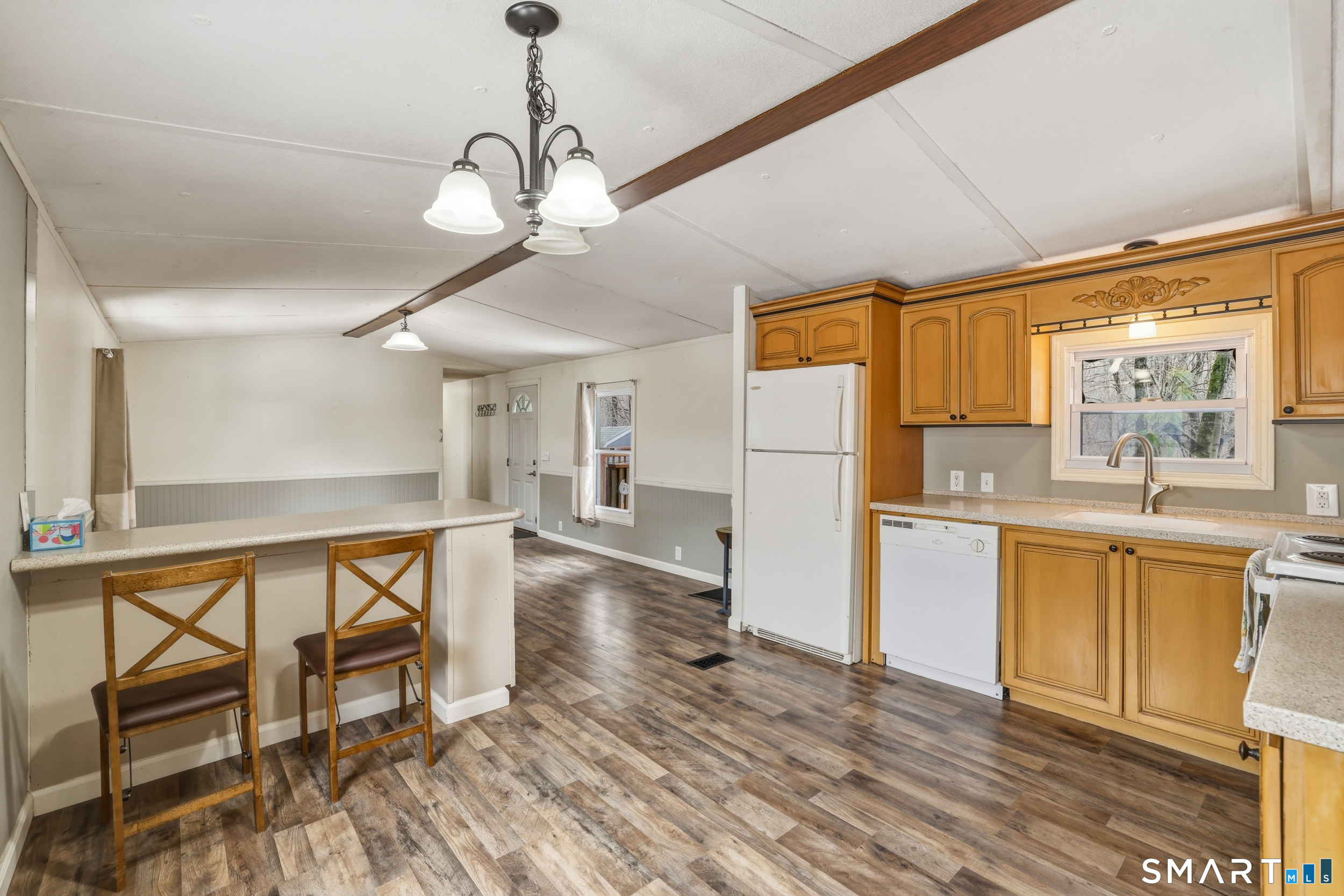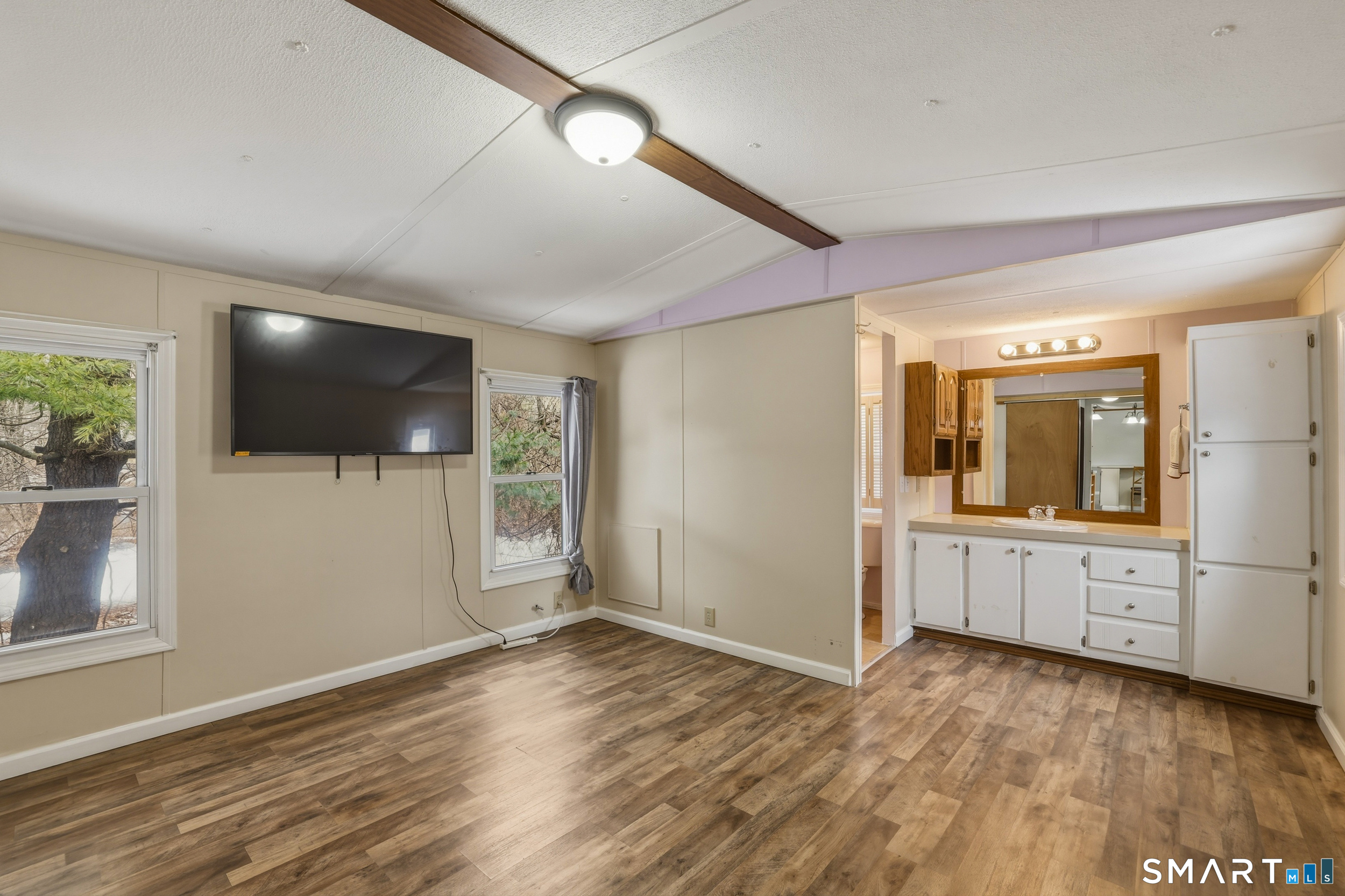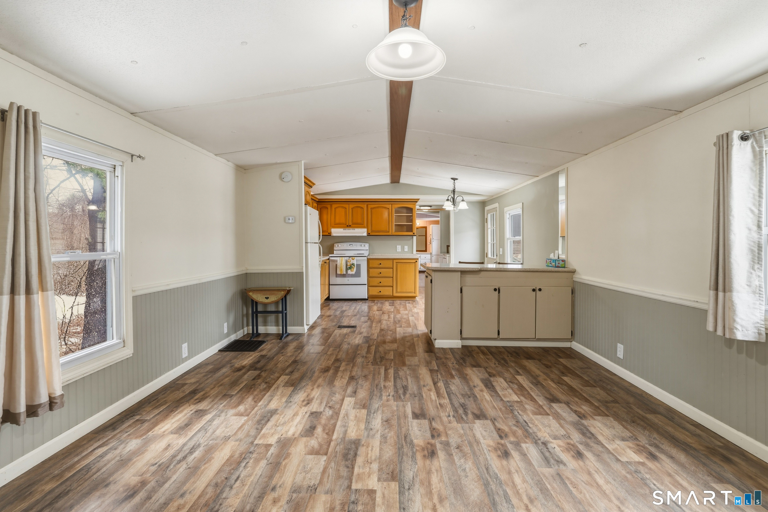 Tucked away at the end of a quiet cul de sac in a 55 and older community, this inviting 3 bedroom, 2 bathroom home offers comfort, privacy, and thoughtful updates throughout. Step inside to a bright, open living space with cathedral ceilings that create an airy feel and flow easily into the spacious eat in kitchen, complete with abundant cabinetry and a large pantry for everyday convenience. The primary bedroom features its own full bath and walk in closet, providing a comfortable retreat, while two additional bedrooms offer flexibility for guests, work from home needs, or hobbies. Recent improvements including a new roof, new furnace, and new hot water heater provide peace of mind, while central air that is just four years old helps keep the home comfortable year round. A full size washer and dryer are conveniently located inside the home, making daily routines easy. Outside, enjoy a private deck that offers a great space for relaxing or outdoor dining, along with a storage shed for tools, seasonal items, or extra belongings. The end of the cul de sac location also provides additional room for parking and a more private setting within the community. With public water and sewer, central air, and a comfortable single level layout, this home offers an easy lifestyle with nearby access to shopping, recreation, medical facilities, and commuter routes.
