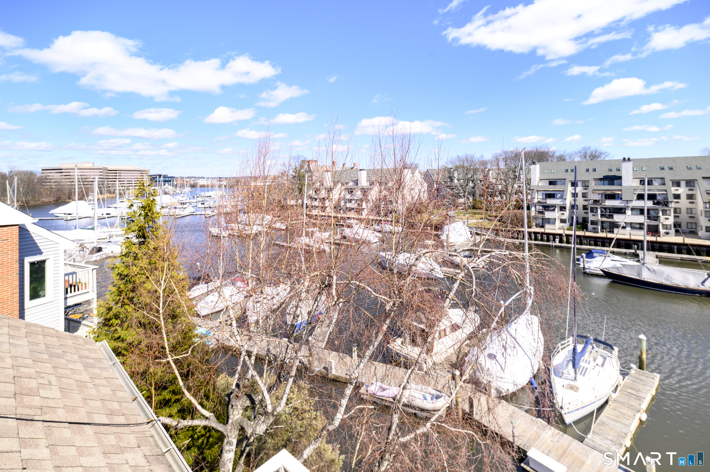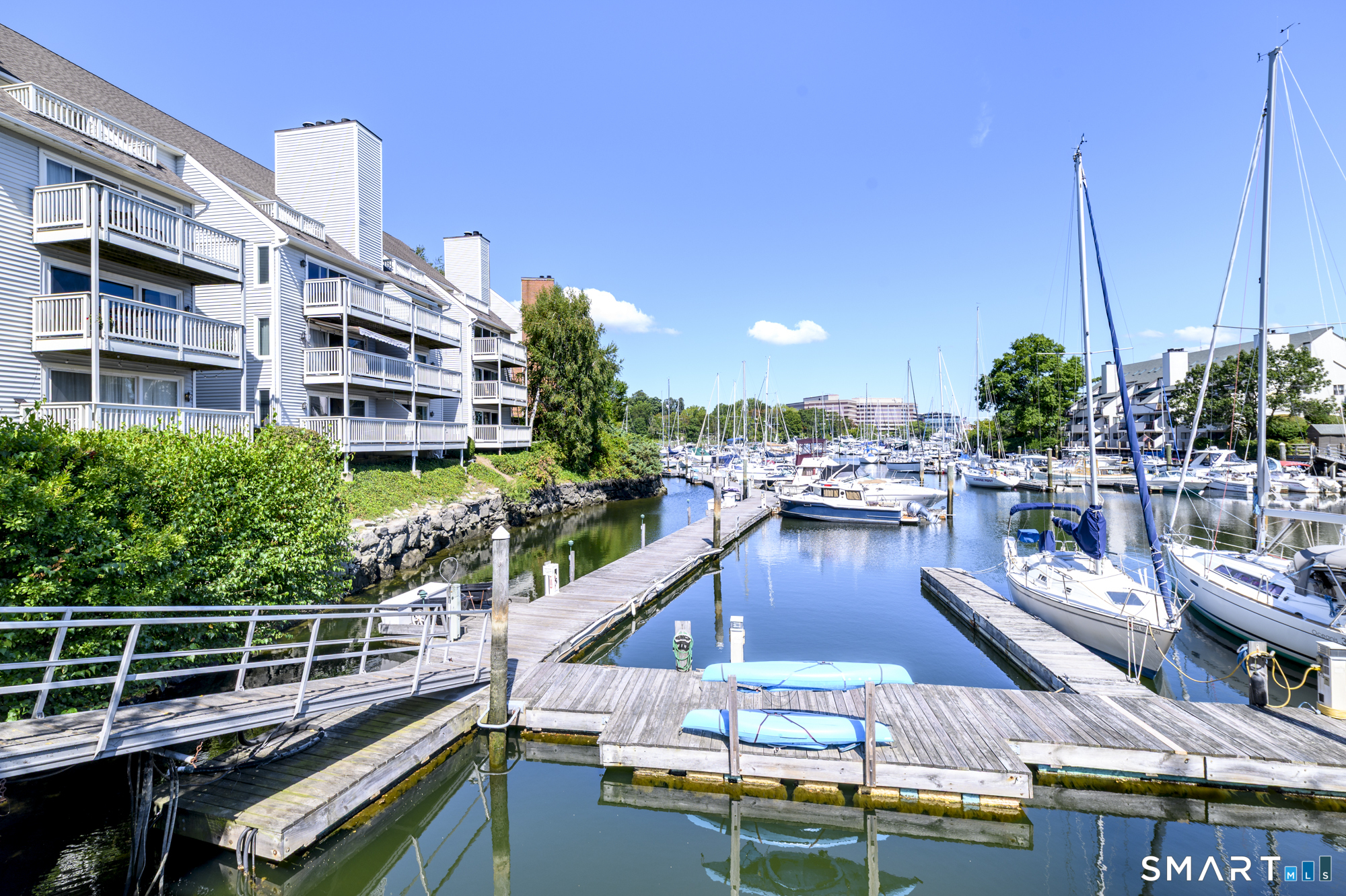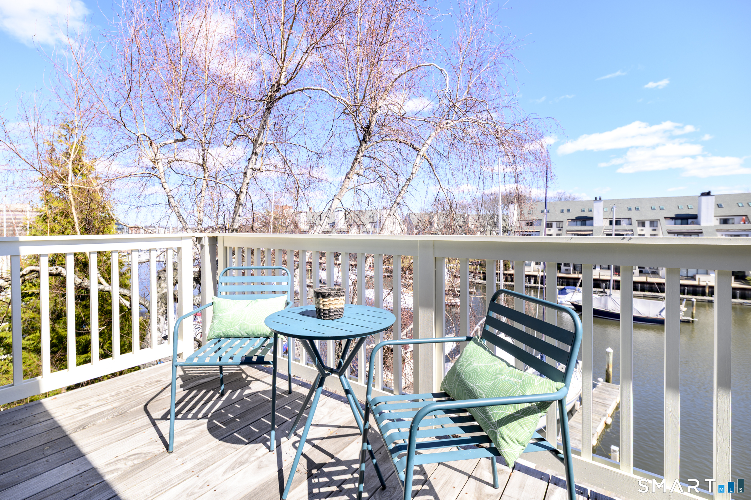 Wake up to sparkling marina views and coastal breezes at Palmer Landing, a waterfront enclave on the coveted shoreline of Shippan Point and one of Stamford's most sought-after communities. This beautifully updated 3-bedroom, 3-bath end-unit townhouse has been newly renovated and completely repainted, featuring custom built-in closets on the main level and a remodeled main floor bathroom. Heat and hot water are included in the common charges, adding everyday comfort and convenience. The sun-filled main level offers an open, airy layout perfect for both relaxed living and entertaining, opening to one of two private waterfront decks overlooking the marina - a tranquil, vacation-like retreat where every morning coffee and evening cocktail feels like you're on the coast at a private resort. A wood-burning fireplace, rich hardwood floors, and a sleek kitchen with stainless steel appliances create a warm yet sophisticated atmosphere. Upstairs, the primary suite features a walk-in closet, spa-inspired bath with an oversized walk-in shower, and its own private 2nd waterfront deck-an ideal place to unwind and enjoy the tranquil water views. Located just moments from sandy beaches, dining, shopping, and downtown Stamford, this exceptional residence offers a rare opportunity to enjoy luxury waterfront living in one of Stamford's most desirable coastal communities.