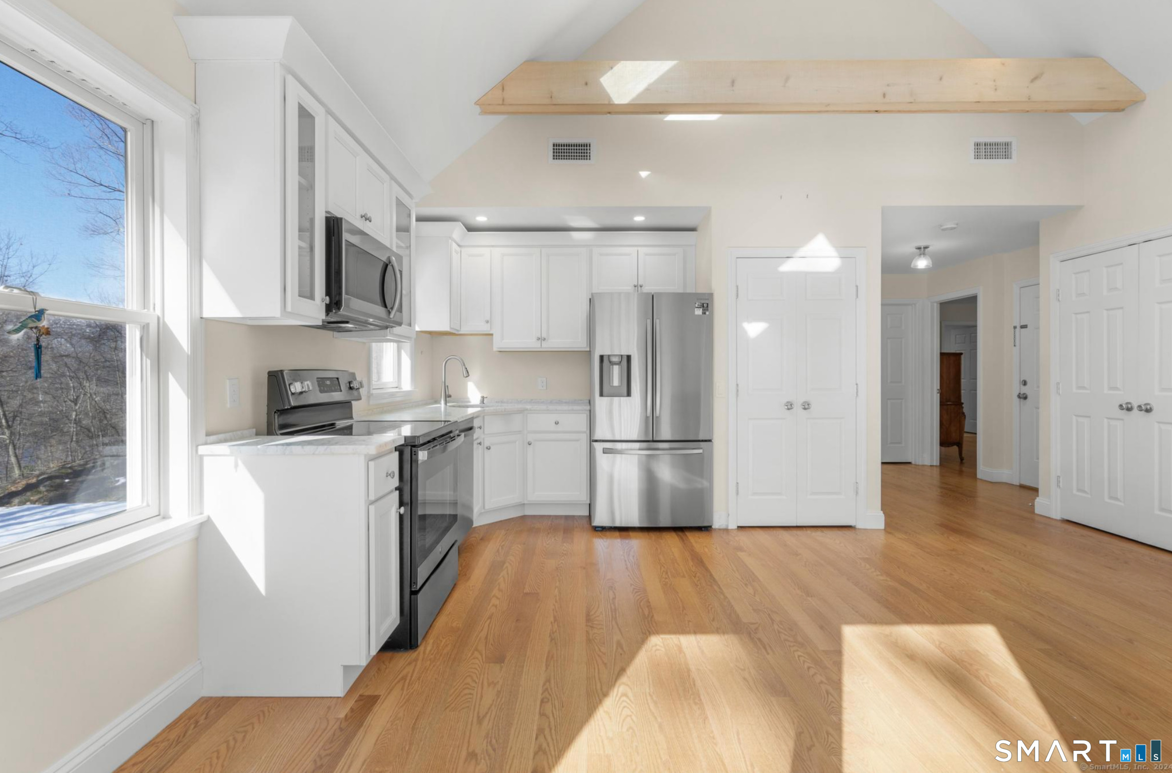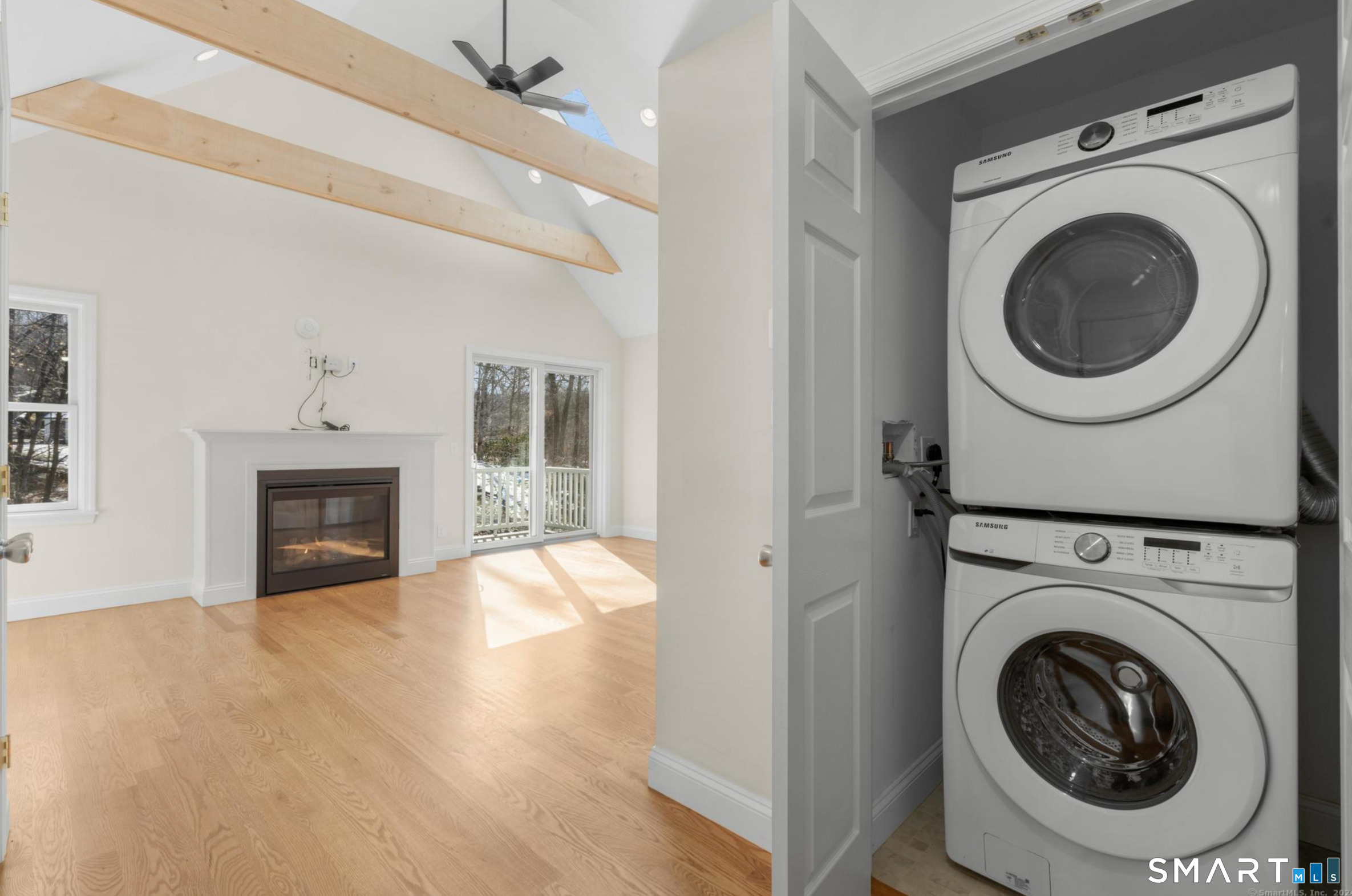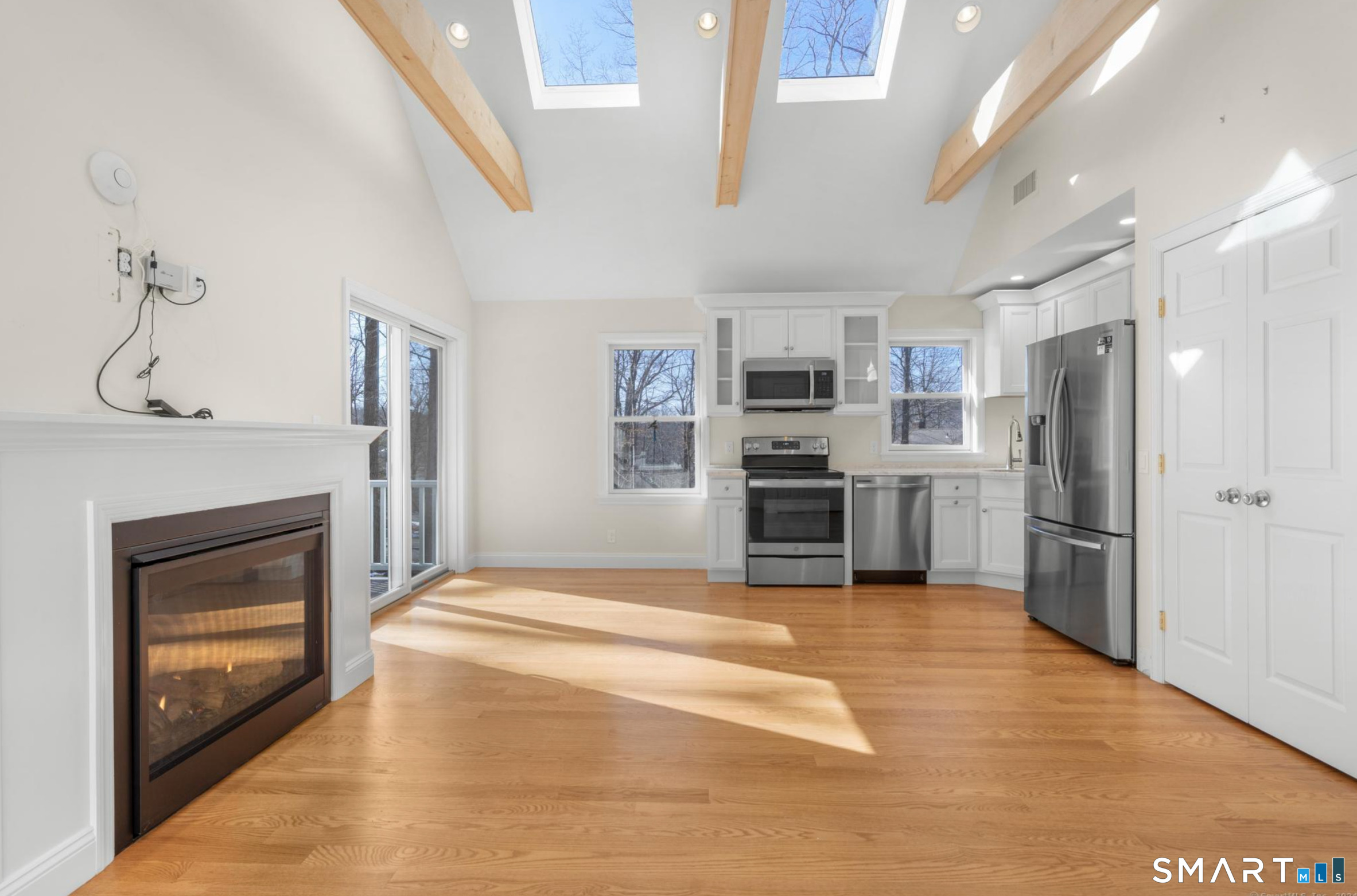 Forget about utility bills weighing you down. This beautifully built suite includes all utilities: electricity, water, heat, cable, snow removal, and garbage pickup. Enjoy the simplicity of one monthly bill and truly worry-free living. Step inside to a spacious living area featuring stunning wooden beams, vaulted ceilings, and a cozy gas fireplace. Skylights in the kitchen flood the space with natural light, creating a bright and inviting atmosphere perfect for both relaxing and entertaining. This thoughtfully designed home offers two generously sized bedrooms, each with its own attached full bathroom and large closet space-ideal for privacy and comfort. Step out onto your private balcony and take in the peaceful surroundings while enjoying your morning coffee or unwinding in the evening. The apartment is wheelchair accessible, making it both comfortable and accommodating. Located in a quiet neighborhood just minutes from downtown Ridgefield, you'll enjoy easy access to local shops, restaurants, parks, and scenic outdoor spaces-all while coming home to tranquility. Pictures taken in 2024 before the current tenant moved in.