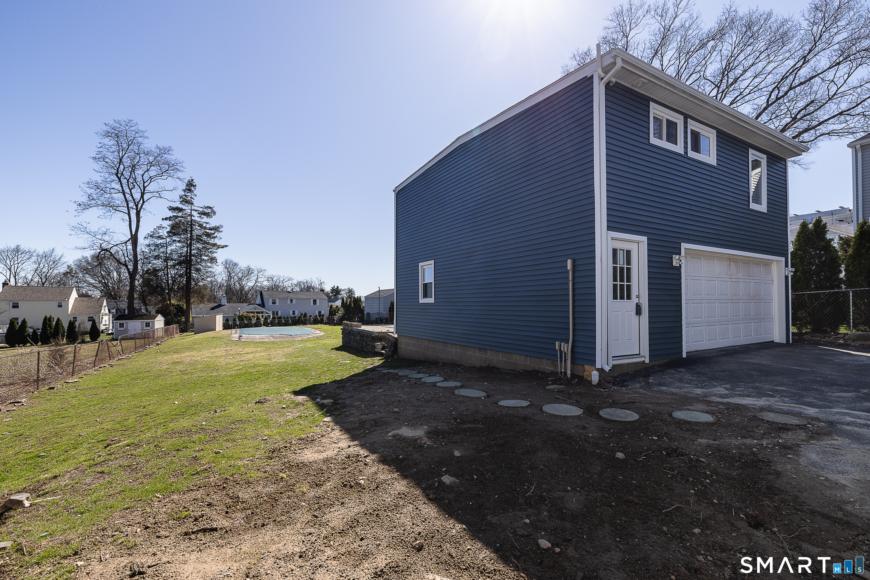 Rare Find in North Stratford! This fully renovated 3-bedroom Colonial offers exceptional versatility with a separate 1-bedroom ADU apartment above the garage-perfect for extended family or guests. Situated on 1/3 of a flat, deep acre, the property features a private backyard retreat with an in-ground pool, ideal for relaxing or entertaining. The main home offers an open-concept layout seamlessly connecting the living room, dining area, & kitchen. The brand-new kitchen features wall-to-wall white cabinetry, quartz countertops, and stainless-steel appliances. The main level also includes a spacious bedroom and a beautifully updated half bathroom with stylish tile. Upstairs, you'll find two generously sized bedrooms and a fully renovated bathroom with modern tile and a contemporary vanity. Gleaming hardwood floors run throughout the main living areas. The partially finished basement adds additional flexibility, offering laundry space & an entertainment area. The ADU apartment features its own modern kitchen, large bedroom, and brand-new designer bathroom, along with two new split systems and beautifully refinished plank hardwood floors. Additional highlights include a heated 2-car garage w/new split system, and a brand-new bathroom. The oversized garage designed w/flexible use potential-ideal as a man cave, bar/entertainment space, or poolside changing area. House/Garage have new siding and new gutters. Pool was serviced 2025 and has all new underground pipes & updated pump.