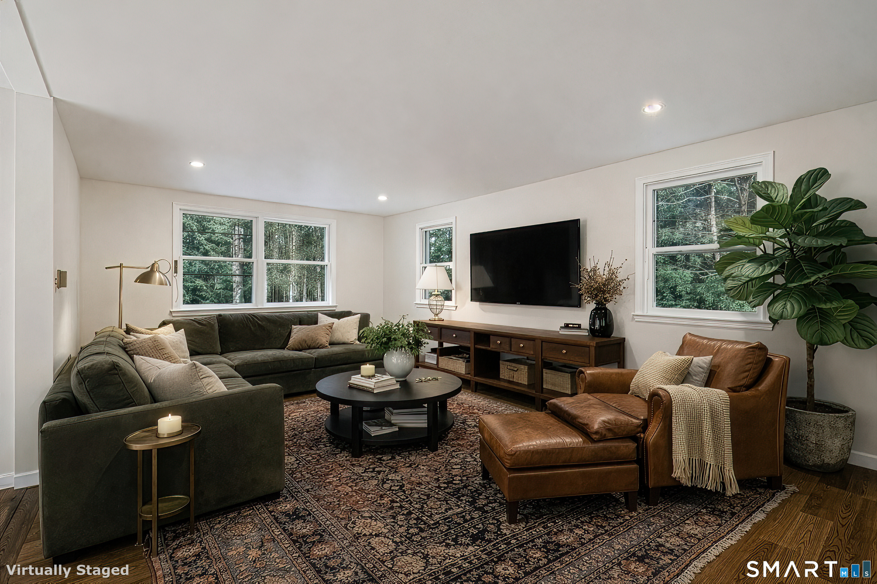 BRAND NEW HIGH-EFFICIENCY HVAC SYSTEM JUST INSTALLED! This inviting 4-bedroom, 3.5-bath Colonial located at the end of a quiet cul-de-sac and bordered by scenic forested open space, offers privacy, versatility, and a location that's accessible to both the beautiful trails of Belden Forest and everything downtown Simsbury has to offer. The interior features hardwood floors throughout, creating warmth and continuity across a thoughtfully designed layout. At the center of the home, the kitchen blends style and function with refinished cabinetry, Corian countertops, tile flooring, a tiled backsplash, and new appliances. It flows effortlessly into the open family room, making it an ideal space for daily living, casual gatherings, and relaxed evenings at home. Formal living and dining rooms provide additional spaces perfect for entertaining and special occasions. The floor plan offers excellent flexibility, including a main-level bedroom with an attached full bath, ideal for guests or extended family. Upstairs, the primary ensuite is generously proportioned and offers space for a reading nook, sitting area, or work-from-home setup, creating a comfortable, versatile retreat. The three additional bedrooms on the upper level share a well-appointed full bath, providing ample space for everyday living. Throughout the home, bathrooms feature beautiful tile showers and flooring for a clean, modern look.