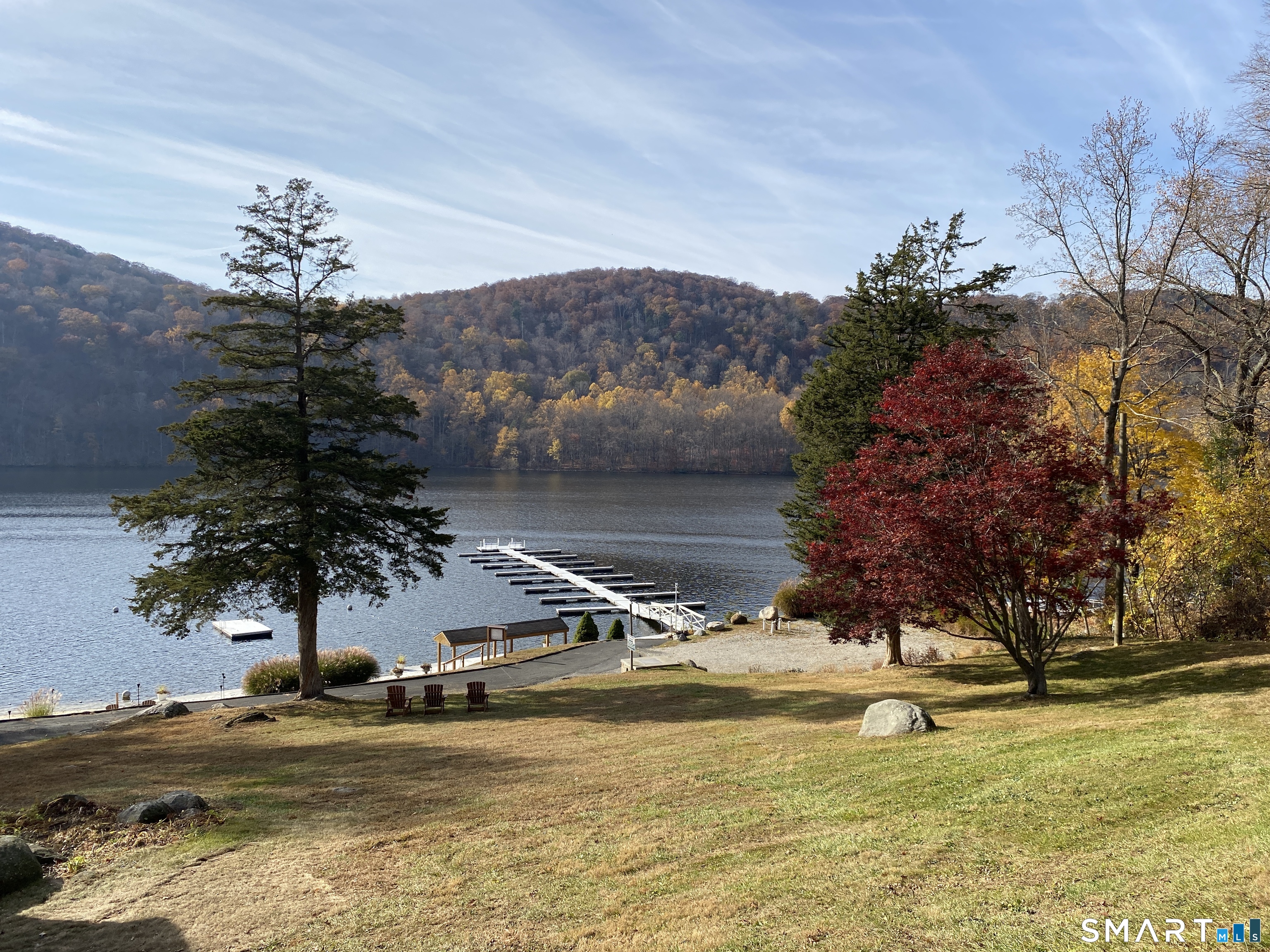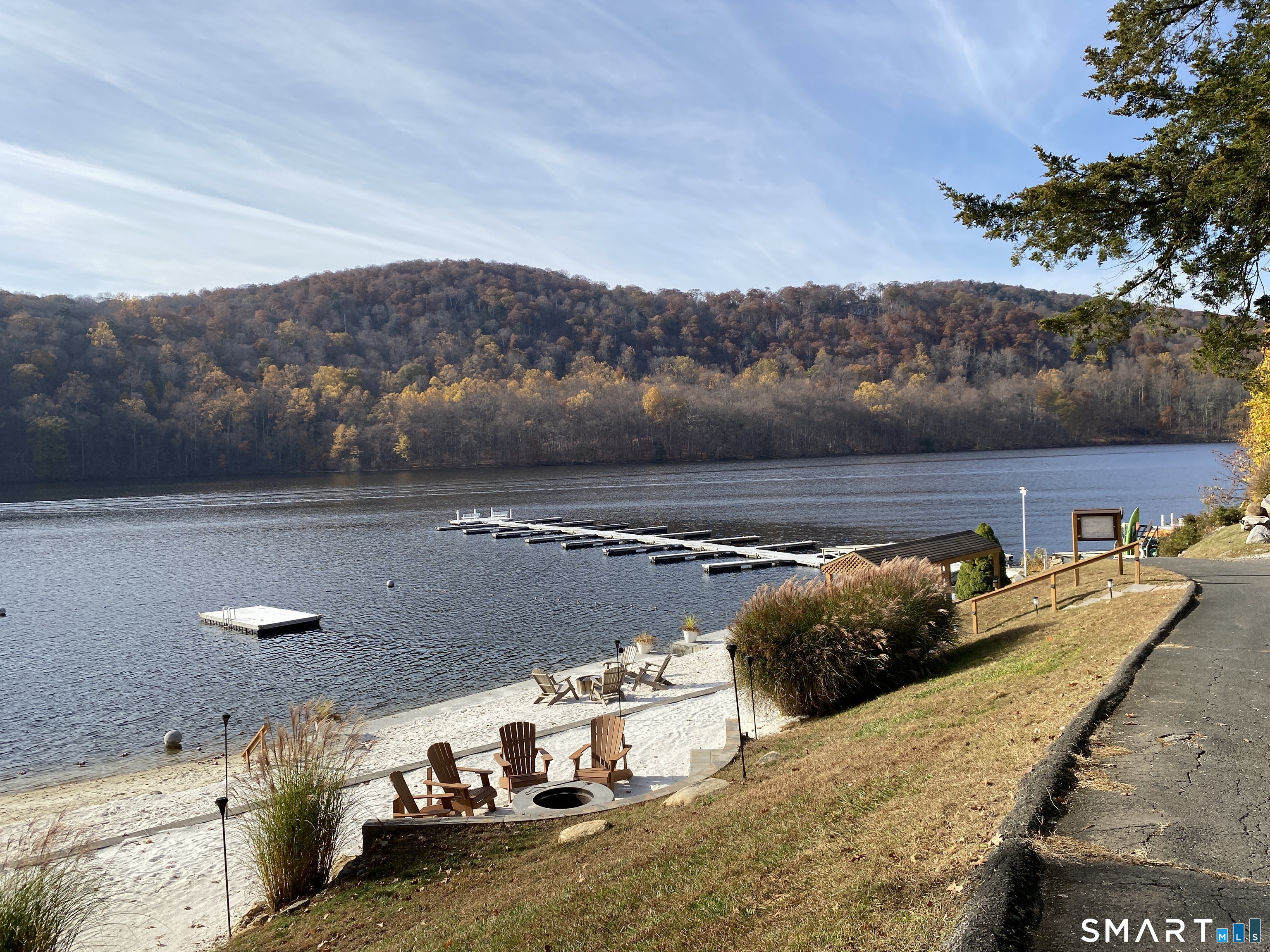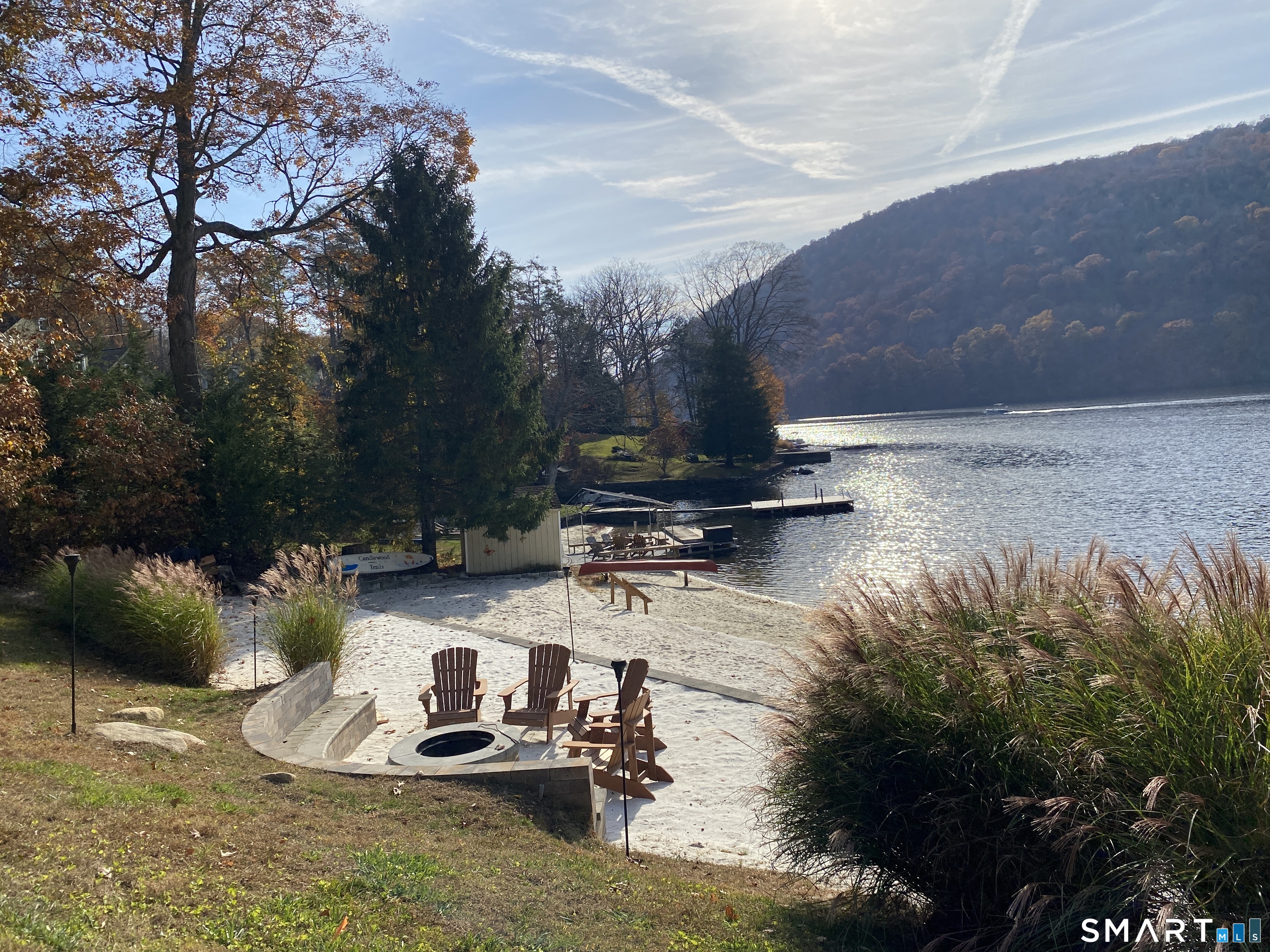 CLASSIC 1934 LAKE HOUSE. Fully renovated, 3 Bedroom, 2 Bath on private .46-acre lot. Just a short walk to the beautiful Candlewood Trails Beach with expansive, sandy beach on Candlewood Lake and boat marina. TENANT IS ELIGIBLE FOR BOAT SLIP THROUGH CTA HOMEOWNER"S ASSOCOCIATION (Subject to availability). The club house overlooks picnic areas, with tables, chairs and a firepit. A variety of other activities such as corn hole tournament and clam bake are planned regularly by the CTA social committee. At the house, a covered porch, with new furniture, overlooks gardens, a brook and a patio with sitting area and fire pit to enjoy sunsets and seasonal lake views. The updated kitchen has a center island, new cabinets, stainless appliances, quartz counter tops and blends into an open floor plan family room ideal for gatherings. Living room is light and bright with stone fireplace, beams and hardwood floors. House is heated by oil but each living space has its own air conditioning and heat-pump. Bedrooms also have individual A/C and heat pumps; all bedroom closets have built-ins. The 2-car, detached garage is configured as his and her offices but could also be used for secure storage.