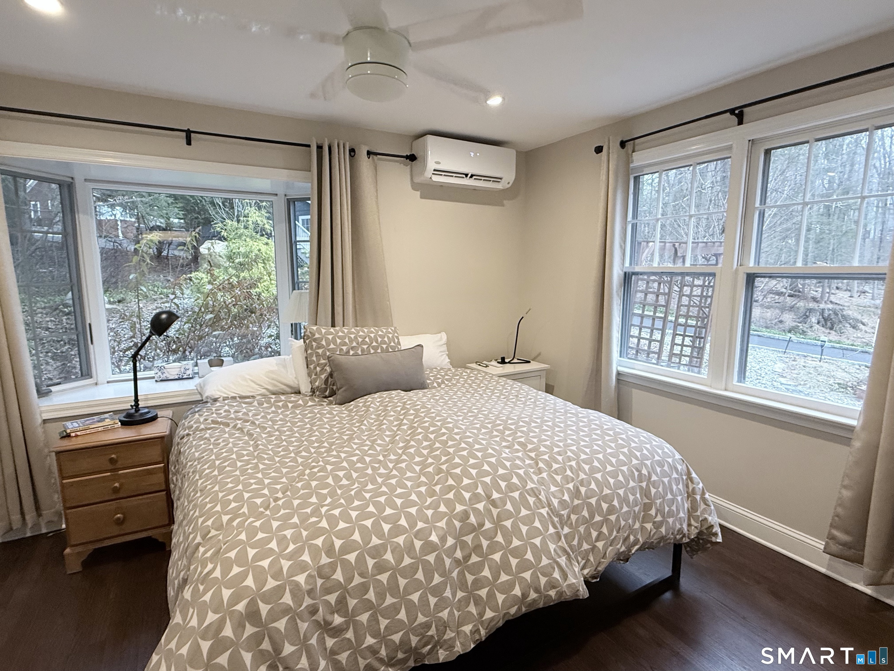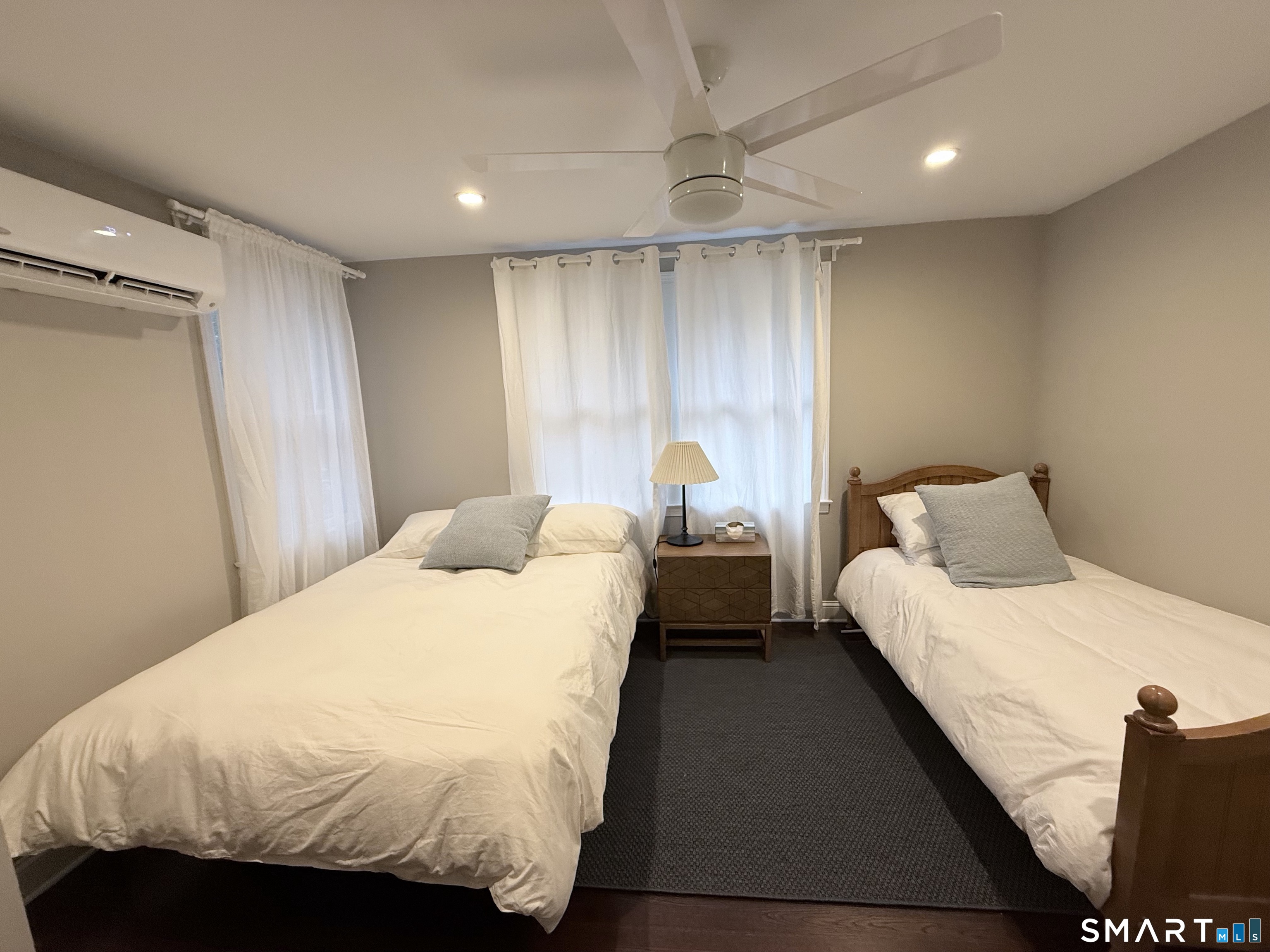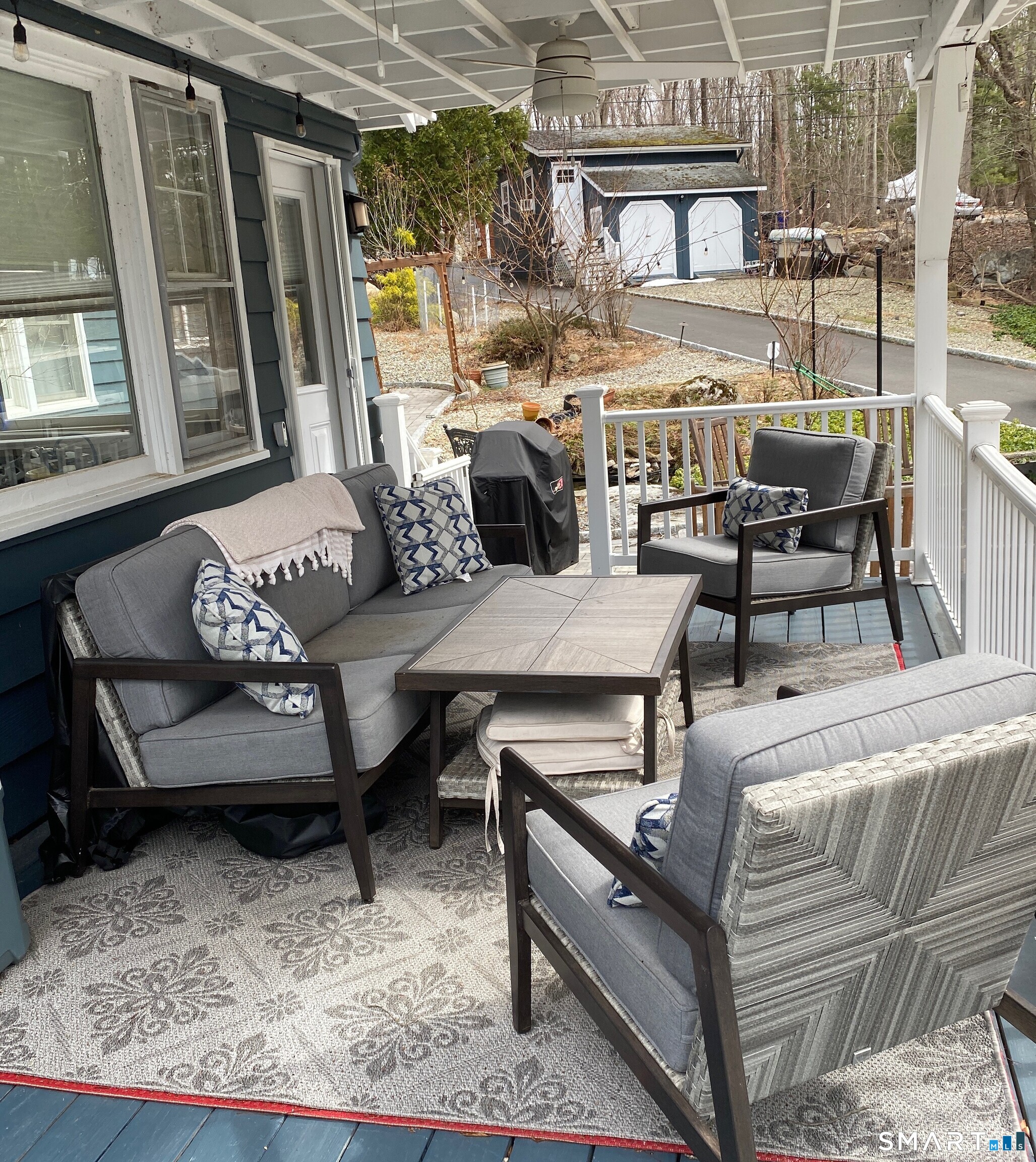 CLASSIC 1934 LAKE HOUSE. Fully renovated, 3 Bedroom, 2 Bath on private .46-acre lot. Just a short walk to the beautiful Candlewood Trails Beach with expansive, sandy beach on Candlewood Lake and boat marina. TENANT IS ELIGIBLE FOR BOAT SLIP THROUGH CTA HOMEOWNER"S ASSOCOCIATION (Subject to availability). The club house overlooks picnic areas, with tables, chairs and a firepit. A variety of other activities such as corn hole tournament and clam bake are planned regularly by the CTA social committee. At the house, a covered porch, with new furniture, overlooks gardens, a brook and a patio with sitting area and fire pit to enjoy sunsets and seasonal lake views. The updated kitchen has a center island, new cabinets, stainless appliances, quartz counter tops and blends into an open floor plan family room ideal for gatherings. Living room is light and bright with stone fireplace, beams and hardwood floors. House is heated by oil but each living space has its own air conditioning and heat-pump. Bedrooms also have individual A/C and heat pumps; all bedroom closets have built-ins. The 2-car, detached garage is configured as his and her offices but could also be used for secure storage.