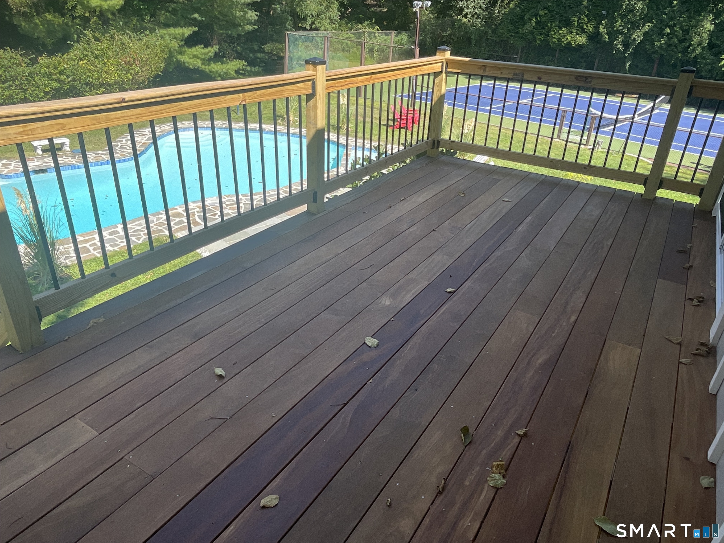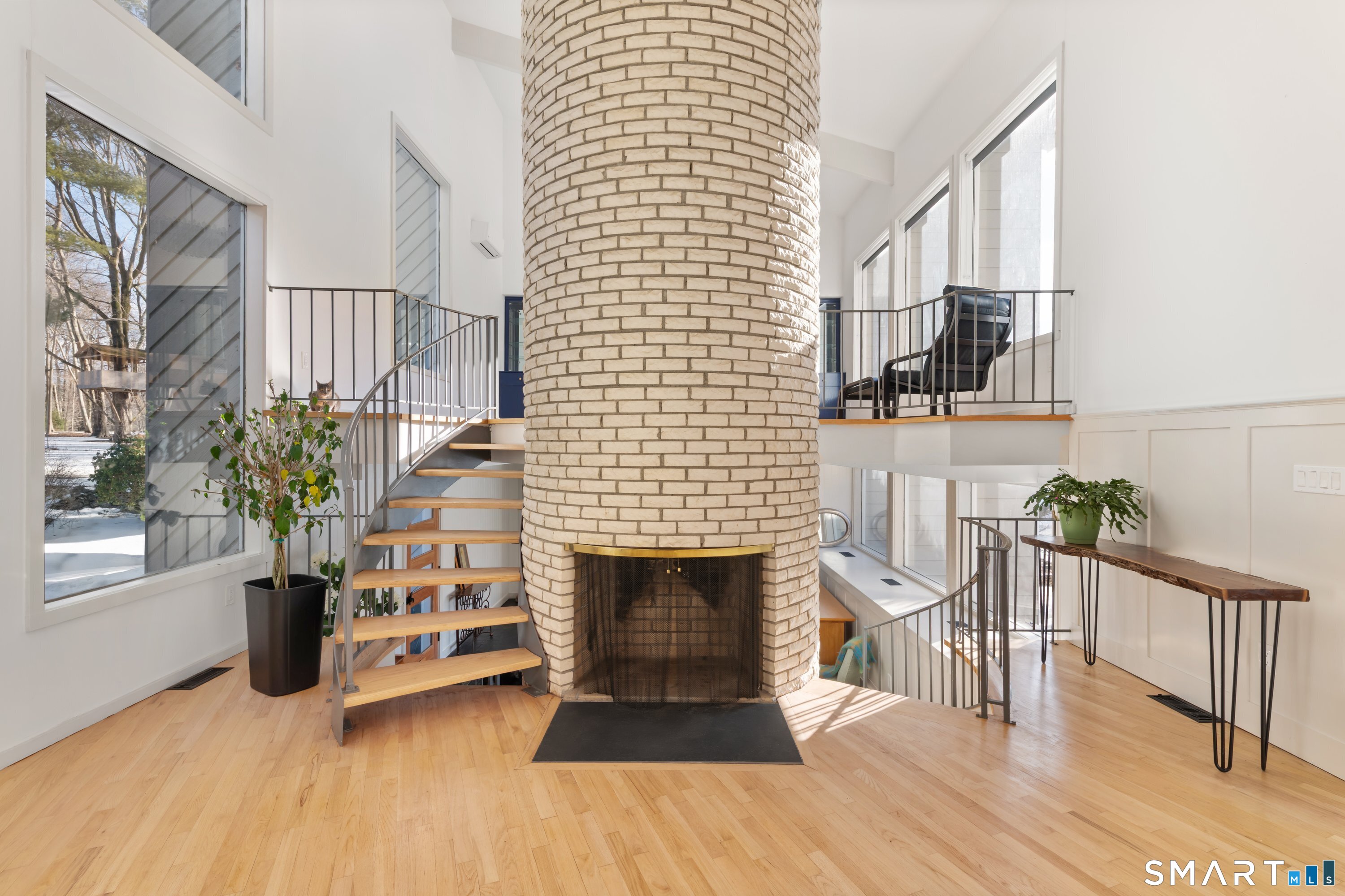 A special contemporary with a pool, on the Westport border, minutes to shops, restaurants and train. Experience refined luxury in this picturesque setting, situated back from the road down a long, lighted driveway, winding past a serene pond. Nearly 4000 sq ft with 4 bedrooms & 4.5 baths, this open floor plan home features city water, sewer, natural gas, oil heat and central A/C for comfortable living. The WOW factor is the soaring 22' ceilings which define the main living space, anchored by a striking 3-story chimney w/3 wood-burning fireplaces. Additionally, 2 VT Casting gas fireplaces add warmth on chilly nights. Oversized windows flood the interiors with natural light & frame sweeping park-like views. Exterior improvements include a stately new entrance w/custom metal roof, new Hardie board siding w/new trim and a brand-new roof. The gourmet kitchen is a dream offering a professional Viking gas range with second oven, dual sinks, 2 dishwashers & quartz island, opening to a deck with awning. The 1st floor luxury primary suite includes a walk-in closet, spa bath, gas fireplace and direct access to the pool & bluestone patio. Amenities include a free-form Gunite pool with new mechanicals & lighting plus a resurfaced & freshly painted tennis court. Inside, hardwood floors were refinished and new ones installed, new Jack & Jill bath plus 2nd new bath, new sliders & windows, custom mahogany doors and upgraded mechanical systems including new condensers, heat pump & a mini split