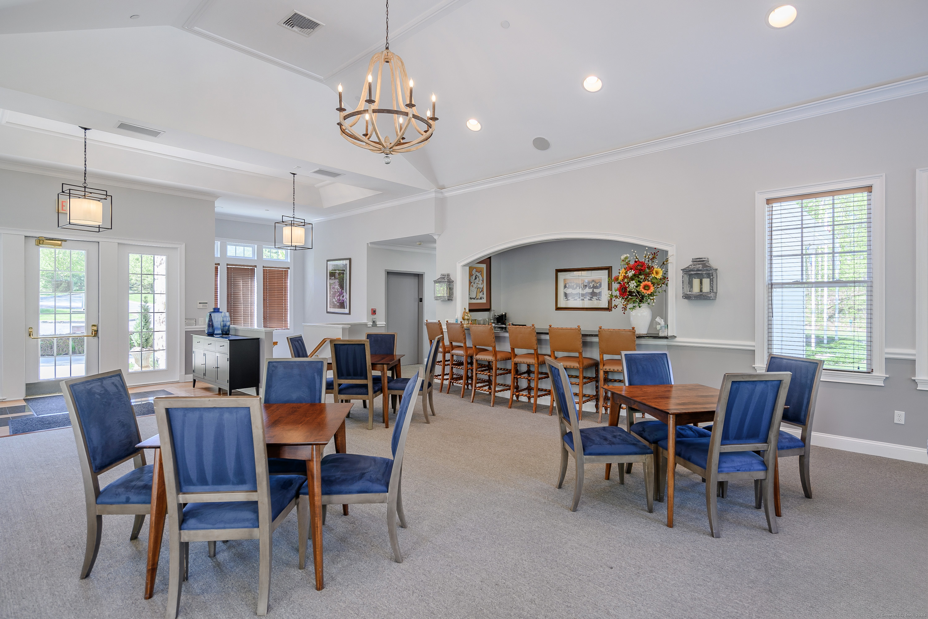 Delight in the sophistication and comfort of this exquisite 2 bedroom, 2.5 bathroom condo, nestled in the heart of Liberty at Newtown, a community designed for those aged 55+. Step into a thoughtfully laid-out floor plan featuring a spacious living room with a fireplace and built-ins, a well-equipped kitchen and dining area, and two en-suite bedrooms with plush wall-to-wall carpeting. Sliders to the deck and ample large windows frame the serene surroundings. The open-concept living space flows seamlessly into a gourmet kitchen featuring granite countertops, high-end stainless steel appliances, and a charming dining area with a bow window. Relax in the spacious primary suite complete with a generous walk-in closet and an ensuite bathroom offering dual vanities along with a tub and a shower. The guest bedroom with an en-suite bath of it's own is located on the opposite side of the living space, ensuring privacy and comfort for visitors and residents alike. Experience the ease of maintenance-free living with a cozy deck where you can sip your morning coffee or unwind after a day's activities. Life at Liberty at Newtown offers many amenities including a clubhouse, fitness center, pool, and beautifully landscaped grounds. Discover the epitome of active, adult living in a community that values your comfort and leisure. Welcome home! Bonus - this garage is attached to the unit, you can access the unit right from the garage!!