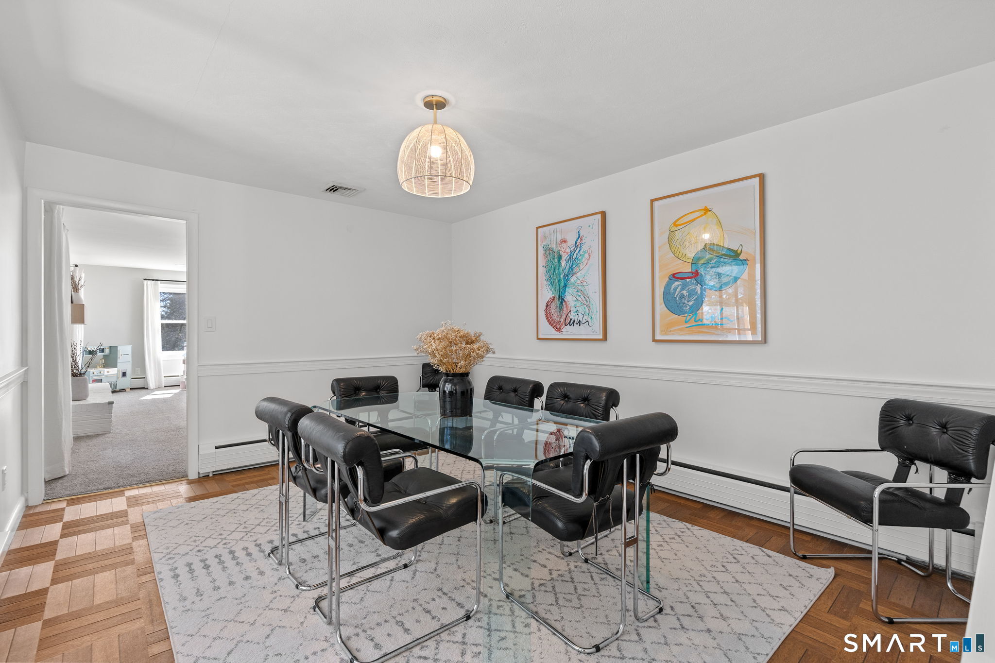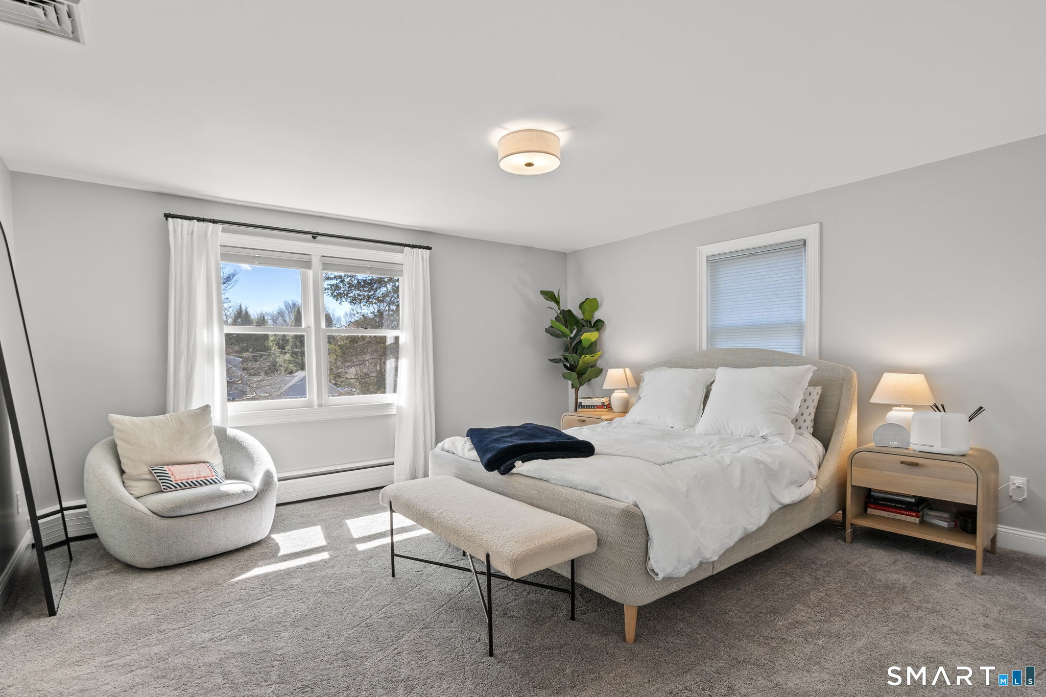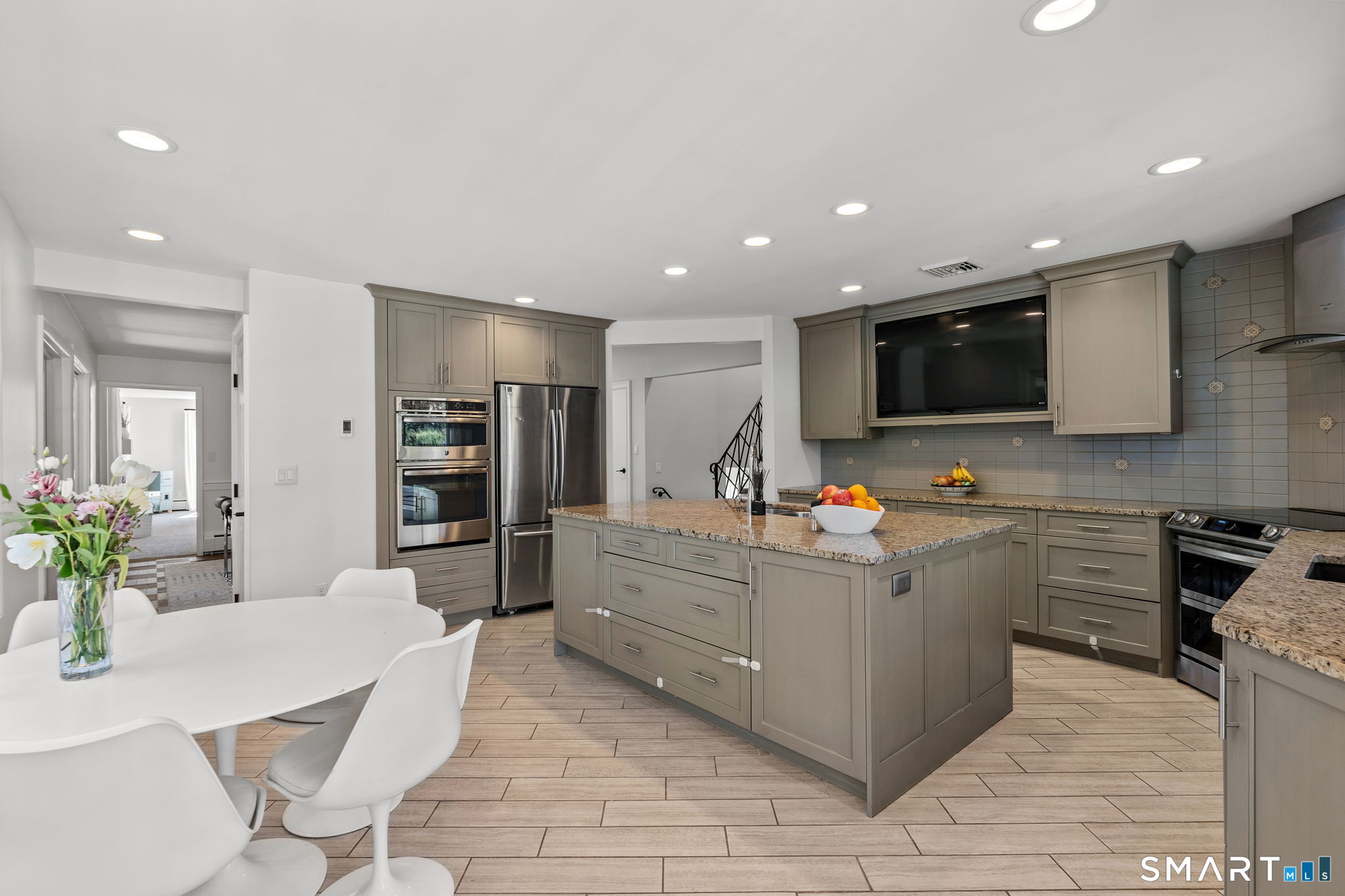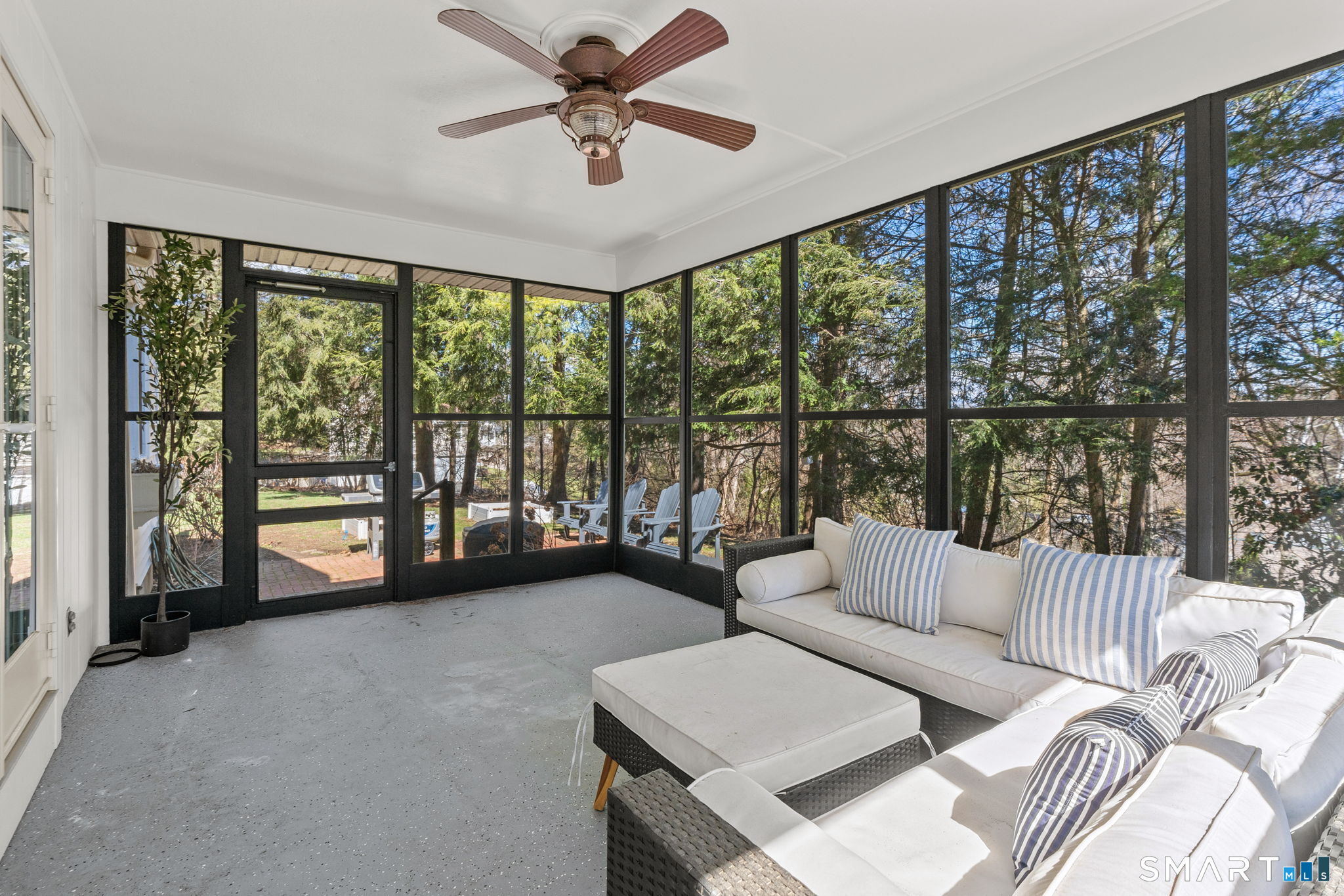 Welcome to 84 High Farms Road, a beautifully updated and thoughtfully designed home set near the top of one of West Hartford's most desirable streets. Offering over 2,600 square feet of living space, this 4-bedroom, 2.5-bath residence is filled with incredible natural light, enhanced by southern exposure and expansive windows throughout. The home features generously sized rooms and a seamless, inviting flow ideal for both everyday living and entertaining. A stunning living room-anchored by a white brick fireplace and walls of windows-creates a warm yet airy gathering space. The gracious dining room connects effortlessly to the updated kitchen. Complete with a large island, high ceilings, abundant workspace, and radiant heated floors, the kitchen also offers direct access to a screened-in porch and a spacious composite deck. Just steps away, an additional family room provides flexible space for a playroom, gym or office. Upstairs, a wide hallway leads to four well-proportioned bedrooms, including a primary suite with an updated en-suite bath and walk-in shower. A beautifully renovated hall bath with double vanity serves the additional bedrooms. Outside, the property shines with professionally landscaped grounds featuring flowers that bloom throughout the spring and summer months, creating a vibrant and welcoming setting.