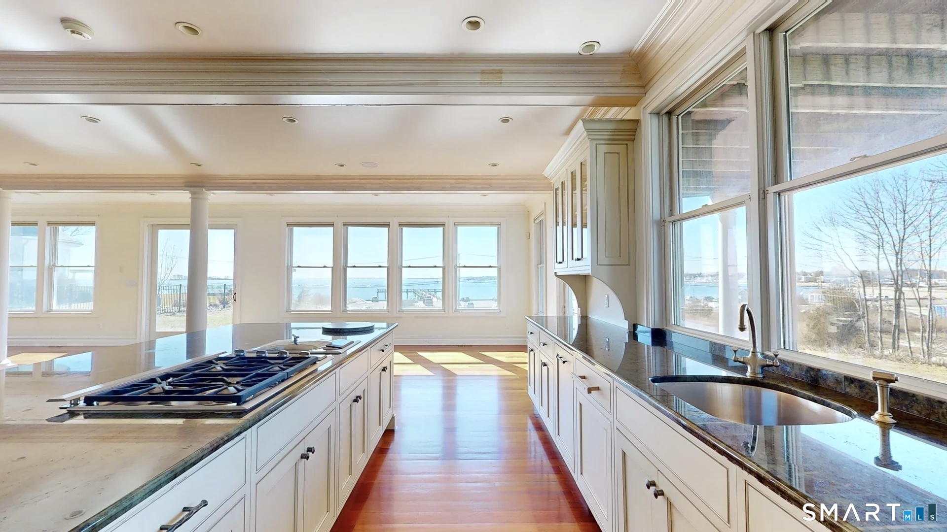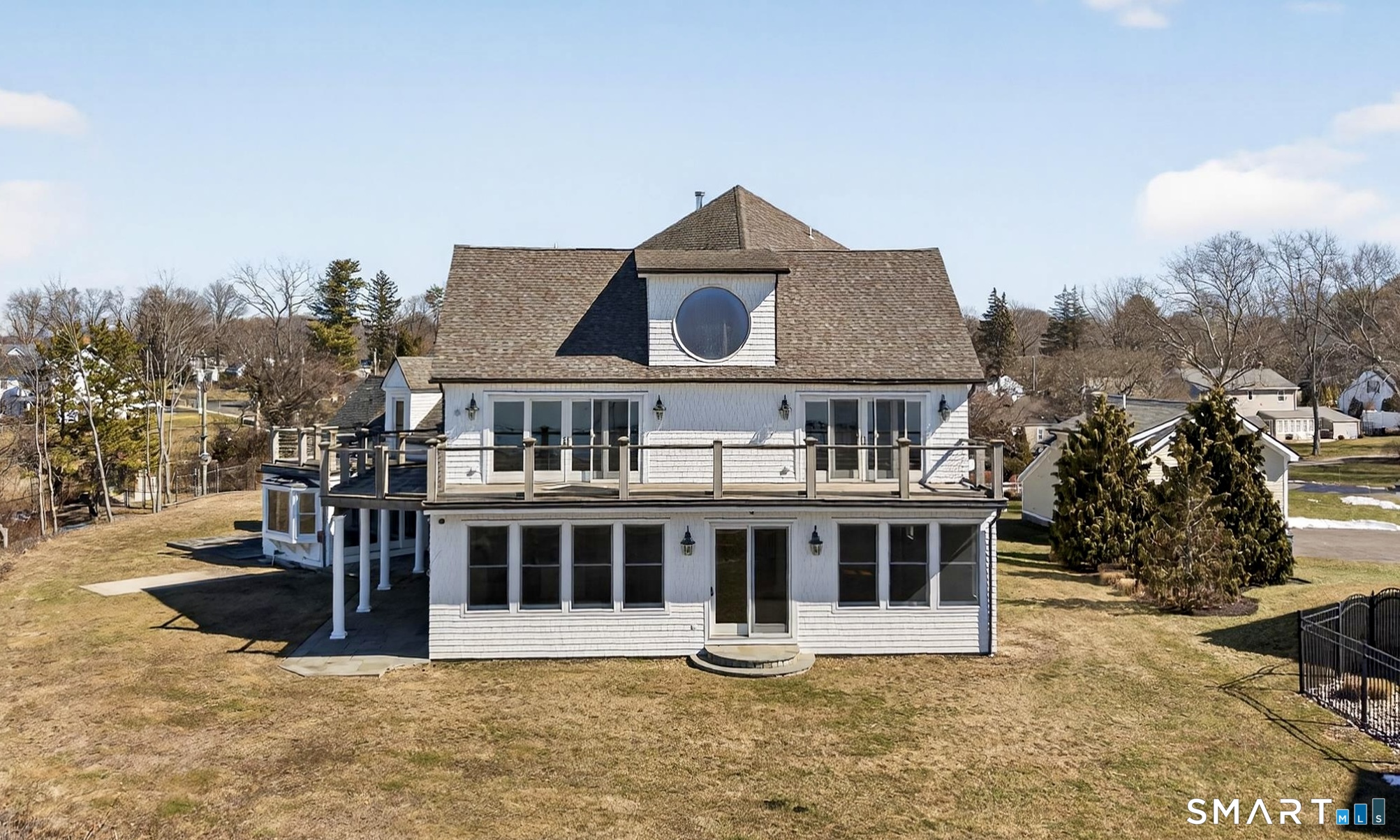 Perched high atop a scenic bluff, this extraordinary coastal retreat offers some of the most breathtaking water views in all of Milford, with sweeping, nearly 360-degree vistas of Long Island Sound and the neighboring bay. Set on over an acre of land, this is a truly rare opportunity to own one of the area's largest parcels with such expansive, unobstructed waterfront scenery. Originally built in 1936 and thoughtfully expanded in the early 2000s, this remarkable home blends timeless New England charm with modern design and functionality. Offering 4,430 square feet of finished living space across two levels, plus an additional 2,328 square feet of high-ceilinged unfinished basement, the possibilities here are endless-whether you envision a home theater, gym, or custom in-law suite. The residence features 5 spacious bedrooms and 4 full bathrooms, designed for both comfort and versatility. The open-concept kitchen flows seamlessly into a warm and inviting bar area, creating the perfect setting for entertaining, while the adjacent dining room provides an elegant space for gatherings and special occasions. Wake up to stunning sunrises, unwind with ocean breezes, and enjoy a lifestyle defined by tranquility and natural beauty. Located in one of Milford's most coveted coastal enclaves, this property is not just a home-it's a rare opportunity to create your dream waterfront retreat, all while being conveniently located near major highways, shopping, dining, and set within a highly