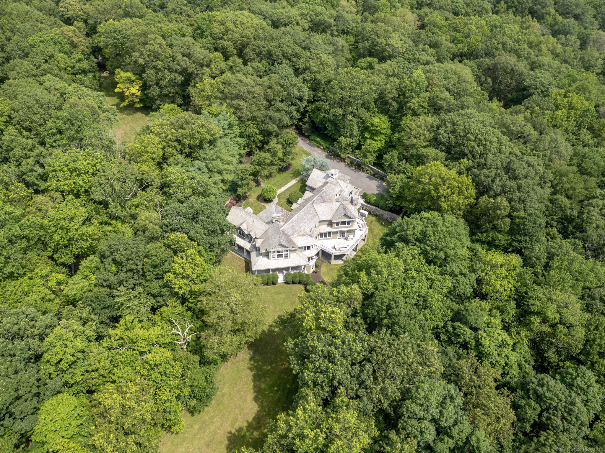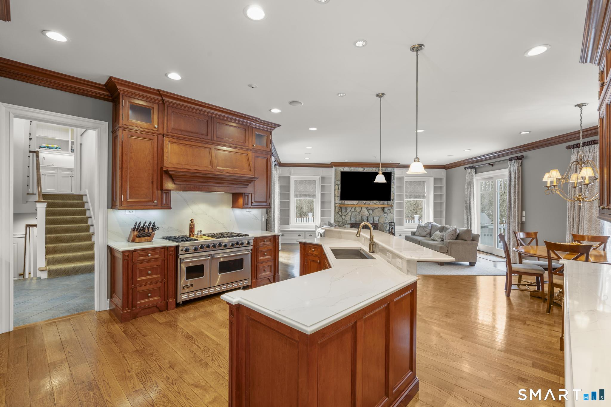 A rare opportunity to own a custom-designed residence by renowned architect Peter Cadoux, nestled on a private cul-de-sac abutting Quarry Head Park/Harrison Smith Preserve providing direct access to nearly 60 acres of hiking and equestrian trails. Additional privacy is provided by a serene sanctuary of forever green space to the west. This extraordinary home combines architectural artistry, thoughtful design, and the finest materials and craftsmanship. The home has been meticulously maintained by a professional property manager. A grand foyer with 20+ ft ceilings, welcomes guests into an atmosphere of understated elegance, framed by exceptional millwork. The main living spaces flow gracefully: a formal dining room adorned with a crystal chandelier and an inviting living room featuring a coffered ceiling and fireplace. A half bath for guests and a private office with built-in wood cabinetry is off to the right. Off the dining room, the butler's pantry featuring a refrigerator and wine cooler make entertaining a breeze. The kitchen is a culinary dream, appointed with Viking and Sub-Zero appliances, double sinks, beautiful quartz countertops and gorgeous custom cabinetry. With ease for entertainment, the kitchen opens to the family room with a well-appointed stone fireplace. Mirroring this focal point, an outdoor fireplace anchors the wrap-around deck, offering seamless indoor-outdoor entertaining.