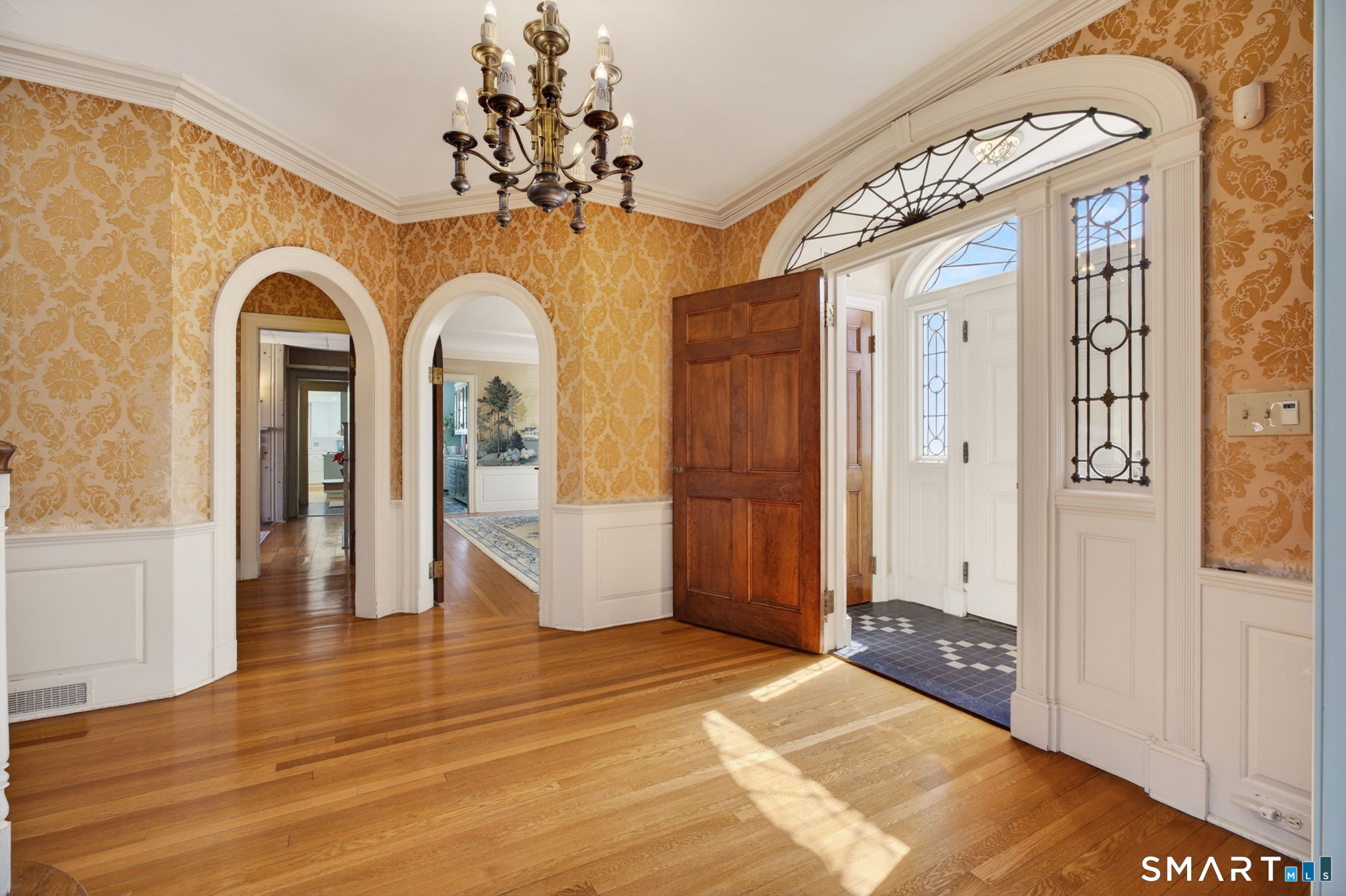 A Westville Legacy offered for the first time in over four decades. This distinguished residence features 6-8 bedrooms, 7 bathrooms, 5,342 sq ft (lower finished level offers an additional 1,339 sq ft,) complete with an elevator, comfortably accommodating three people which transports from the attached three car garage to both floors. The property stands on one of Westville's most coveted tree-lined street located close to Hopkins, houses of worship, Yale Bowl, and minutes to Yale. Long the backdrop for elegant gatherings and milestone celebrations, this much loved home embodies a rare combination of architectural presence, expansive living spaces and remarkable flexibility within the rooms. This very rare majestic house brings many items on your wish list including; an elevator, central air, a gas generator, new roof (2024), over 70 new windows (2018), 3 fireplaces, front and back staircases, a separate upstairs wing perfect for guests or au-pair, security system and an attached three car garage. Additionally, a walk-up unfinished attic with a skylight and cathedral ceiling waiting to be transformed into a magical space. The grand first floor begins with a magnificent foyer highlighted by a high ceiling and master woodwork. It is surrounded by a palatial formal living room with a commanding fireplace and walls of windows with a bay window overlooking the majestic terraced grounds sheathed with mature trees for privacy. The formal dining room accommodates 12-20 people