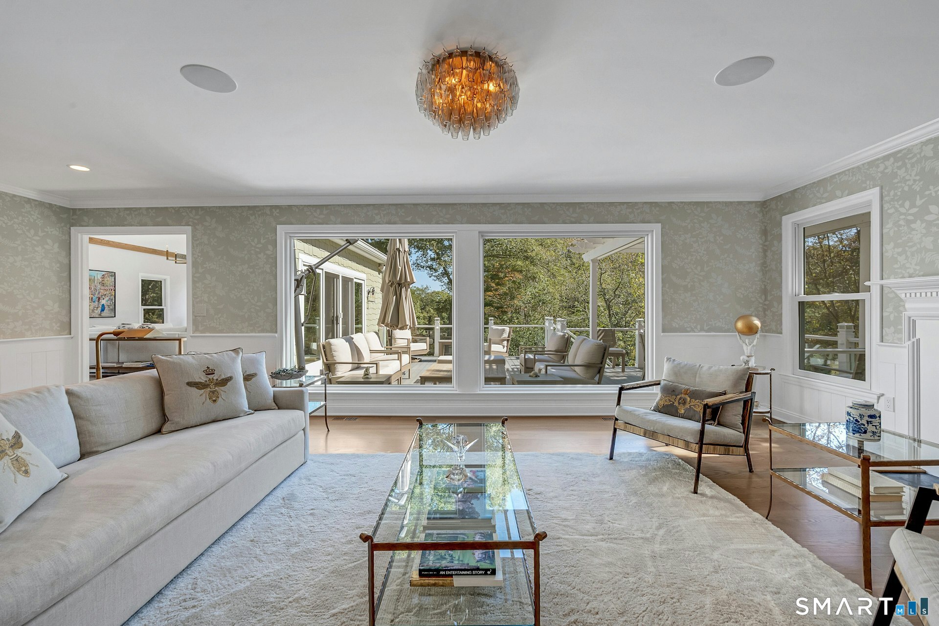 Set on 1.79 gated acres in the heart of mid-country Greenwich, this extraordinary property offers a rare combination of complete privacy, refined elegance, and modern luxury living. Tucked far back from a quiet country road and within a neighborhood of $10+ million estates, this property unfolds like a private botanical retreat--featuring sweeping perennial gardens, flowering shrubs, magnificent specimen plantings, and expansive open lawns that create year-round beauty and serenity. Completely rebuilt in 2019, the sophisticated Colonial residence spans 5,417 square feet with 4 bedrooms and 5 baths, masterfully designed for both grand entertaining and comfortable everyday living.