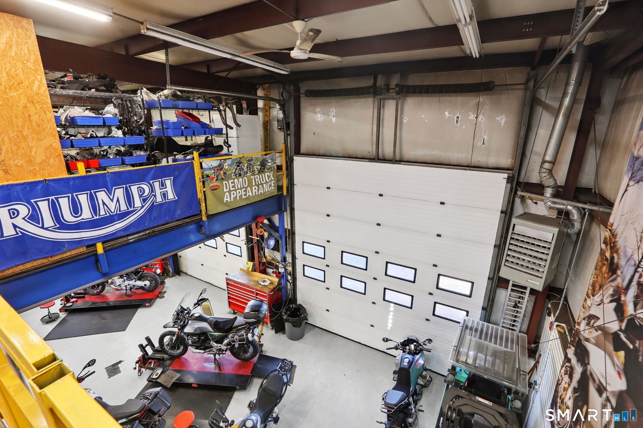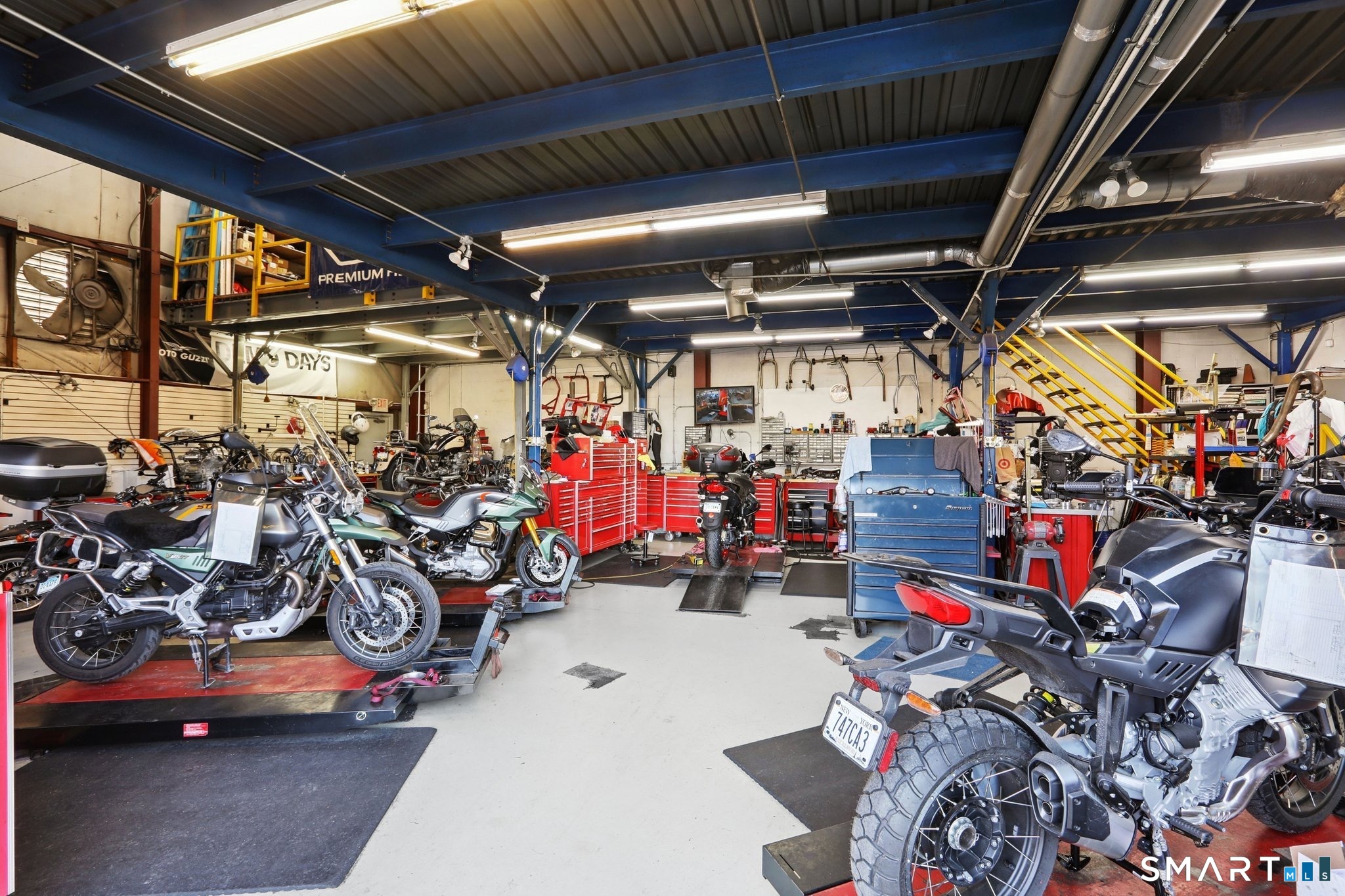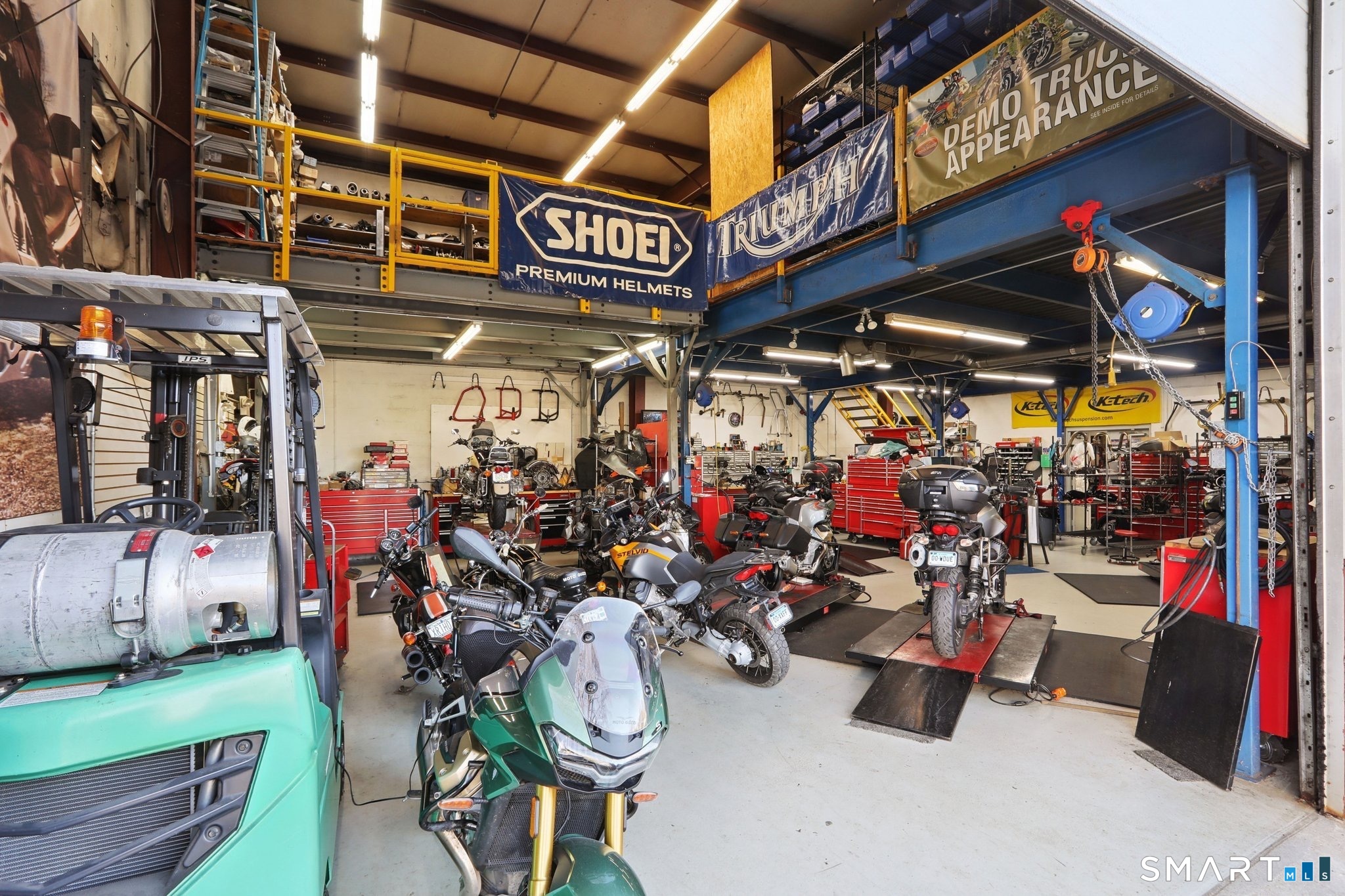 Exceptional commercial opportunity at a highly visible intersection. This well-established motorcycle sales and service dealership offers approximately 5,700 sq ft of versatile space including 4,440 sq ft of warehouse and 1,260 sq ft of retail showroom area. The building features nearly 2,000 sq ft of dedicated service bay space with two overhead doors, ideal for service, repair, or light industrial use. A large mezzanine level provides additional storage or operational flexibility. Situated on a .18-acre lot with additional outdoor storage, the property offers excellent exposure and accessibility for a variety of commercial uses. Utilities include city water and sewer, gas hot air heat, and central air conditioning. This highly visible location makes it an ideal opportunity for owner-users or investors seeking a property suited for retail, service, automotive, or warehouse operations.