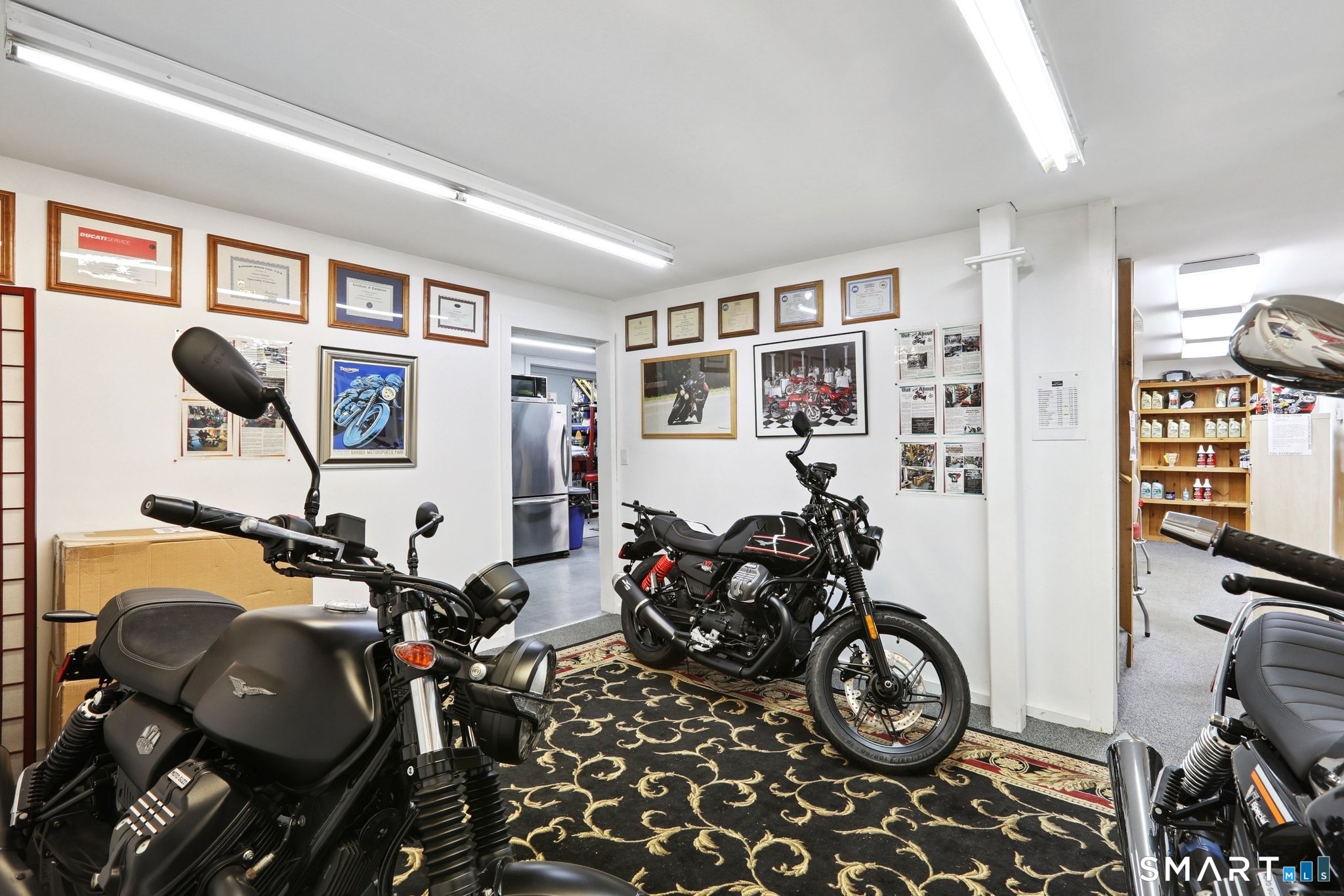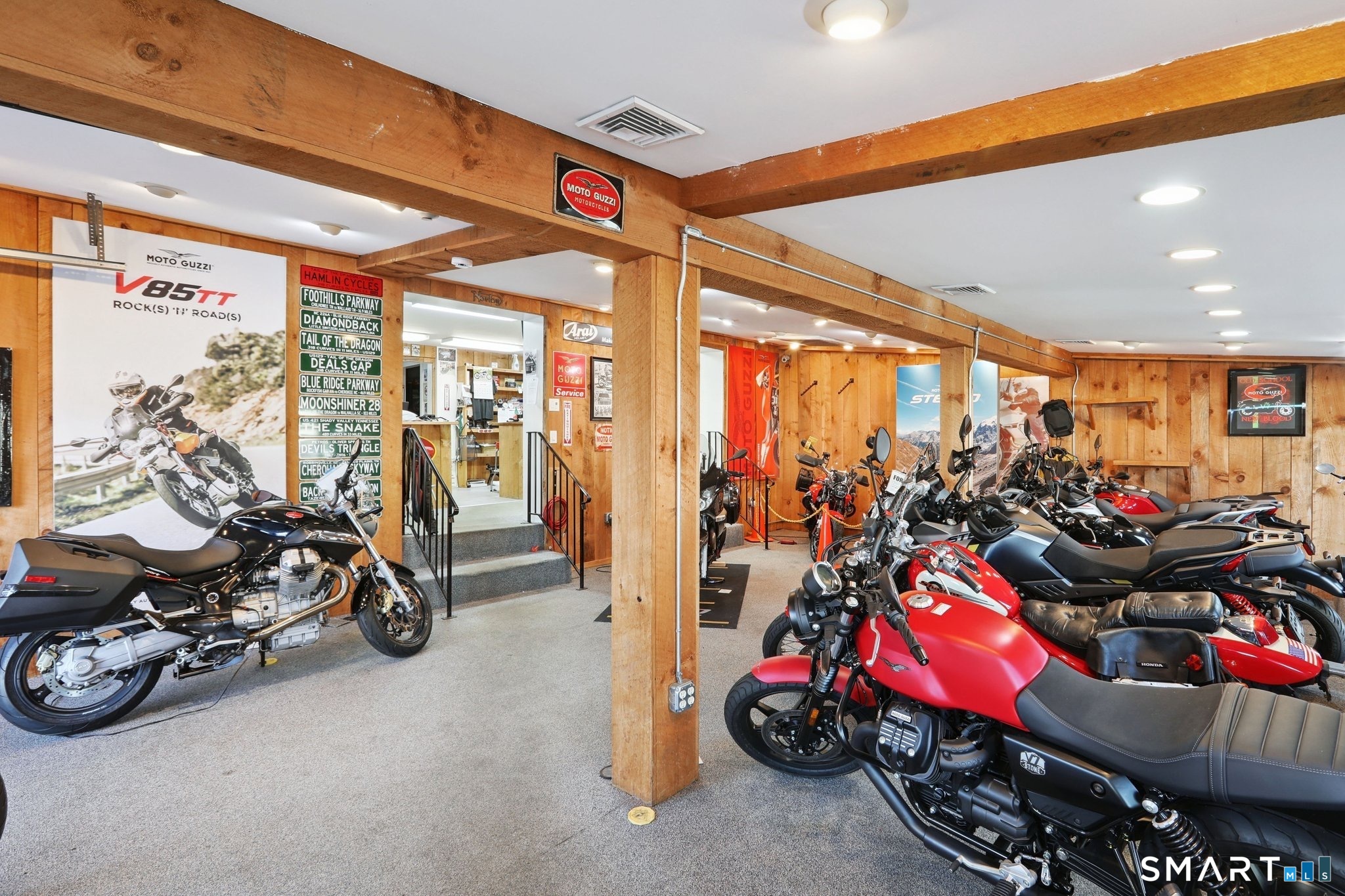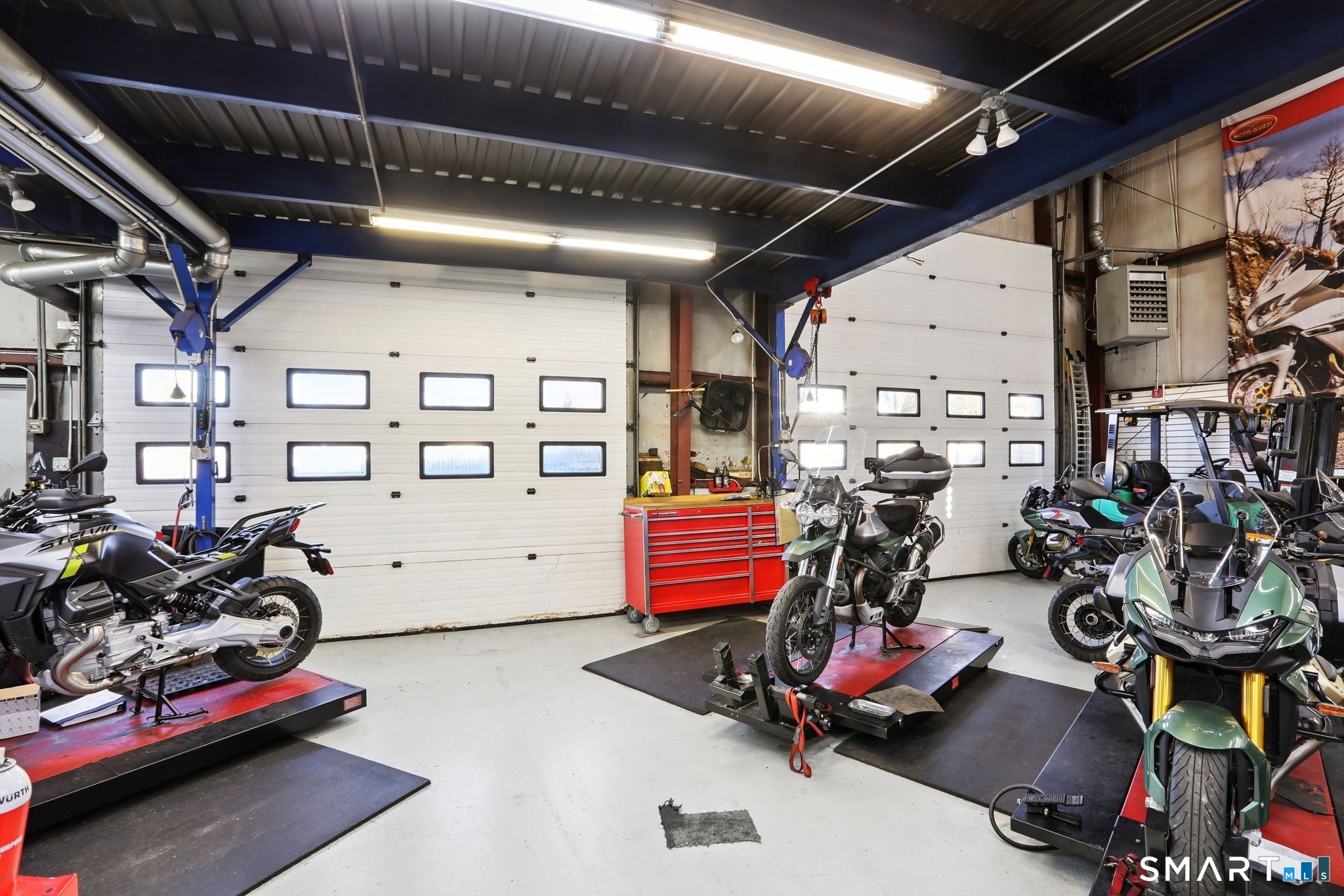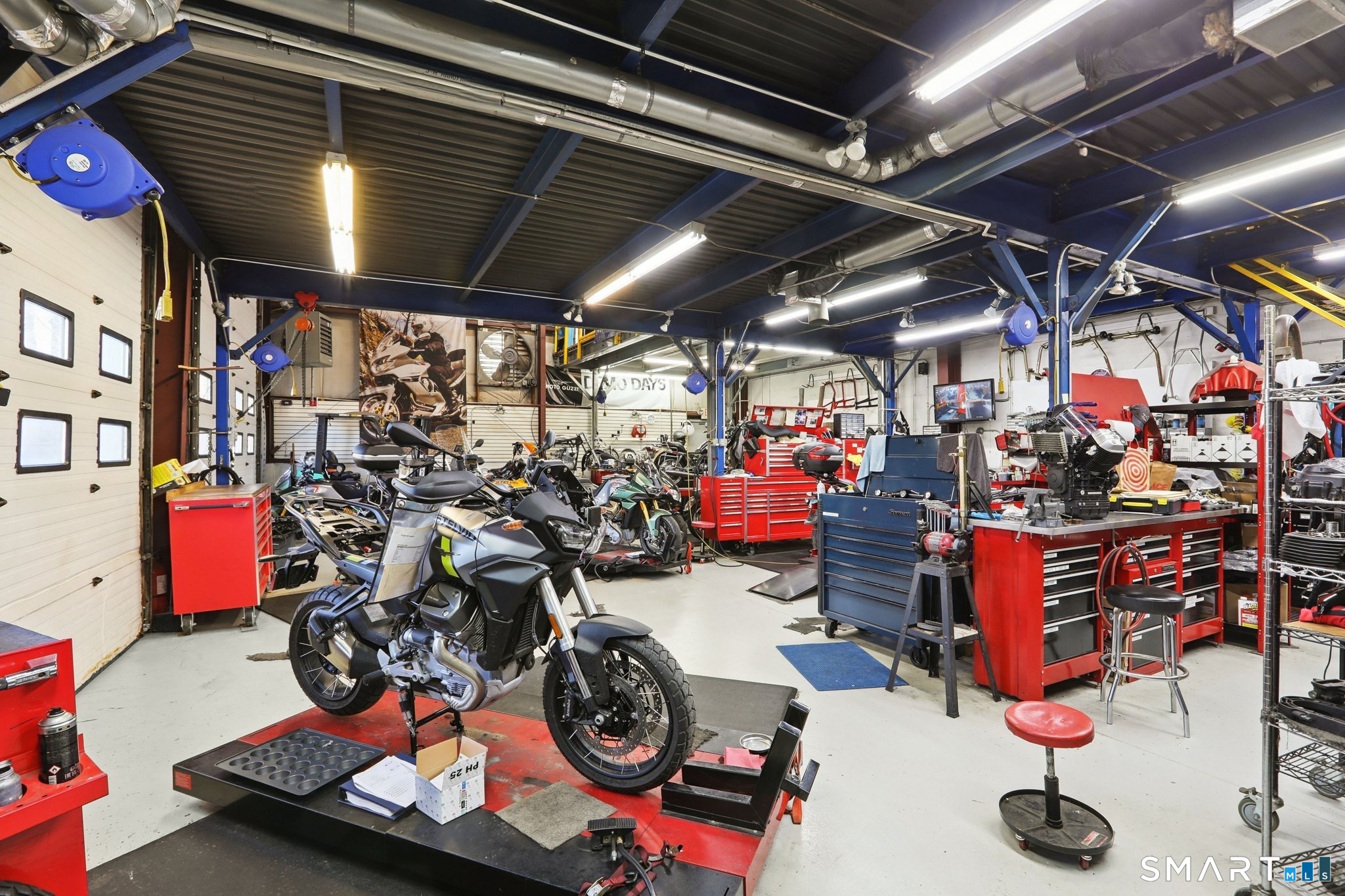 Exceptional commercial opportunity at a highly visible intersection. This well-established motorcycle sales and service dealership offers approximately 5,700 sq ft of versatile space including 4,440 sq ft of warehouse and 1,260 sq ft of retail showroom area. The building features nearly 2,000 sq ft of dedicated service bay space with two overhead doors, ideal for service, repair, or light industrial use. A large mezzanine level provides additional storage or operational flexibility. Situated on a .18-acre lot with additional outdoor storage, the property offers excellent exposure and accessibility for a variety of commercial uses. Utilities include city water and sewer, gas hot air heat, and central air conditioning. This highly visible location makes it an ideal opportunity for owner-users or investors seeking a property suited for retail, service, automotive, or warehouse operations.