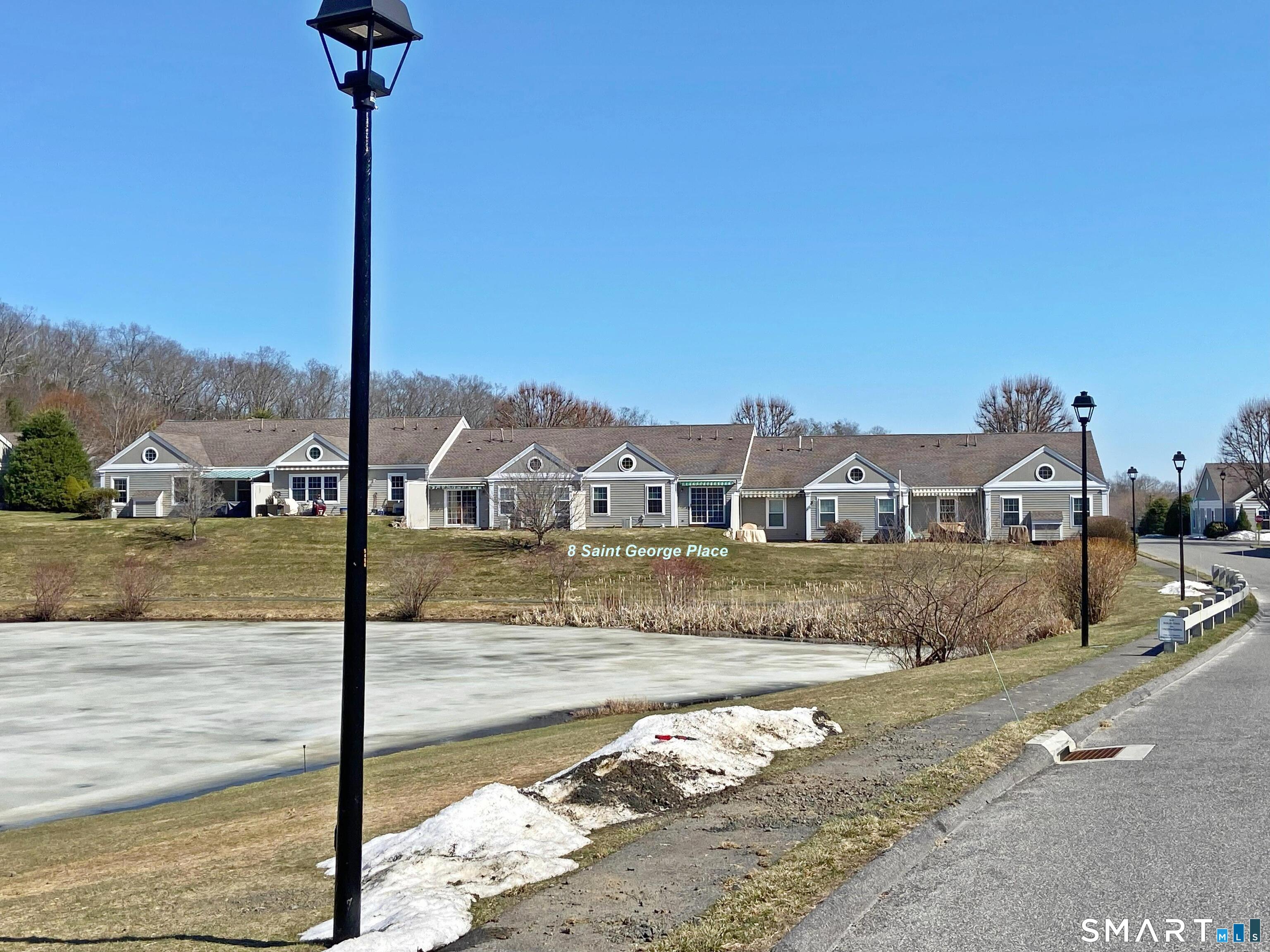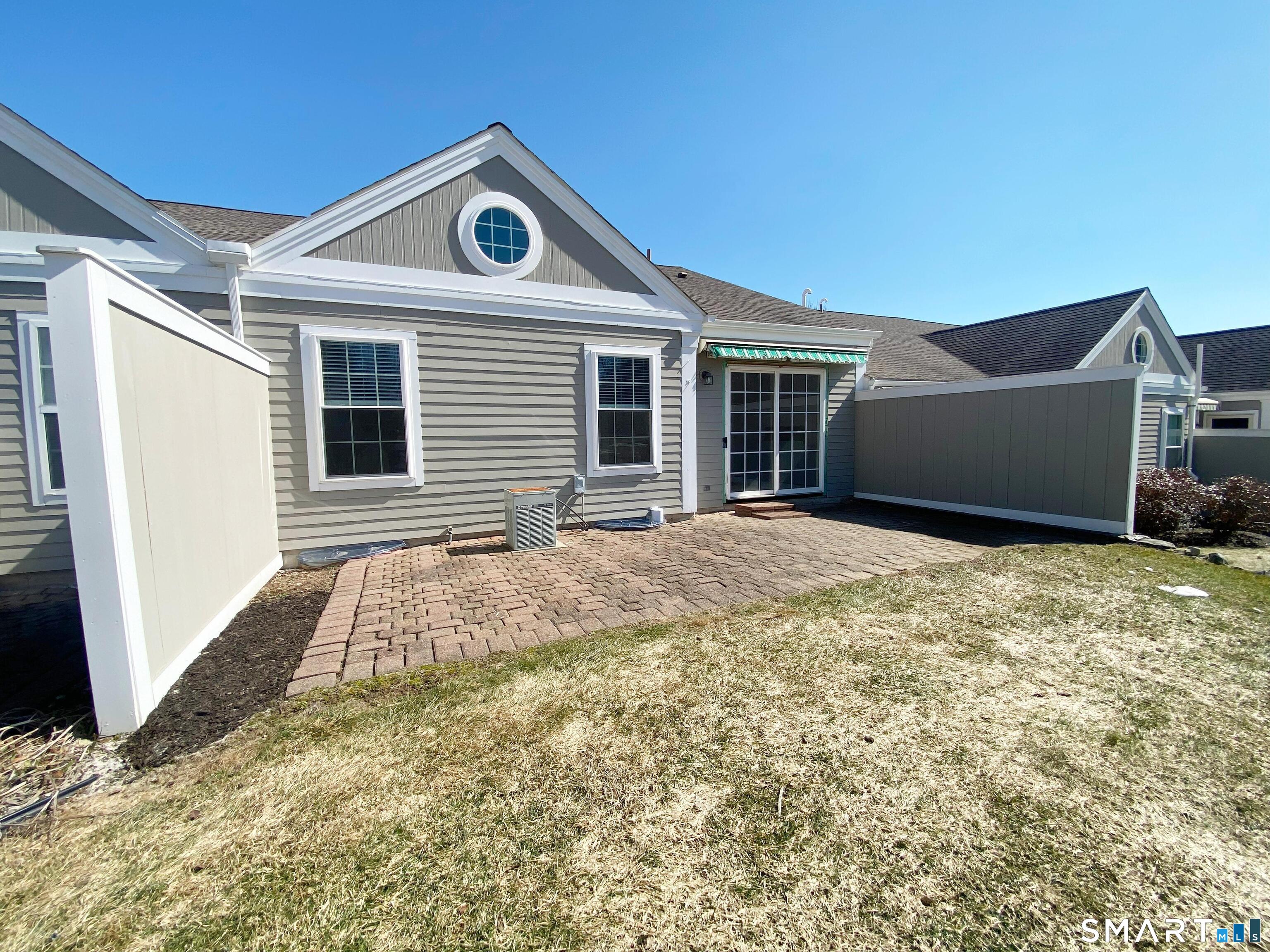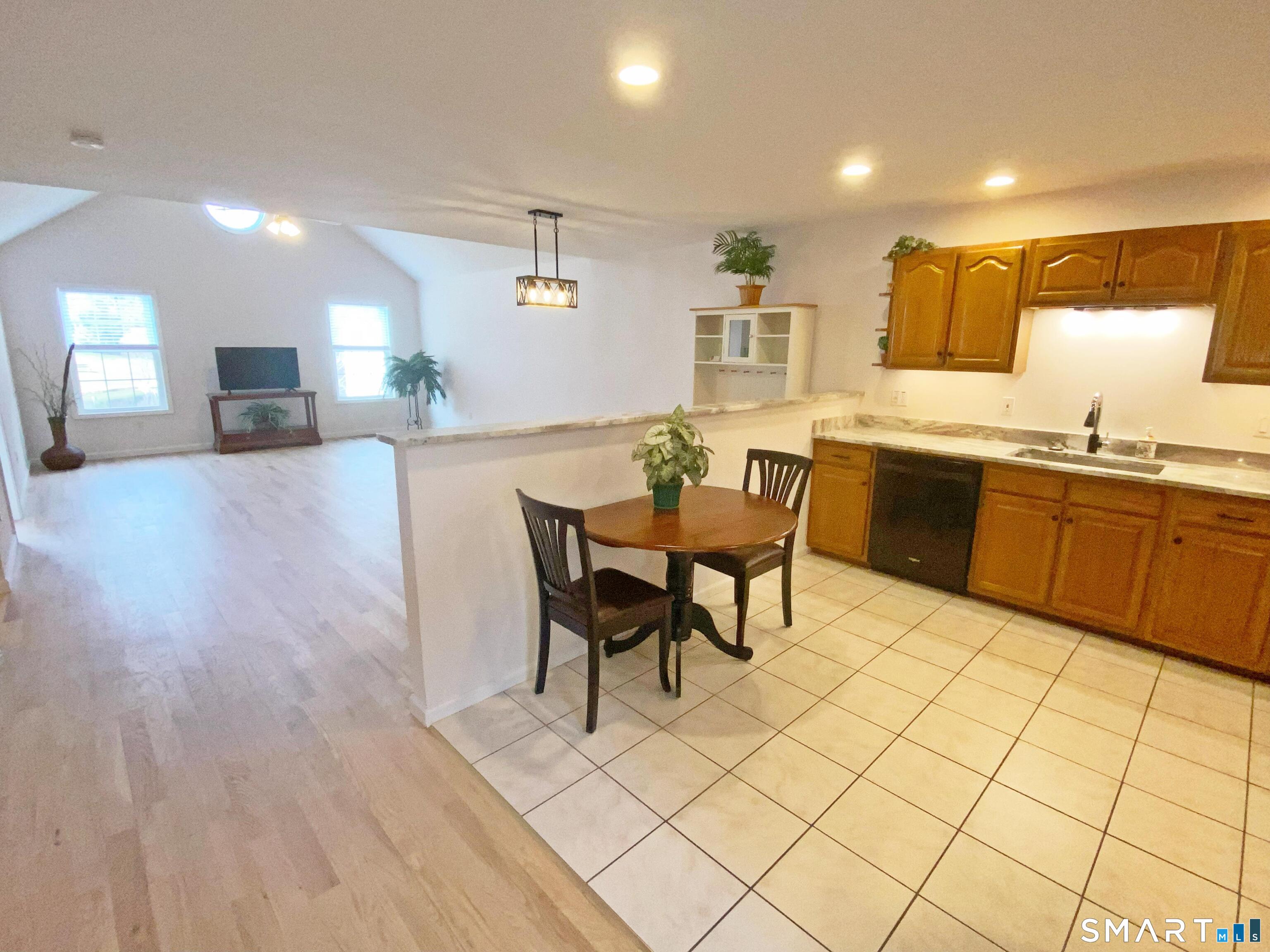 Beautiful water view unit at Walnut Tree Village, a highly sought after 55+ Active adult community. This two-bedroom, move-in ready unit has been tastefully refreshed and features new wide-board hardwood flooring in the main living areas and bedrooms, a large kitchen with eat-in area, vaulted ceilings in the living room and primary bedroom suite, full basement with new laminate flooring throughout, perfect setup for recreation areas or finishing. The entire unit has been professionally painted including the garage. The kitchen has new granite countertops and deep sink, a new refrigerator, oven/range, and dishwasher. There is a new hot water heater and new full house humidifier. A washer and dryer is included and is conveniently located on the main level. The primary bedroom has a deep walk-in closet and primary bath which features a walk-in rain shower with additional hand-held shower head, a large seat, grab bars, plus a new touch activated medicine cabinet with Anti-Fogging and LED lit mirror. The year-round view of the fountain pond and community gazebo is spectacular and this unit is one of only a dozen or so units that offers this vantage. The patio with privacy panels also features a retractable awning. The front door, storm door, and sliding doors are also new. The front door has a digital keypad, biometric touch access, as well as a standard key, the garage door has an exterior keypad & remote. Conveniently located near shopping, restaurants, and highways.