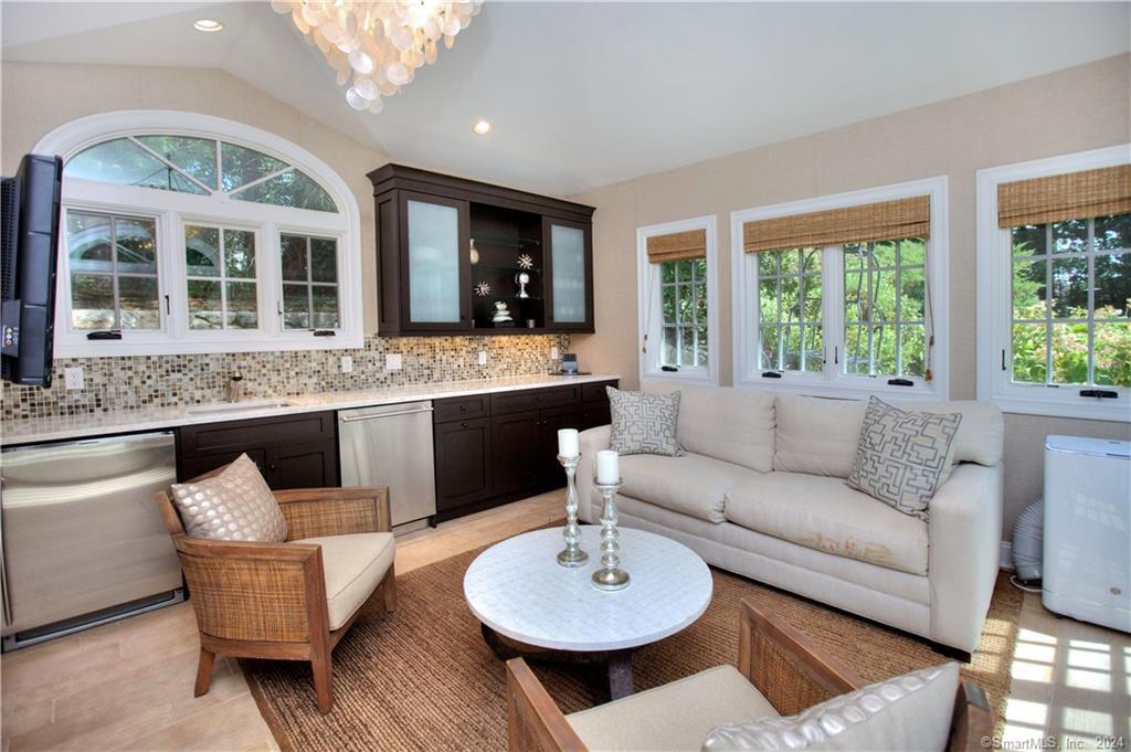 NEWLY RENOVATED!!! Welcome to your dream summer rental. Gorgeous spacious home situated at the end of a long private driveway in a fully fenced professionally exquisite landscaped property on 2.14 level acres with pool and spa. This beautiful colonial with a dramatic two story foyer, new light natural hardwood floors, high ceilings, custom millwork & beautiful details is finished on 4 levels. 2 Home Offices with extensive built-ins is perfect to work remotely. Formal Living Room with fireplace flows into the banquet style formal Dining Room. Entertain with ease in the fully equipped modern Eat-in Kitchen complete with high end appliances including a wolf range, subzero refrigerator, 2 dishwashers and a huge marble island. Family Room with fireplace and french doors leading out to the patio. The Game Room is the perfect place to host with its stunning bar and pool table. Bluestone patio provides relaxed living and easy entertaining. Elegant Primary Bedroom with dual walk in closets and 2 luxe spa Bathrooms and a steam shower. Second floor has 3 more ensuite Bedrooms. The 3rd floor has a media room , work out area including free weights and an elliptical as well as a full bath. The massive patio features a built in grill, seating and eating areas, great for outdoor entertaining. Heated Pool House with Kitchenette, full bath and an extra Bedroom. Full house generator. Your own putting green. Fabulous opportunity to enjoy summer in Westport at its best!!!