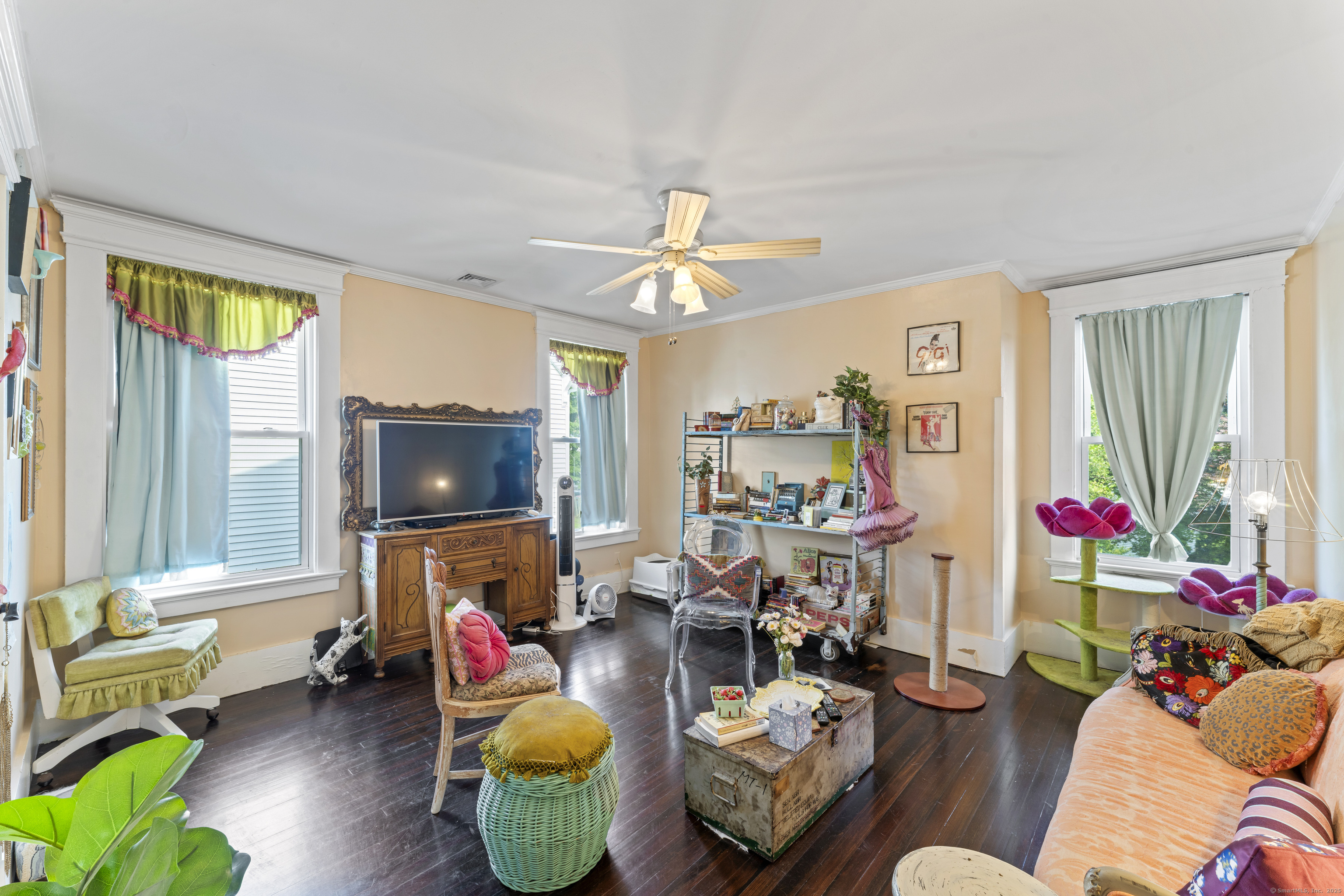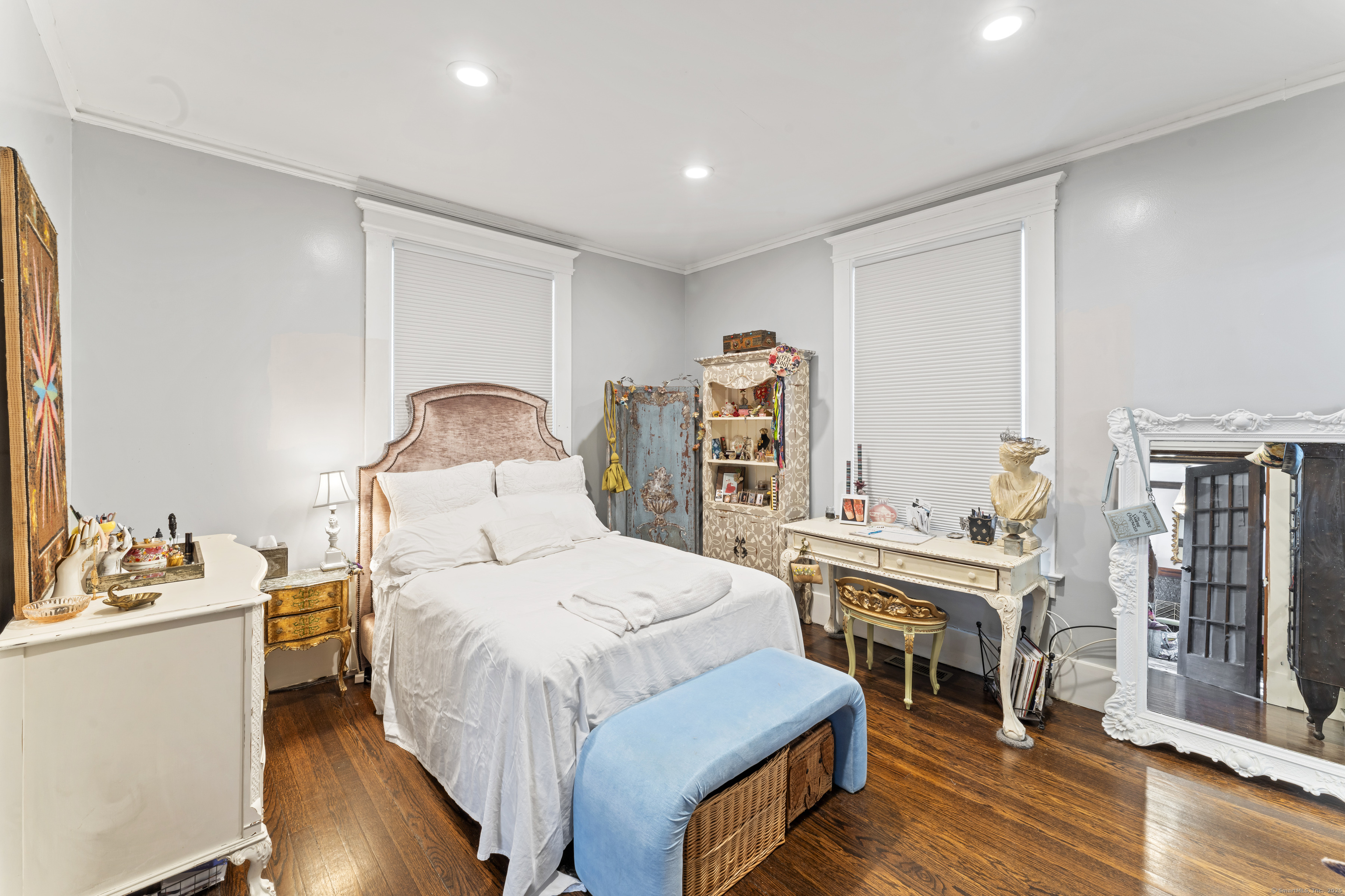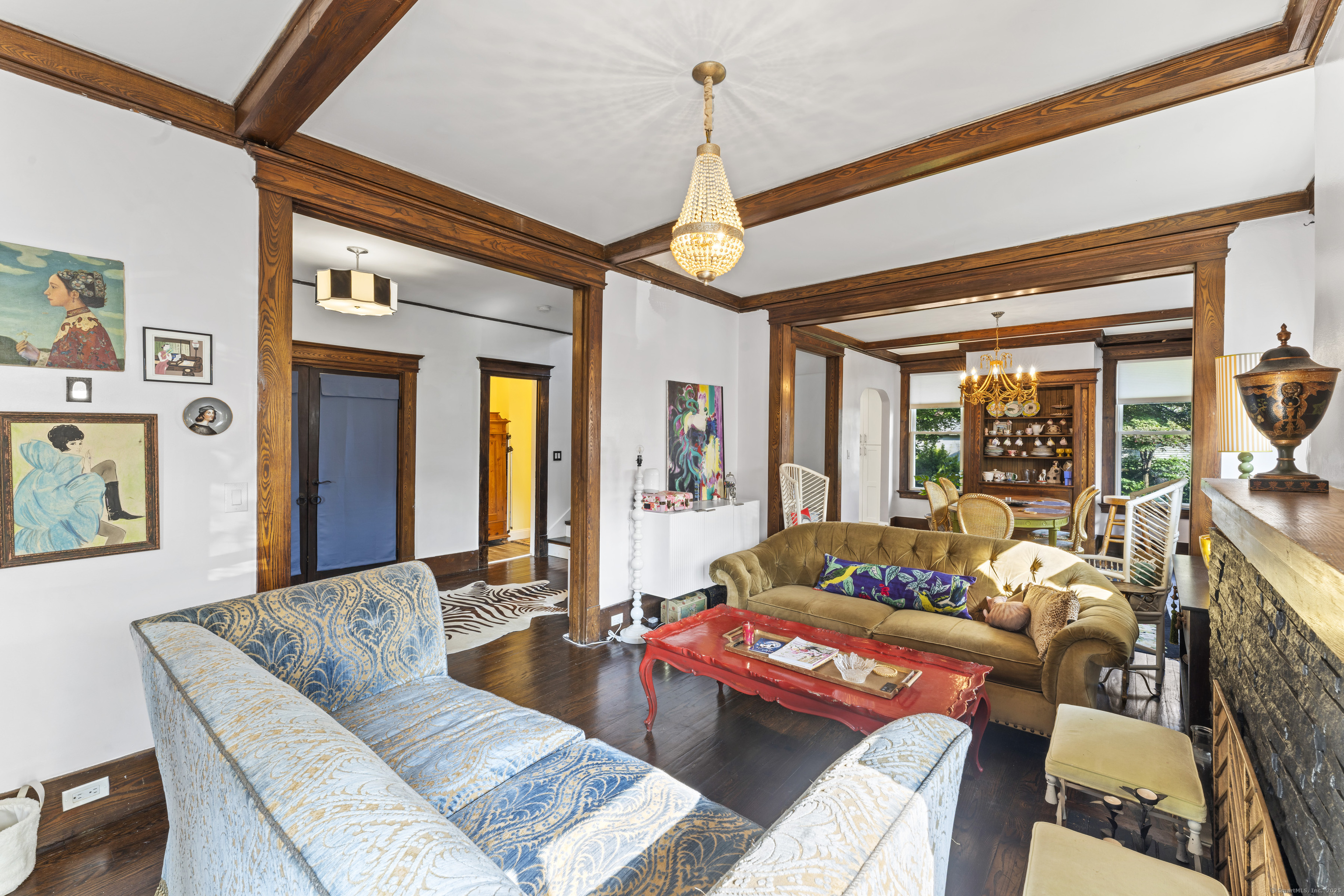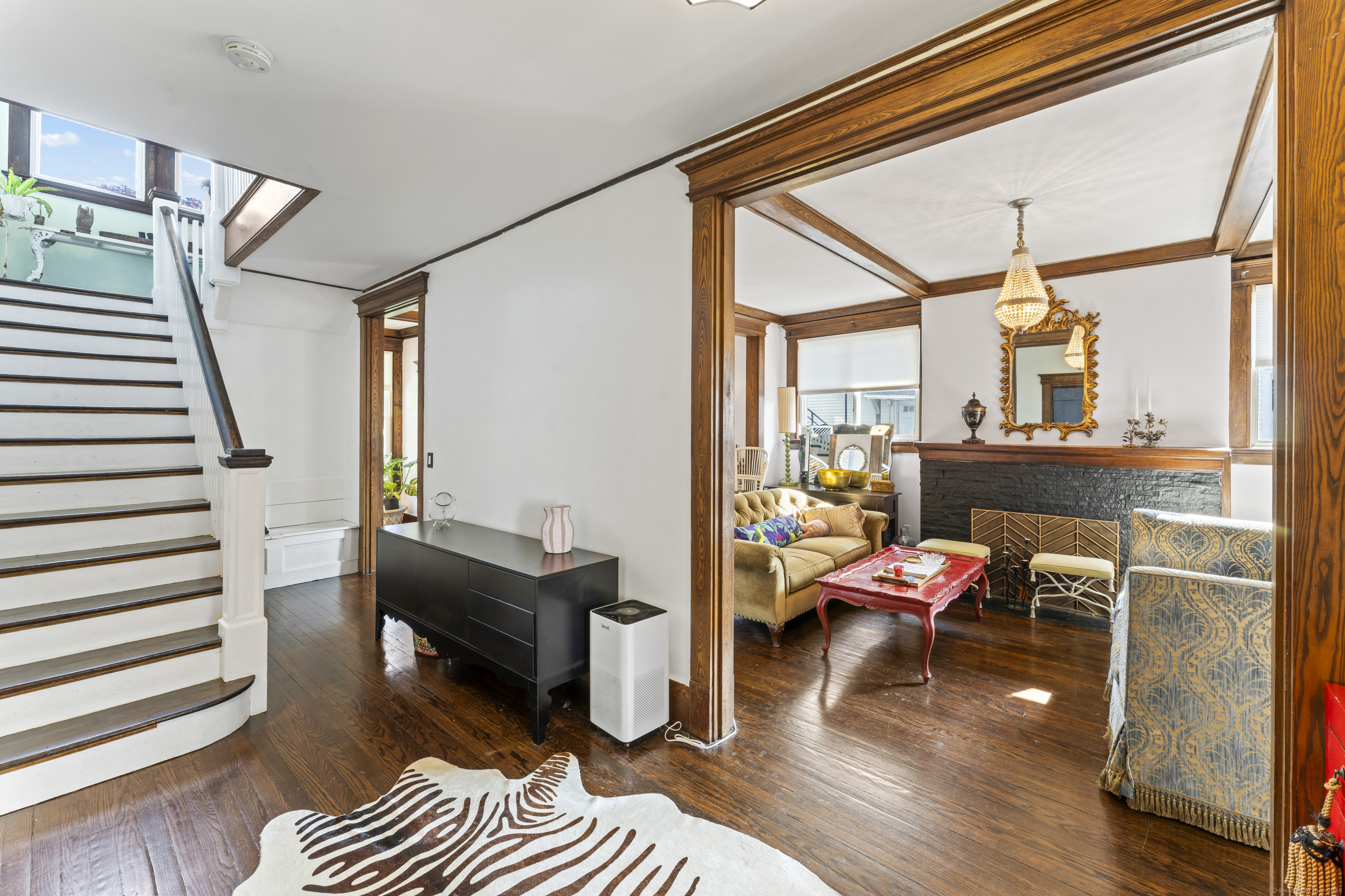 Welcome to 82 Main Street! This stunning colonial with its sprawling front porch is fully renovated and top to bottom charming! Featuring expansive water views the home boasts 9 foot ceilings, 5 bedrooms and 2 Full bathrooms. The 1st floor primary suite or office offers rejuvenated original French doors, a walk in closet to private Jack and Jill Bathroom. All of the original custom wood work has been restored with built ins, fireplace and gleaming hard wood floors throughout. A well appointed and fully applianced kitchen opens to private back deck and yard. Climb the magnificent staircase to 4 huge bedrooms. The double vanity in second bathroom accommodates a busy family. The lower level has generous room for storage and a great finished space perfect as a family room or play room. The home is just blocks from the famous West Haven Beaches and 10 minutes to Everything New Haven has to offer.