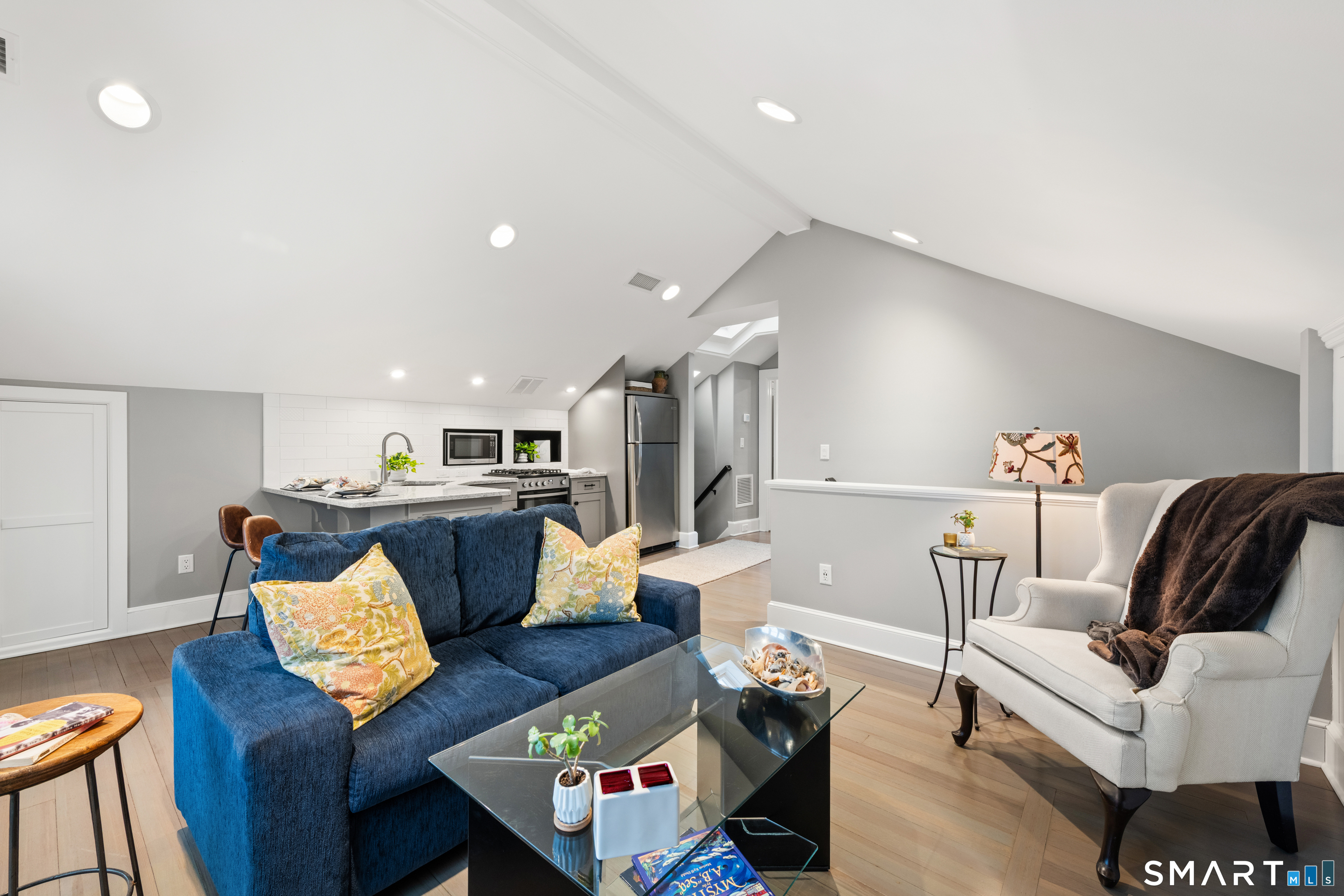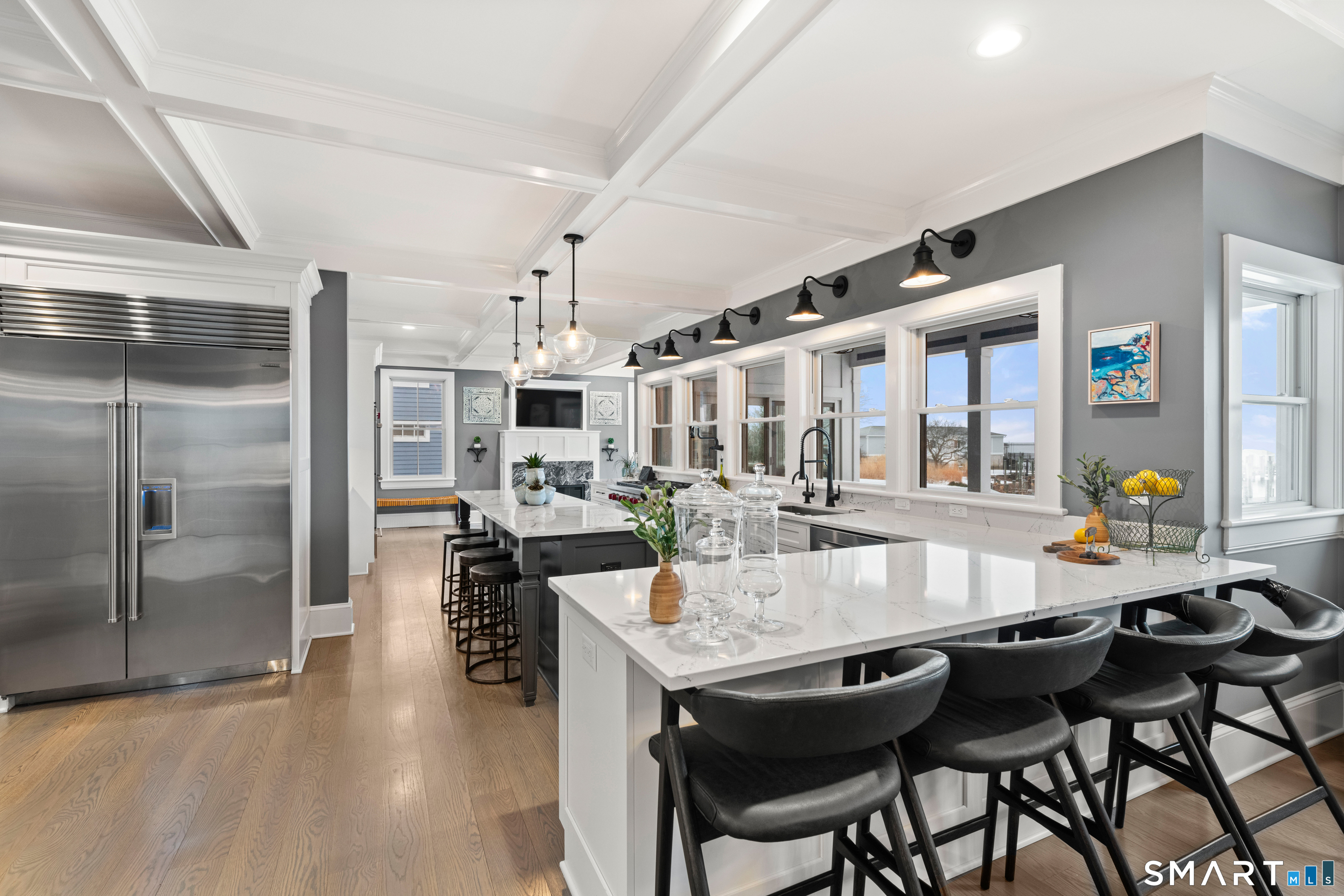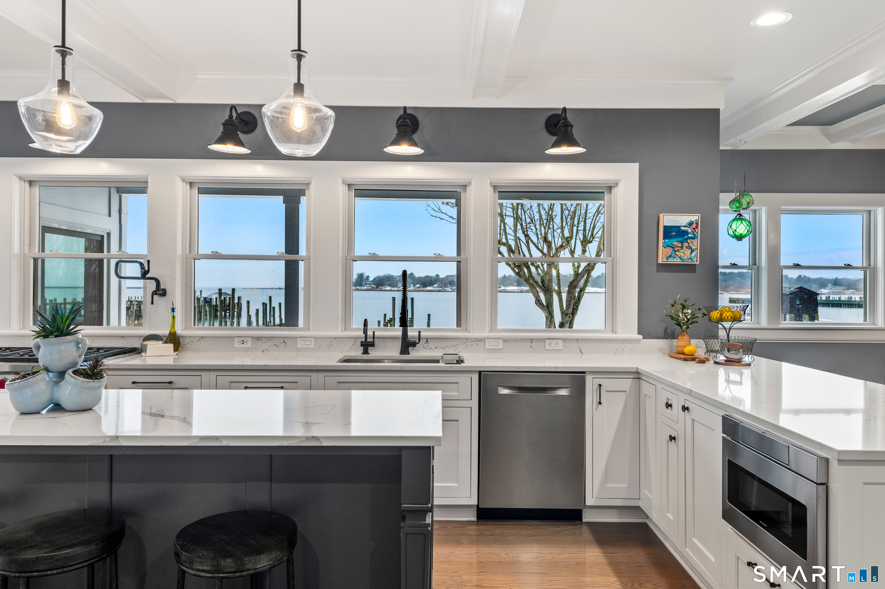 At the edge of Stonington Harbor, where sailboats move slowly through the water and the village wakes each morning to the rhythm of the tide, 88 Water Street offers a rare opportunity to live directly within one of New England's most beloved coastal communities. This historic home dates to 1840, yet today it feels distinctly current following an extensive renovation completed in 2022. The result is a residence that respects its heritage while embracing the ease and openness expected of modern coastal living. Inside, more than 3,400 square feet of thoughtfully reimagined space unfold across multiple levels, with views of the harbor appearing at nearly every turn. The home's central living spaces flow naturally from one room to the next, creating an environment designed as much for relaxed daily life as it is for hosting friends and family. A spacious kitchen anchors the main level, centered around a generous island and complemented by casual gathering areas that invite conversation long after dinner ends. Nearby living and dining rooms retain the warmth and character expected in a home of this era, anchored by a traditional fireplace that brings a sense of intimacy to the space. Upstairs, the primary suite enjoys its own private outlook toward the water, with direct access to a deck that feels perfectly suited for quiet mornings overlooking the harbor. Additional bedrooms provide comfortable accommodations for family and guests.