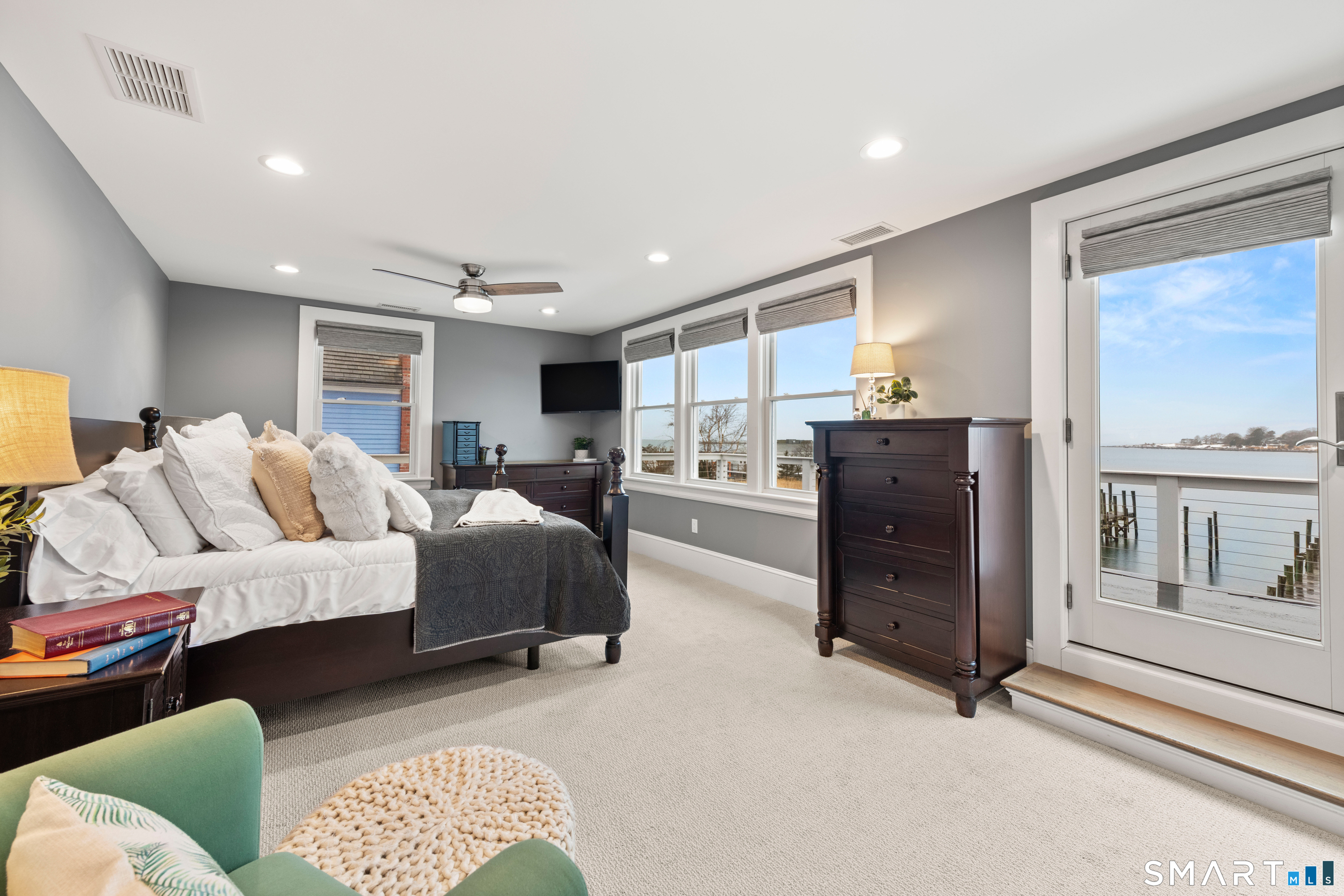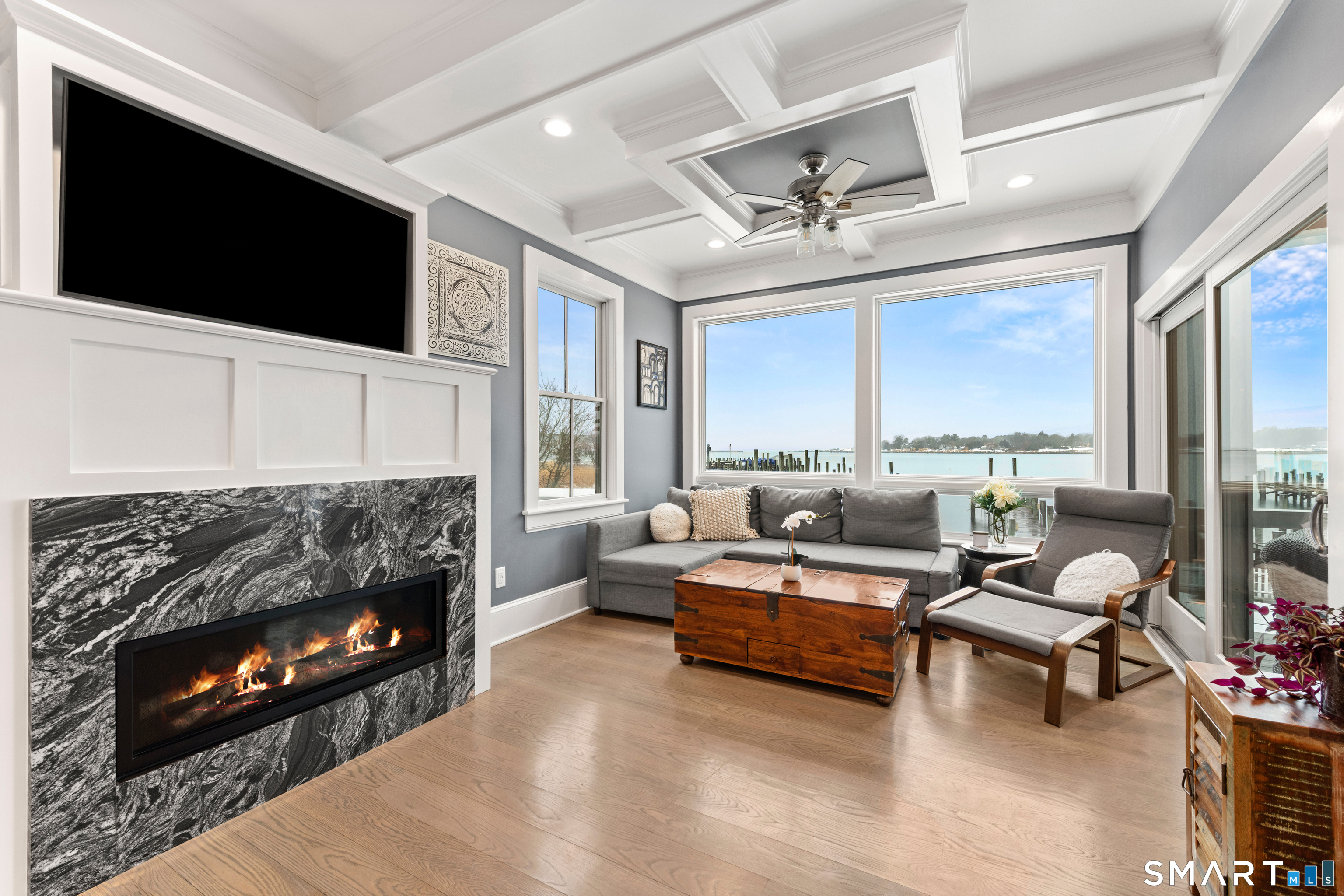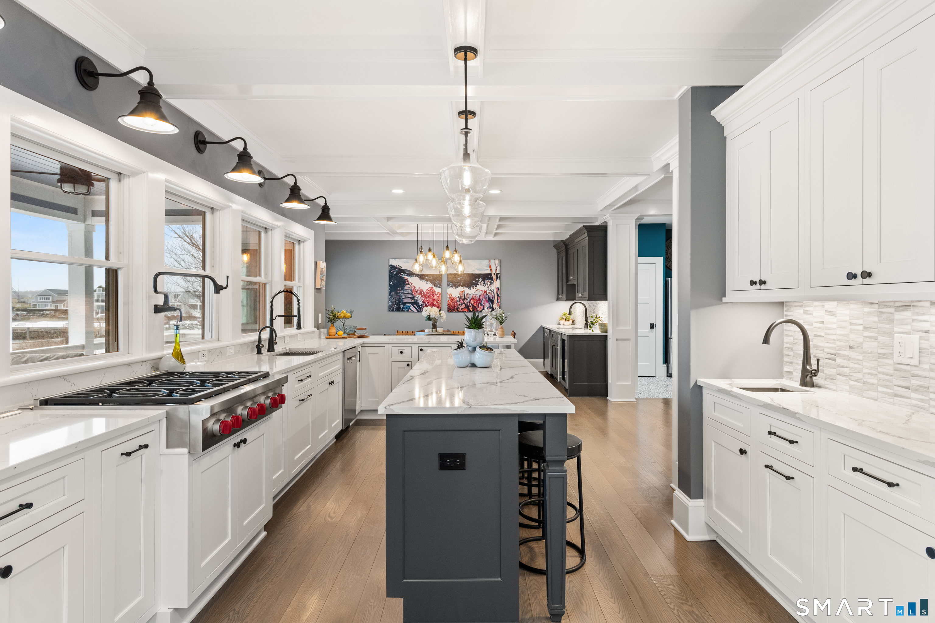 At the edge of Stonington Harbor, where sailboats move slowly through the water and the village wakes each morning to the rhythm of the tide, 88 Water Street offers a rare opportunity to live directly within one of New England's most beloved coastal communities. This historic home dates to 1840, yet today it feels distinctly current following an extensive renovation completed in 2022. The result is a residence that respects its heritage while embracing the ease and openness expected of modern coastal living. Inside, more than 3,400 square feet of thoughtfully reimagined space unfold across multiple levels, with views of the harbor appearing at nearly every turn. The home's central living spaces flow naturally from one room to the next, creating an environment designed as much for relaxed daily life as it is for hosting friends and family. A spacious kitchen anchors the main level, centered around a generous island and complemented by casual gathering areas that invite conversation long after dinner ends. Nearby living and dining rooms retain the warmth and character expected in a home of this era, anchored by a traditional fireplace that brings a sense of intimacy to the space. Upstairs, the primary suite enjoys its own private outlook toward the water, with direct access to a deck that feels perfectly suited for quiet mornings overlooking the harbor. Additional bedrooms provide comfortable accommodations for family and guests.