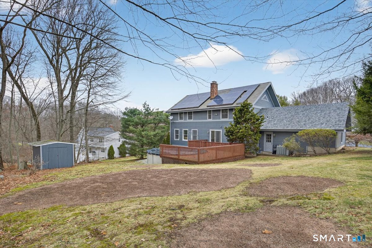 This 4-bedroom Colonial offers the perfect combination of space, comfort & location. Ideally situated in a subdivision close to shopping, restaurants and major highways. The main level welcomes you with a spacious eat-in kitchen featuring abundant cabinetry, perfect for cooking & gathering. Sliders from the kitchen lead out to an oversized deck, creating a seamless indoor-outdoor flow for hosting. The kitchen opens directly to a large family room with built-ins & fireplace, making it the perfect spot to unwind. A formal dining room for special occasions and a bright living room that offers additional flexible living space. The second floor features four generously sized bedrooms and two full bathrooms. The spacious primary suite includes its own private full bath and an impressive walk-in closet. The additional bedrooms are well-proportioned and ideal for family members, guests, or home office space. The finished walk-out lower level adds over 1,100 square feet of additional living space & includes another full bathroom. This versatile area is perfect for a guest suite, gym, office, media room, or playroom. With sliders to the private backyard, you have easy access to the above ground pool. Additional highlights include a two-car garage, central air, & a beautifully landscaped lot. Plus...City water & sewers and economical solar panels to keep your electric bill way down. With its generous layout and excellent location, this home truly offers the best of comfortable living.