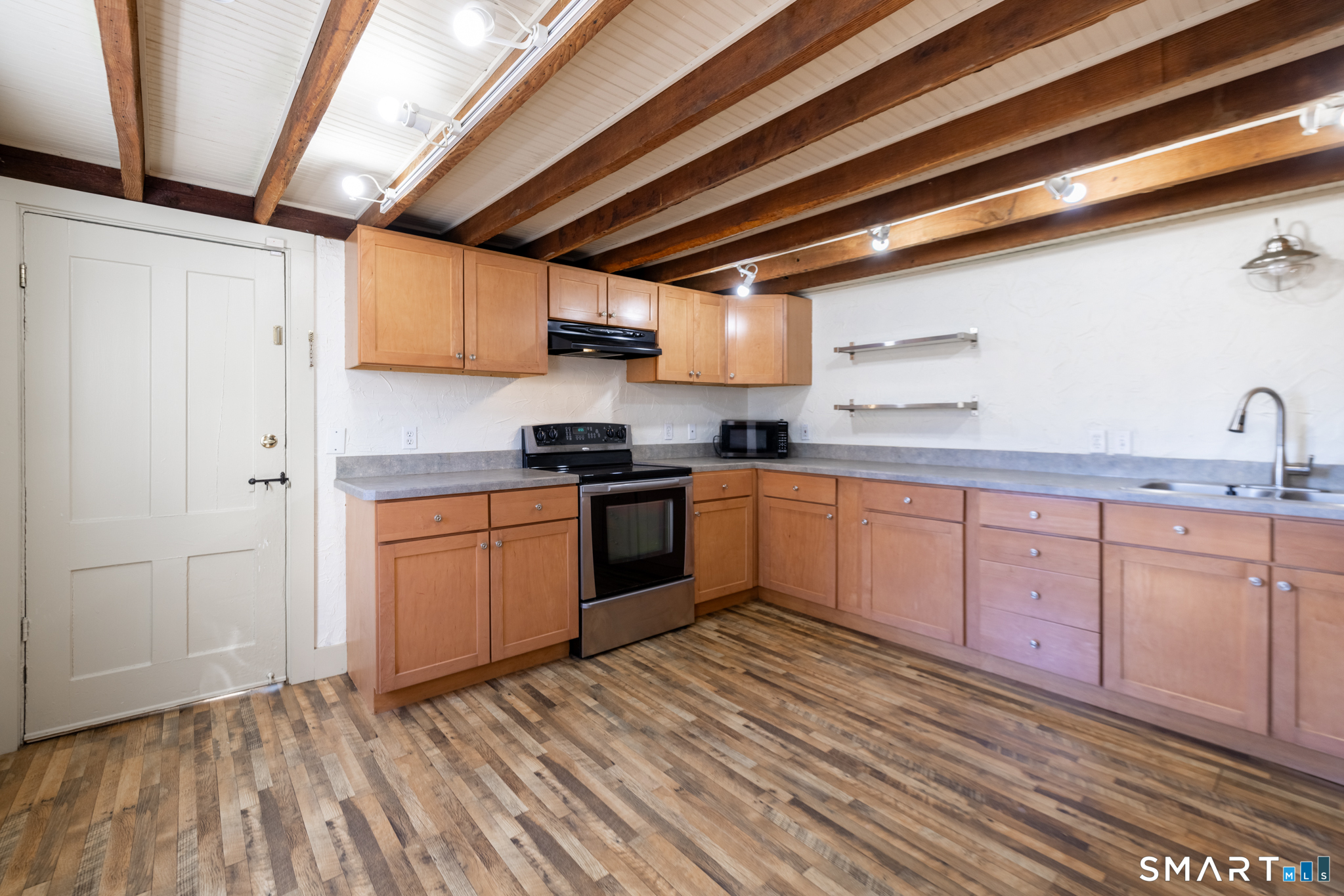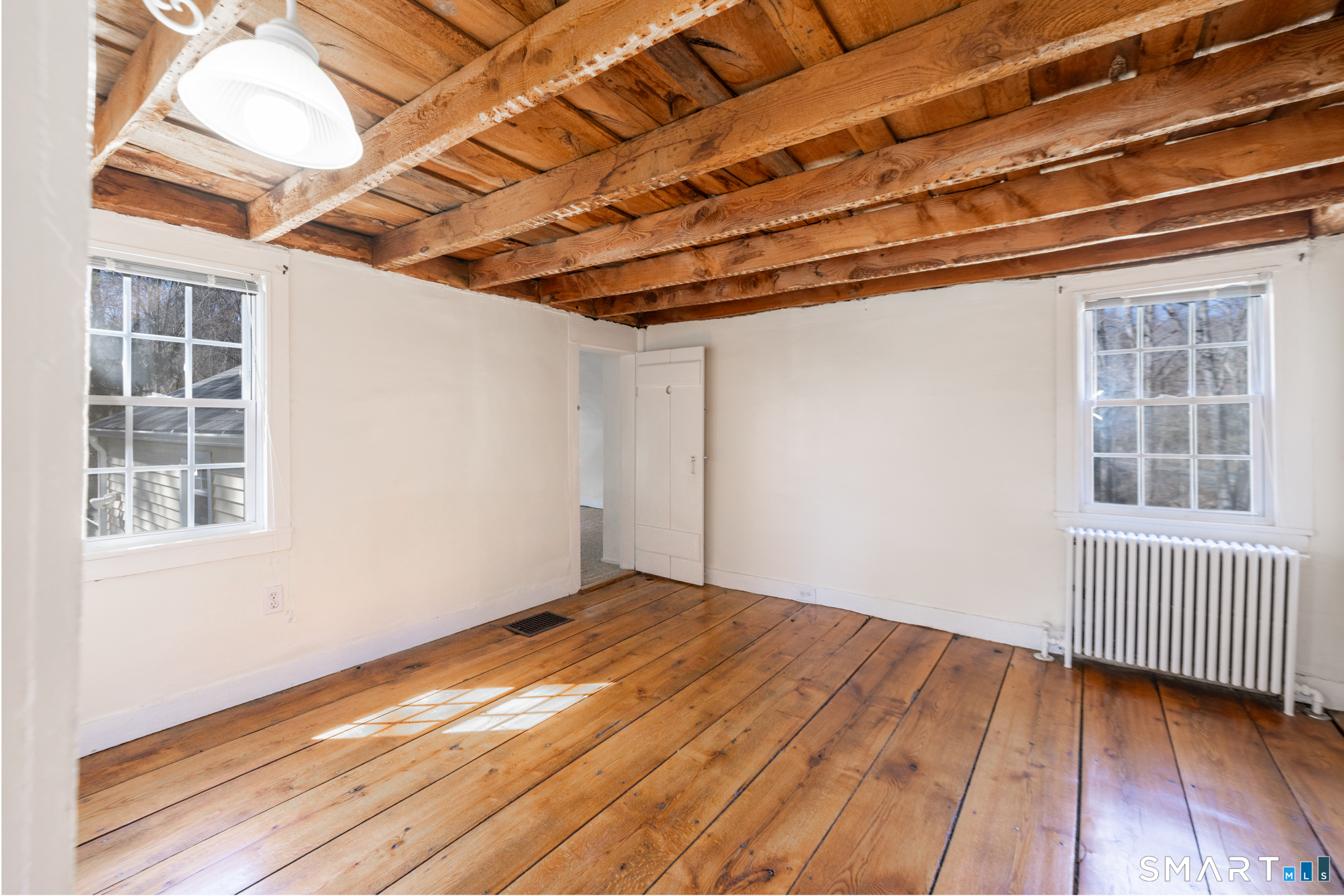 Wonderful 3-4 bedroom antique farmhouse featuring barn wood/hardwood floors and exposed beams throughout. Great farm house feeling. Main level offers a spacious eat-in kitchen, living room with wood-burning fireplace, half bath, and a den that can be used as a 4th bedroom. Upstairs includes 3 bedrooms and a full bath. Fully insulated and weatherproofed for year-round comfort. Enjoy full use of the yard, off-street parking, and a peaceful setting backing up to the Sleeping Giant River. Electric and water are included; tenant responsible for heat and internet. Good credit required.