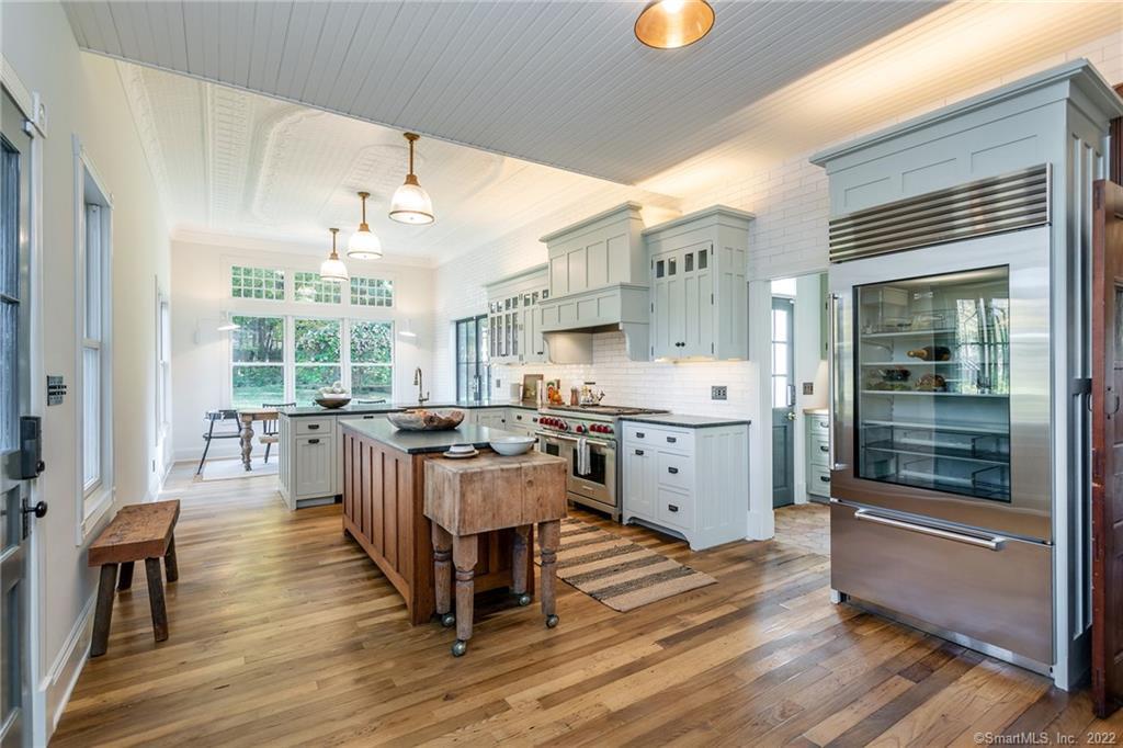 This historic Victorian home in the New Preston section of Washington is now available to rent after a tasteful top to bottom renovation, and the addition of a heated saltwater pool and hot tub. The main level of the home is highlighted by the expansive kitchen with soapstone counters, a butler's pantry, and French doors leading to a rear patio area. The remainder of the first floor features a living room, spacious great room, dining room, and an office with a full bath that could be used as a 5th bedroom. Upstairs are 4 bedrooms, each named after prior owners who have called "The Humphrey's House" home over the past 127 years, including a nephew of Mark Twain. The bright and sunny primary bedroom has a stylish walk in closet, and an en-suite bathroom with a steam shower and radiant heat flooring. A brand new bathroom in the second en-suite bedroom features the same top of the line upgrades. Two additional cozy bedrooms sit across the hall, with a third second level bath serving the two rooms. Well known British designer Graham Robert Moore has transformed this Victorian gem into a marvelous display of the modern day aesthetic without abandoning the history of the home. The 40 x 18 heated saltwater pool features an electric cover and 8 person attached hot tub. This gorgeous house is just a short stroll to swimming and boating at Lake Waramaug, shopping in the New Preston town center, 30 minutes to Metro North trains and 90 minutes from Manhattan!