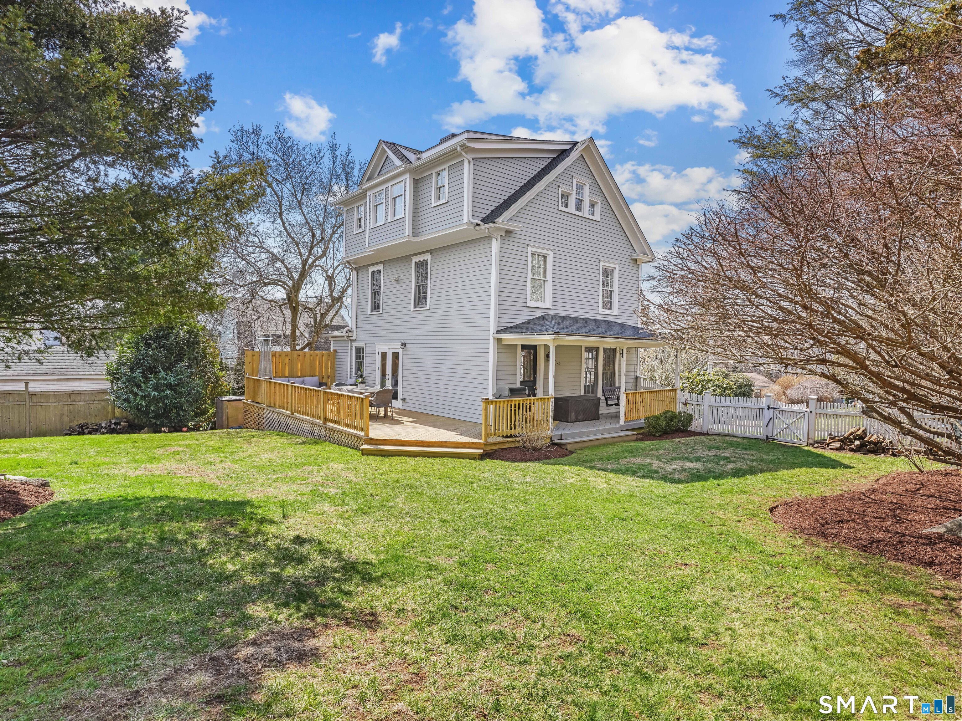 Nestled in the heart of historic Southport, this beautifully updated Colonial blends timeless charm with chic modern sophistication. The 3-bedroom, 2.5-bath residence showcases a newly renovated primary suite and new bathroom with heated floors. The sun-filled kitchen, and thoughtfully updated bathrooms are all complemented by refinished hardwood floors and abundant natural light throughout. A covered porch with swing, sets the tone for relaxed coastal living, while the new wraparound deck overlooks a spacious, level, professionally landscaped backyard ideal for entertaining and outdoor enjoyment. Recent upgrades including a new roof and freshly painted exterior provide turnkey peace of mind. Perfectly positioned just moments from the train, Southport Village, Fairfield's beaches, and top-rated schools, this exceptional home offers the best of historic character and everyday convenience.
