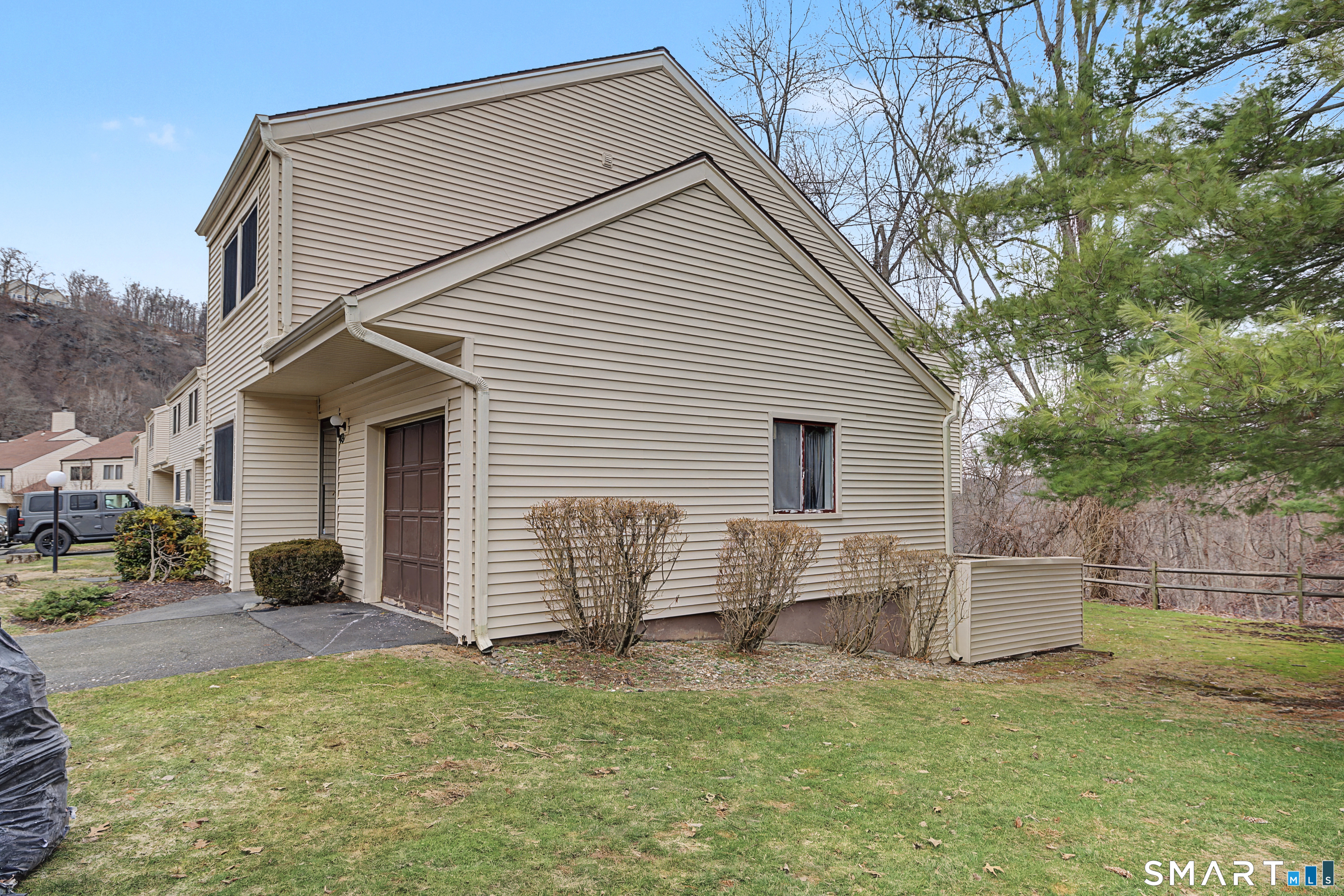 Welcome Home to 49 Deer Run, a beautifully maintained 2-BR, 1.5-BA townhouse perfectly situated on a quiet cul-de-sac in the desirable Plumtree Heights community. This multi-level contemporary home offers a serene retreat flanked by lush, private woods. Step inside to a bright main level featuring a charming eat-in kitchen, separate dining area, and half bath. The inviting split-level layout flows into a spacious living room boasting a wood-burning fireplace, and sliders opening directly to your private patio and yard-an ideal space for outdoor entertaining against a forest like backdrop. The upper level(s) feature two generous bedrooms, one being the primary bedroom with soaring vaulted ceilings, abundant closet space, and the added convenience of a dedicated laundry area on this level. Additionally, exceptional storage is provided by the attic and main-level crawl space. This unit has a 1 car garage that is currently a finished space and can be converted back easily. This unit features fresh paint, floors, new AC unit, updated appliances and is ready for a new owner. Community amenities include two in-ground pools, and playground. Located just minutes from the Metro-North station and minutes from Bethel's downtown-complete with restaurants, shops, and a movie theater. Don't miss this opportunity for easy living in a prime commuter location!