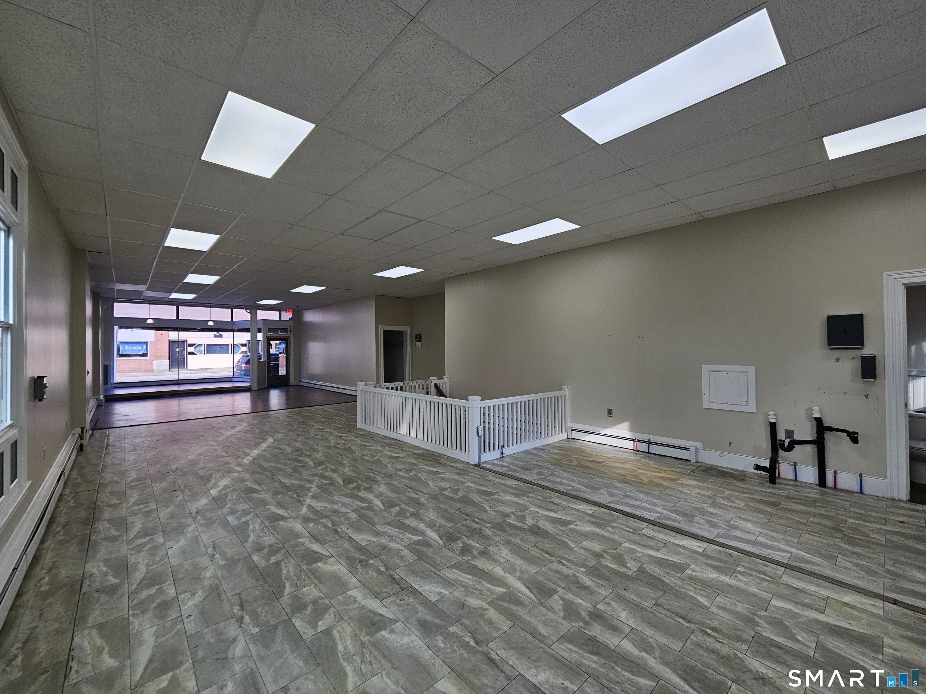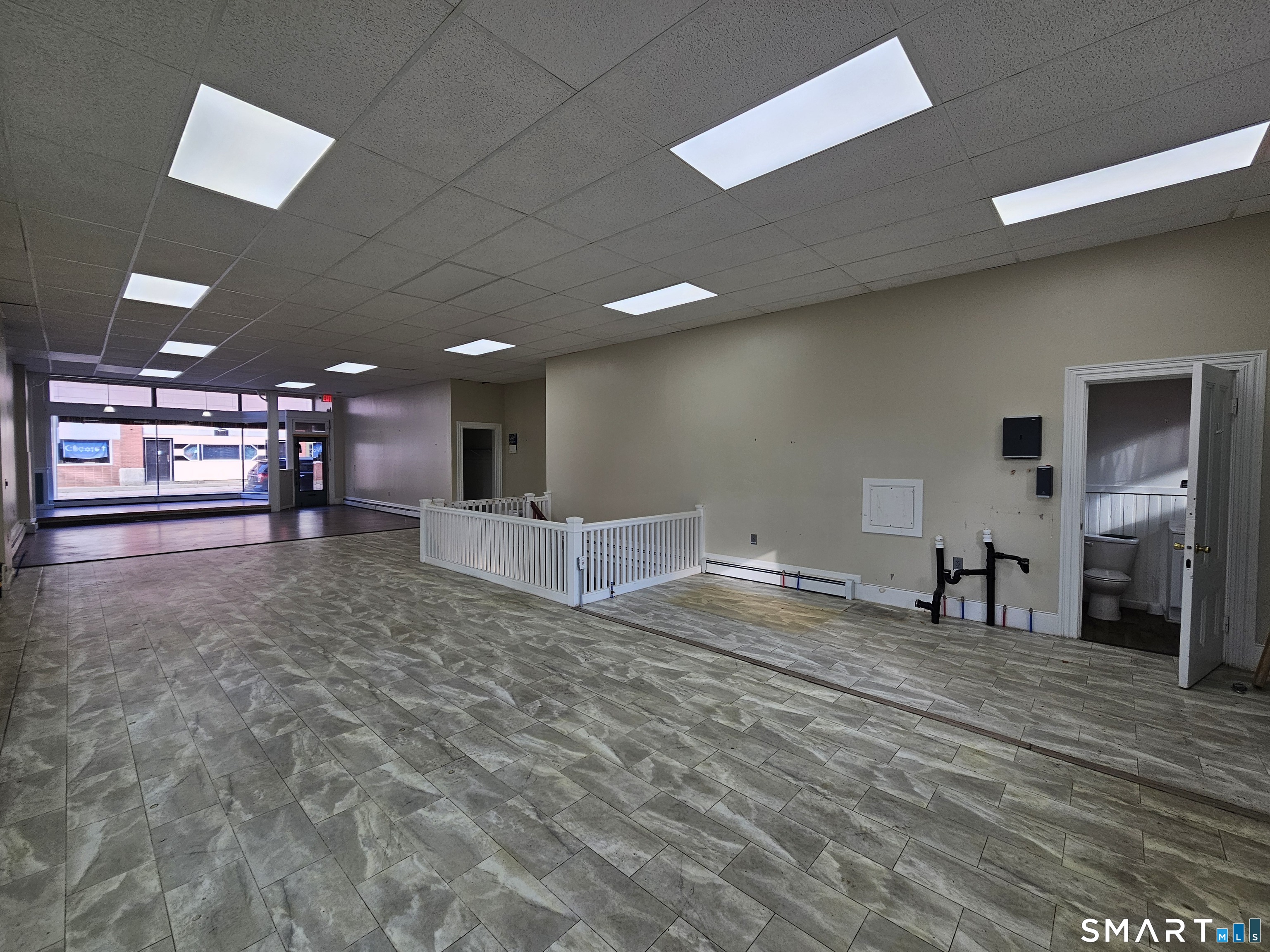 Commercial space for rent in highly desirable downtown Danielson location for ONLY 1200 a month. Bring your business to a busy location. Perfect for all businesses from a Spa, nail & hair salon, massage, accountant, attorney, realestate, retail, restaurant, coffee shop, storage and more. Beautiful Open floor plan with a BIG STORE FRONT WINDOW fior an abundance of exposure and signage. Large full basement for business use, storage or supplies. Front and back doors with a large PAVED PARKING LOT. Full bath in the unit. Located on the 1st floor. Tenant pays heat, hot water & electricity. Heat is City gas. Landlord pays city water, sewer, plowing & maintenance. Ready for a new business. Located in the Cyr building next to Todd's Carpets.