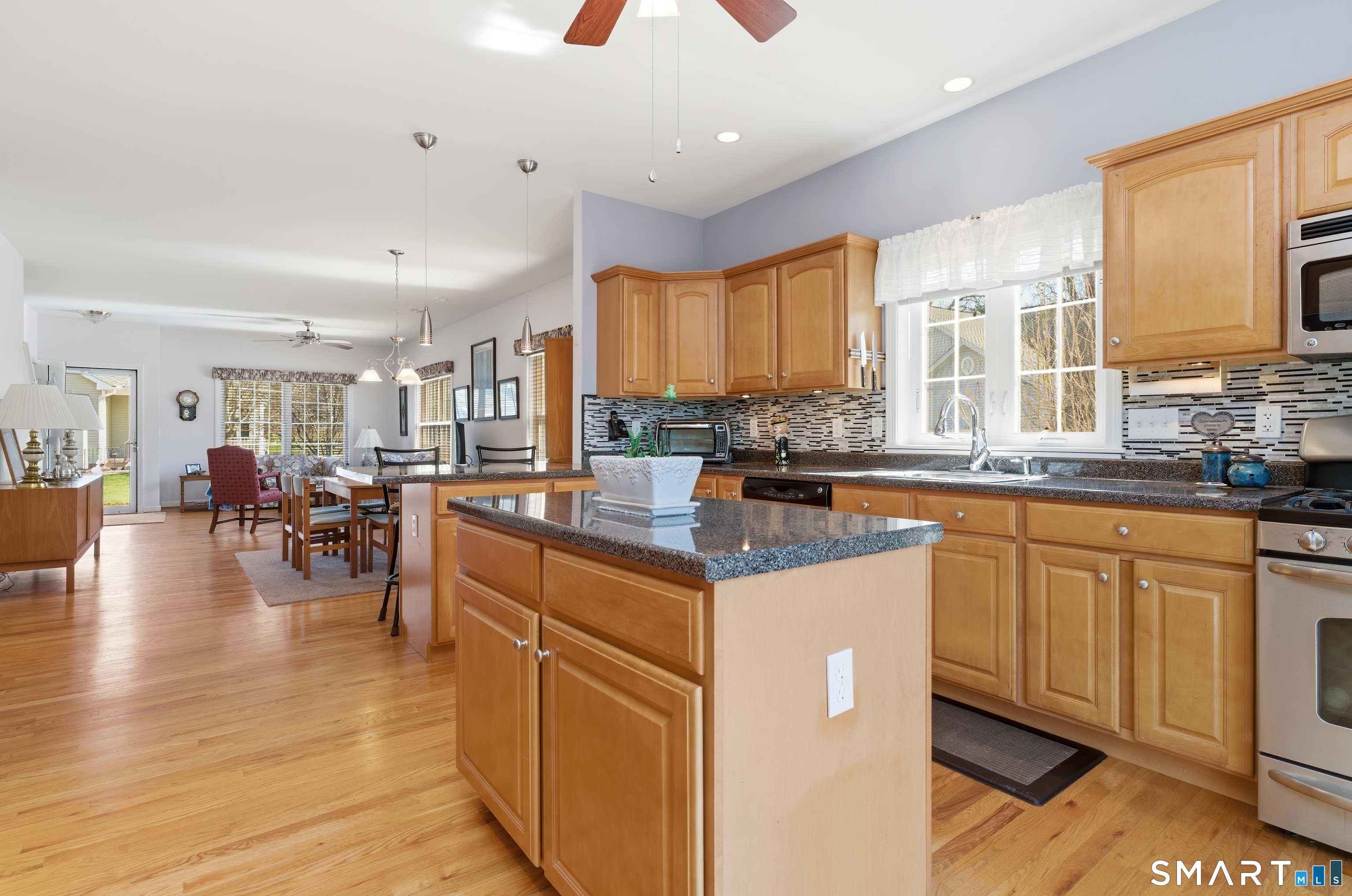 Let the Sunshine In this wonderful corner unit at Fairfield Village!! Step inside and fall in love with this open floorplan with hardwood floors through-out ! Here is your dream kitchen with so many cabinets including an island and a comfortable peninsula to enjoy your meals! The kitchen leads to a lovely deck with an beautiful awning that with a push of a button lends you shade! The home has a primary suite with walk in closet and pretty full bath with step in shower. There is a second bedroom on the first level and another full bath! Laundry is also tucked on the first floor! Upstairs the is spacious guest room with full bath... and there is also a large storage area with shelving upstairs. The basement has higher than normal ceilings that allows a space for your work out area, and a large workshop, all of which is heated! There is an attached 2 car garage and automatic start generator! Fairfield Village is located steps to groceries, tennis, restaurants. And close to doctors, health club, and route 2. All just minutes into town!