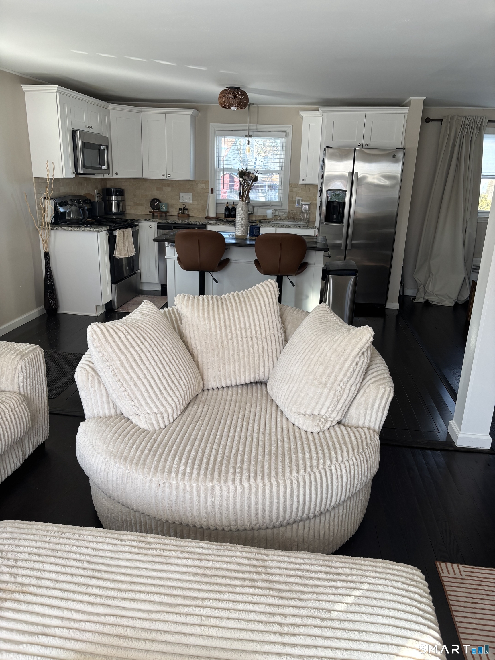 Welcome to 130 Round Hill Rd, a thoughtfully updated ranch-style home offering the perfect blend of comfort, functionality, and smart design. This home features 2 bedrooms, 1 full bathroom, and an open-concept main living area that creates a seamless flow between the kitchen, dining, and living spaces ideal for both everyday living and entertaining. One of the standout features of this home is the innovative access to the finished basement. Originally enclosed by traditional stairwell walls, the space has been reimagined to maximize usable square footage on the main level. The staircase remains in place but is now concealed beneath a custom hydraulic lift system with matching hardwood flooring, allowing for a clean, uninterrupted living area while maintaining full access to the lower level. The finished basement provides additional flexible space perfect for a family room, home office, gym, or guest area. Additional highlights include efficient layout, modern updates, and a design that prioritizes both style and practicality. A truly unique opportunity to own a home that combines classic ranch living with creative, space-enhancing features.