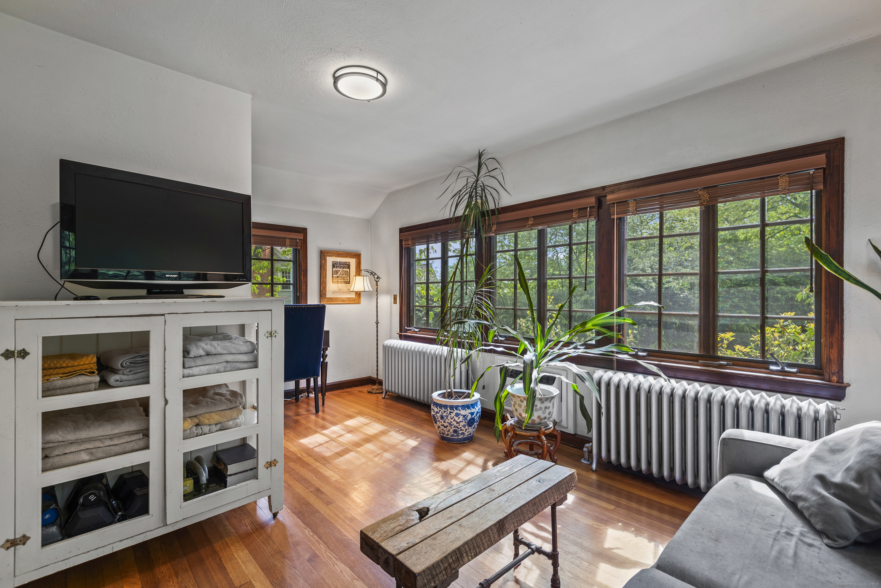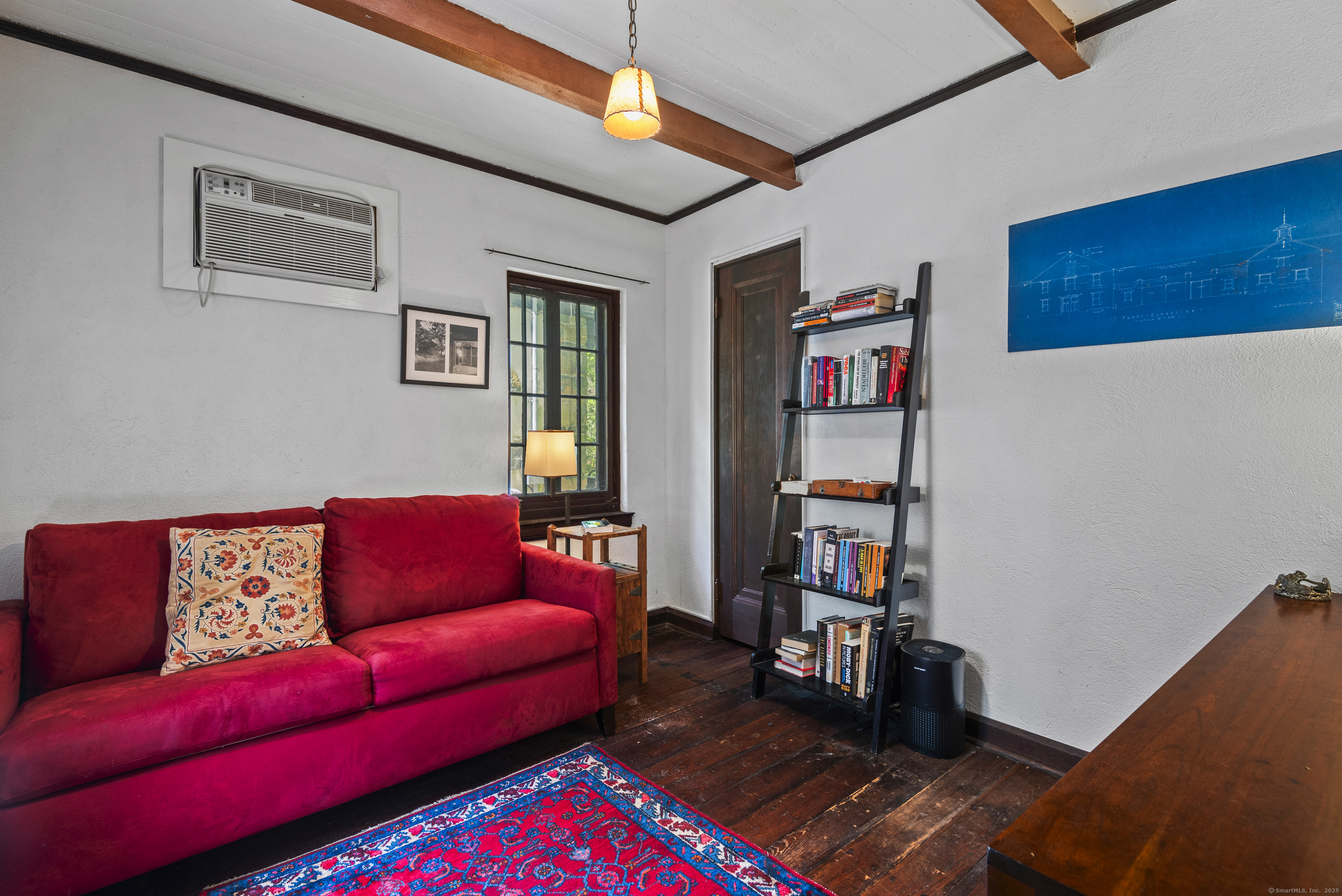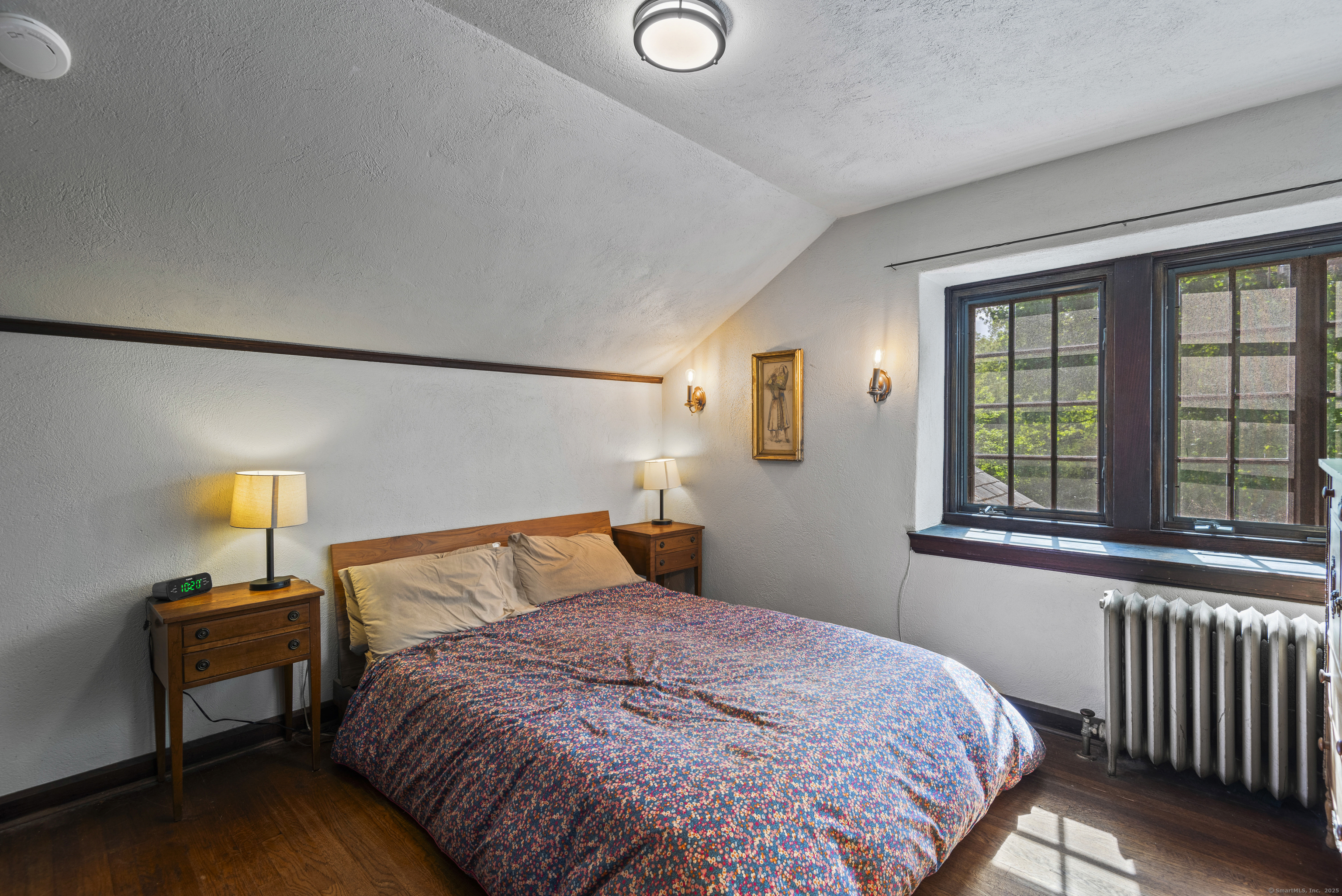 If you've ever dreamed of a storybook Tudor cottage tucked away in a peaceful setting, yet just minutes from Yale and downtown New Haven, this is the one. Originally part of the historic William Phipps Blake estate, this enchanting stone and stucco carriage house was thoughtfully converted into a private residence in 1924. The current owners have completed extensive updates, including a new kitchen, air conditioning and two beautifully renovated bathrooms. A newly laid stone path winds through lush, landscaped gardens and leads you to a home that feels truly magical. Inside, the foyer opens to a spacious living room featuring hardwood floors, arched doorways, two exposures, and a classic wood-burning fireplace. An adjoining reading nook with a built-in window seat leads to the dining room, which includes a charming built-in corner cabinet. The fully renovated kitchen blends historic character with modern convenience: exposed stone walls, custom cabinetry, new appliances, a pantry, and a cozy patio perfect for morning coffee. The first floor also includes a sunny study, a comfortable bedroom, and a fully updated bath - an ideal setup for guests or working from home. Upstairs, you'll find three additional bedrooms and another updated bath with an exposed stone wall. The primary bedroom includes a versatile adjoining room, currently used as an office, that could serve as a dressing room or nursery, or converted into an en-suite bath.