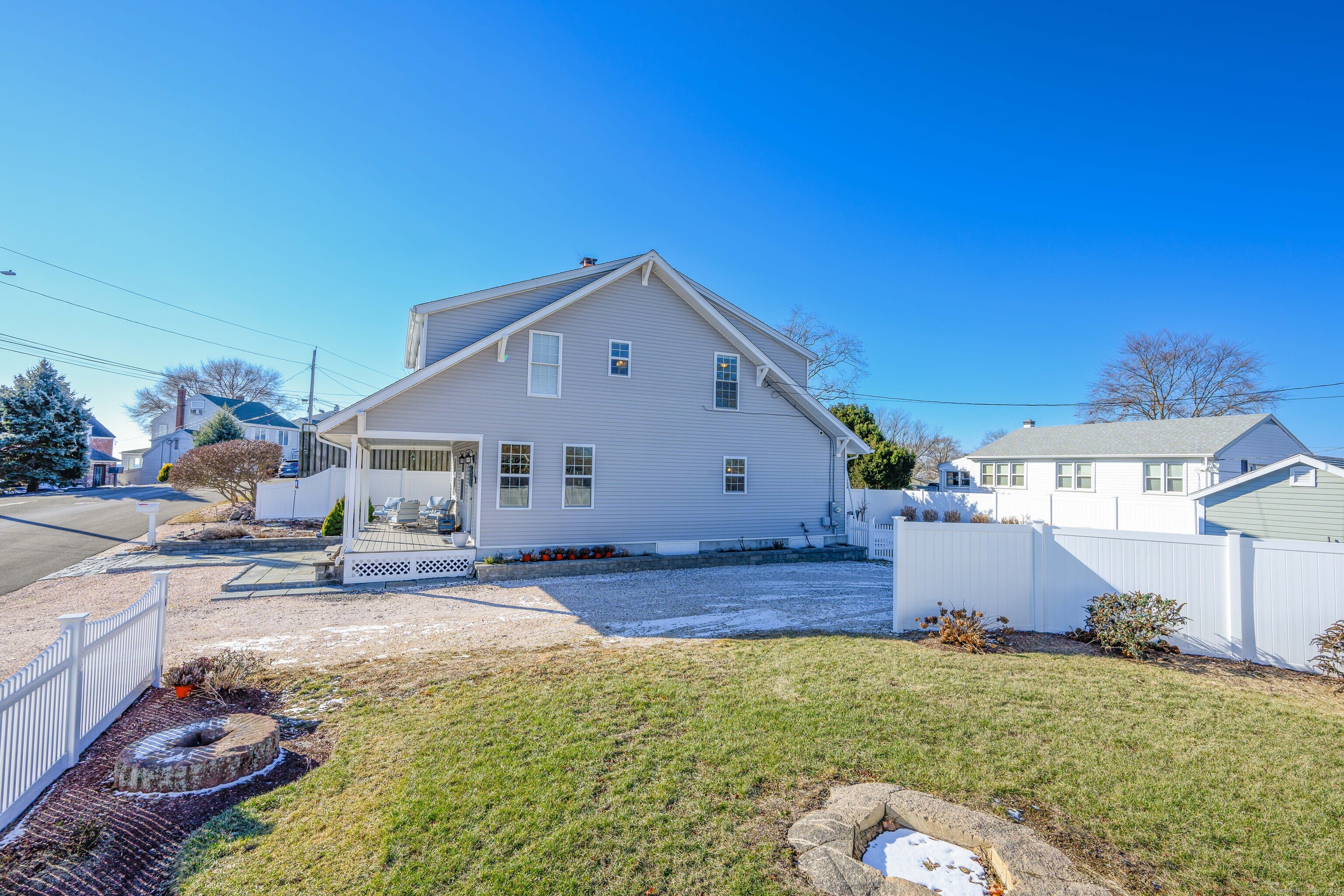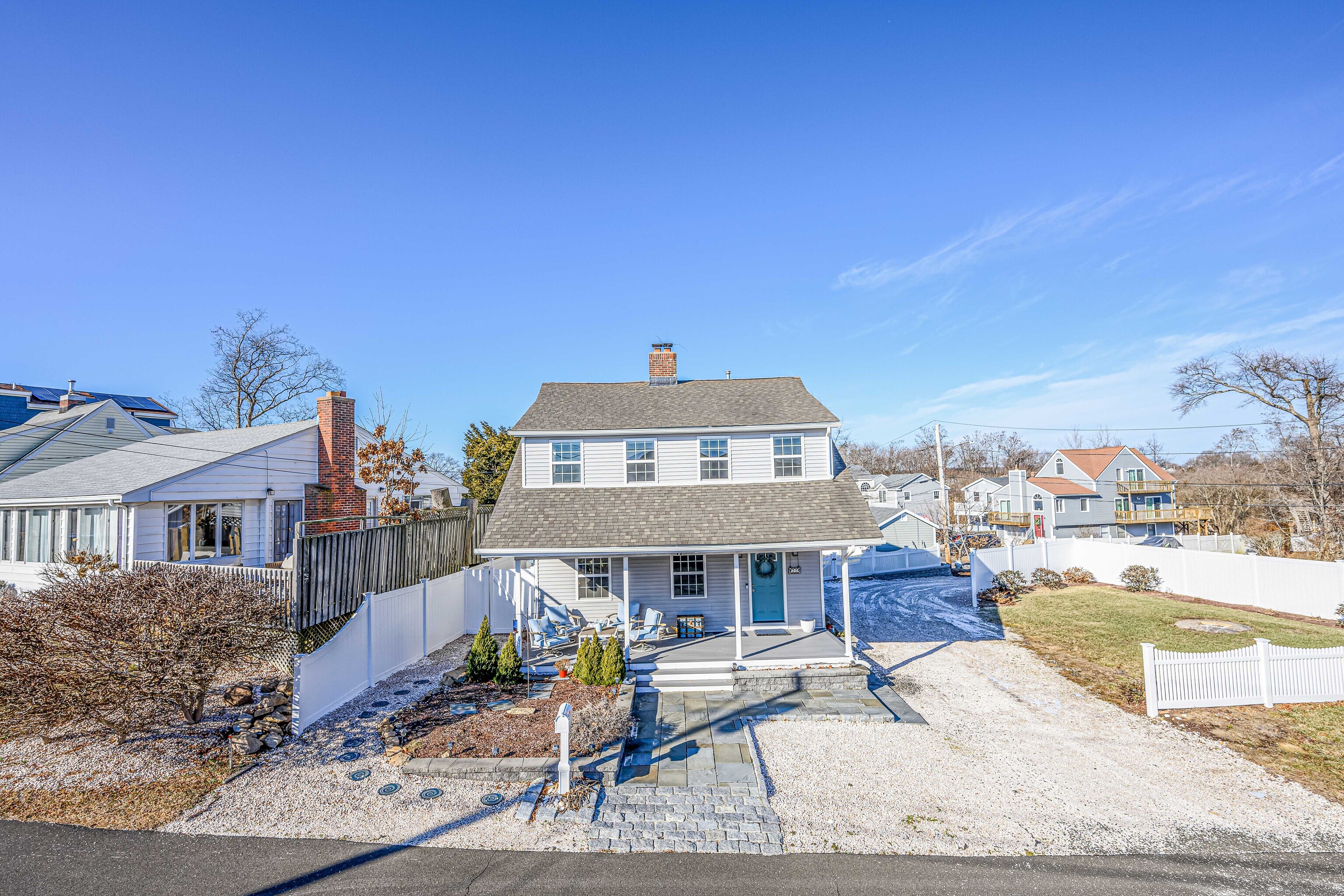 Move to the beach in 2026! Just imagine life at the shore, peaceful water views & picturesque beach walks just steps away from your front door. Indirect waterfront location set on a large beautifully landscaped fenced corner lot make this one of the finest spots in Morgan Point! Deeded beach rights & NO FLOOD INSURANCE! Pristine Cape Cod style home was completely rebuilt from top to bottom in 2020. Enjoy the tranquility of water views relaxing on your oversized covered front porch, Primary bedroom & bath. This stunning 3 bedroom, 2 full & 1 half bath home features a gorgeous kitchen w/granite countertops, gas range, stainless steel appliances & breakfast bar. Central air, 1st floor laundry, large closets, home office, bright open floor plan, gas fireplace are included on the long list of desirable interior features of this stunning home. The outdoor space, ideal for hosting barbecues w/family & friends, includes a HUGE new patio, fenced in yard, fire pit, new stone walls, spacious new shed, raised bed gardens...all demonstrating the pride of home ownership! Move in and start waking up to the sounds of waves and sunrises over Long Island Sound. A nature lover & beach worshipers dream location! Kayak, swim, jog, fish...it's all just steps away. 10 minutes to New Haven, 5 minutes to Tweed airport, 90 minutes to NYC. A turn key home...nothing to do but move in! A must see! Sunday 3/29 OPEN HOUSE HAS BEEN CANCELED- WILL BE RESCHEDULED ASAP