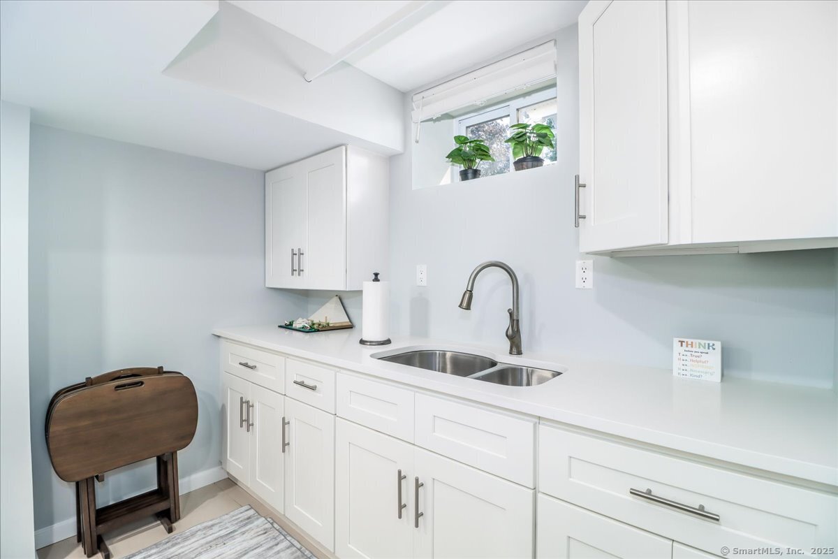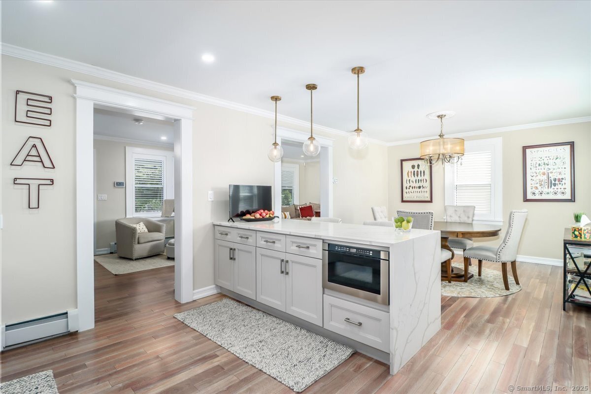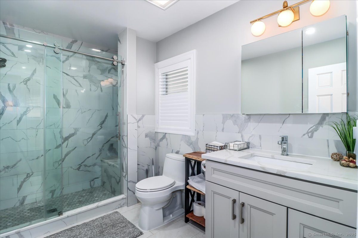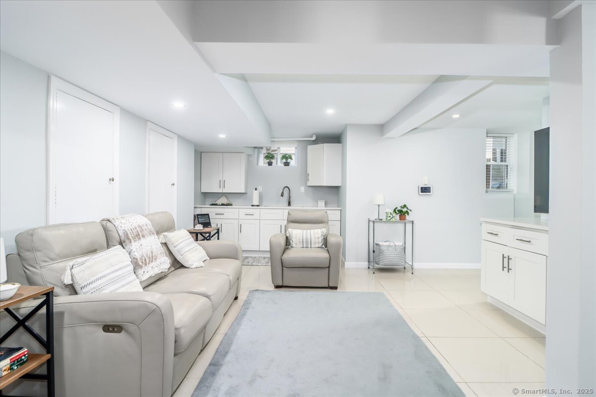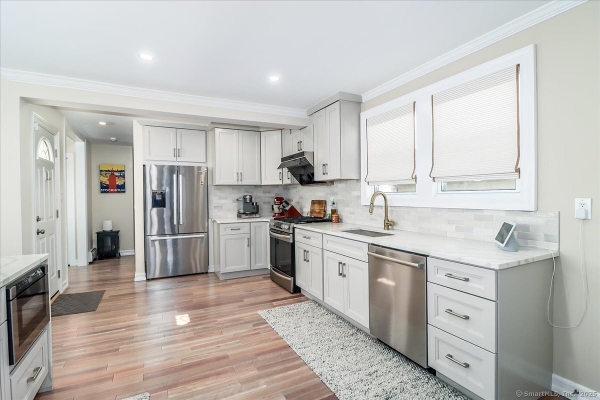 Walk to the beach by summer! Welcome to this beautifully renovated Shippan Colonial that perfectly blends modern updates w/classic charm. With 5 BRs, 2.5 baths, & multiple flex spaces, this home offers comfort & versatility. An inviting front porch sets the tone, while inside, the open flow allows light to pour in from all windows. The spacious LR flows seamlessly into the DR & showstopping kitchen w/quartz waterfall countertops, s/s appls, pantry & abundant cabinetry-perfect for everyday living & entertaining. Beyond the kitchen are 2 BRs & a full bath creating the perfect opportunity for a 1st flr primary suite, guest space, or home office. Upstairs, offers 3 add'l BRs & an updated bath + finished walkup attic ideal as an office, hangout space or gym plus add'l storage. The fully finished LL w/ separate entry & garage access, expands your options w/half bath, kitchenette, laundry & oversized media/family room-great for entertaining or multi-gen living. The 2 car heated & insulated garage is large enough for add'l storage. Outside, enjoy a large yard w/ plenty of room to play, garden, or relax. A covered patio provides a cozy retreat for outdoor dining & lounging or can be used as a carport. While perfect the way it is, there is also plenty of expansion potential. Minutes from I-95, Metro North & Downtown, the highlight is a short walk to Brennan's, Cummings Park & West Beach! Don't miss your chance to own in one of Stamford's most sought after communities!