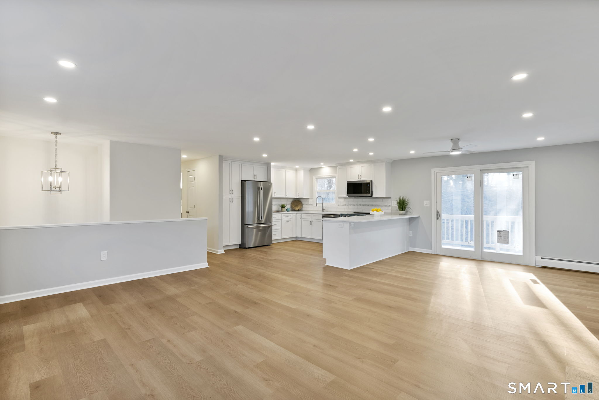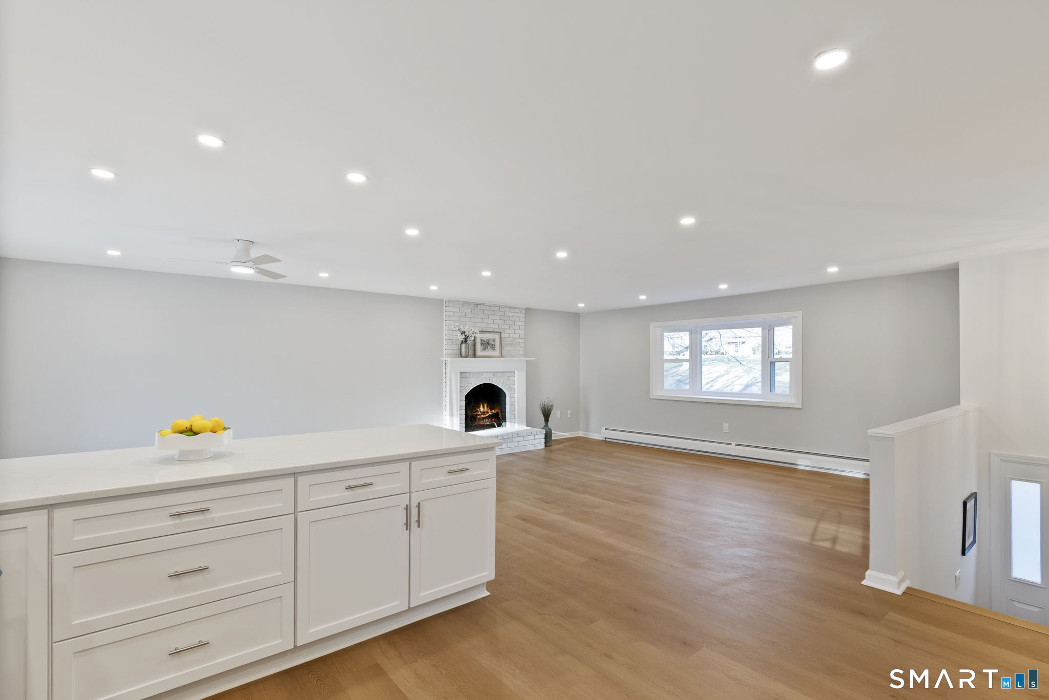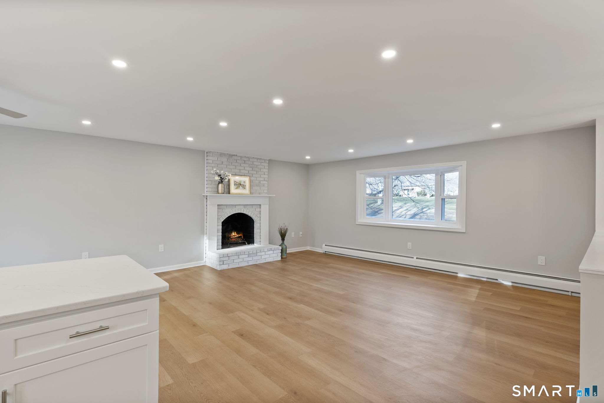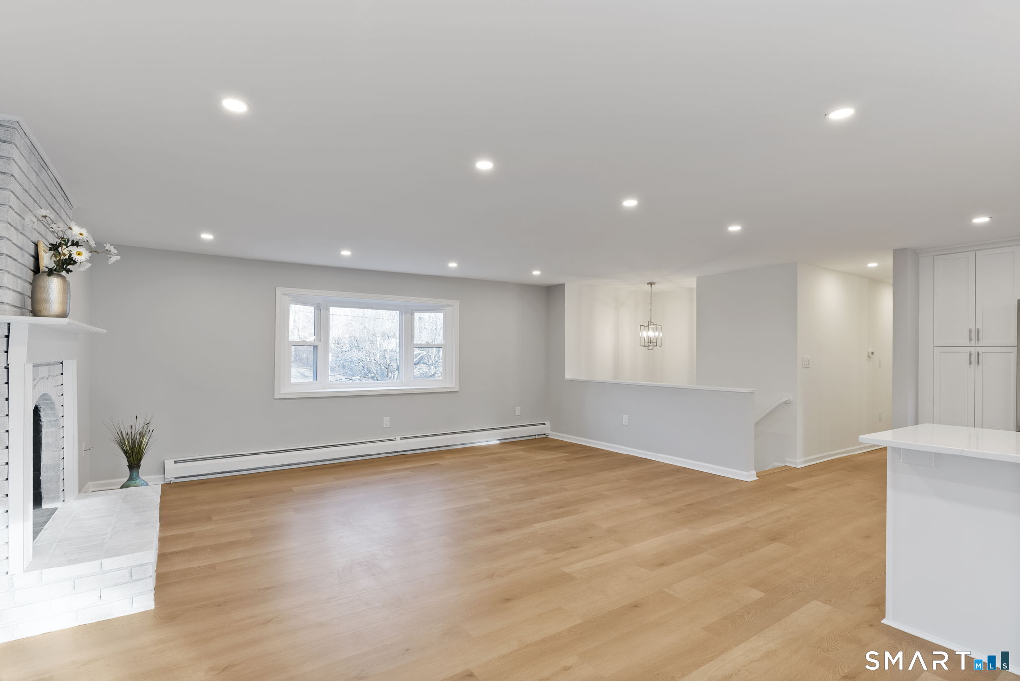 Completely renovated with attention to detail, this distinguished residence in the sought-after Buttonball neighborhood of Glastonbury offers 1,963 square feet of turnkey living space. Ideally positioned across from Buttonball School, the property is set on nearly an acre, abutting state-owned land and overlooking Smith Brook-an uncommon blend of privacy and natural beauty. The 1,338-square-foot main level presents a thoughtfully designed open floor plan, anchored by a beautifully appointed kitchen featuring quartz countertops, a breakfast bar, and new stainless steel appliances. The kitchen flows seamlessly into a spacious dining area and an inviting living room centered around a classic brick fireplace, creating an ideal setting for both everyday living and entertaining. Three bedrooms are offered, including a primary bedroom with an updated full bath, along with a fully remodeled hall bath. New flooring, along with a fresh, neutral interior, enhances the home's refined aesthetic. The finished walk-out lower level provides an additional 625 square feet of versatile living space, complete with a second fireplace, ideal for a family room, private office, or guest accommodations, with direct access to the patio and expansive backyard. Extensive upgrades-including a new roof, windows, siding, electrical, and plumbing-ensure lasting quality. This is a rare opportunity to enjoy a truly move-in ready home in one of Glastonbury's most desirable settings.