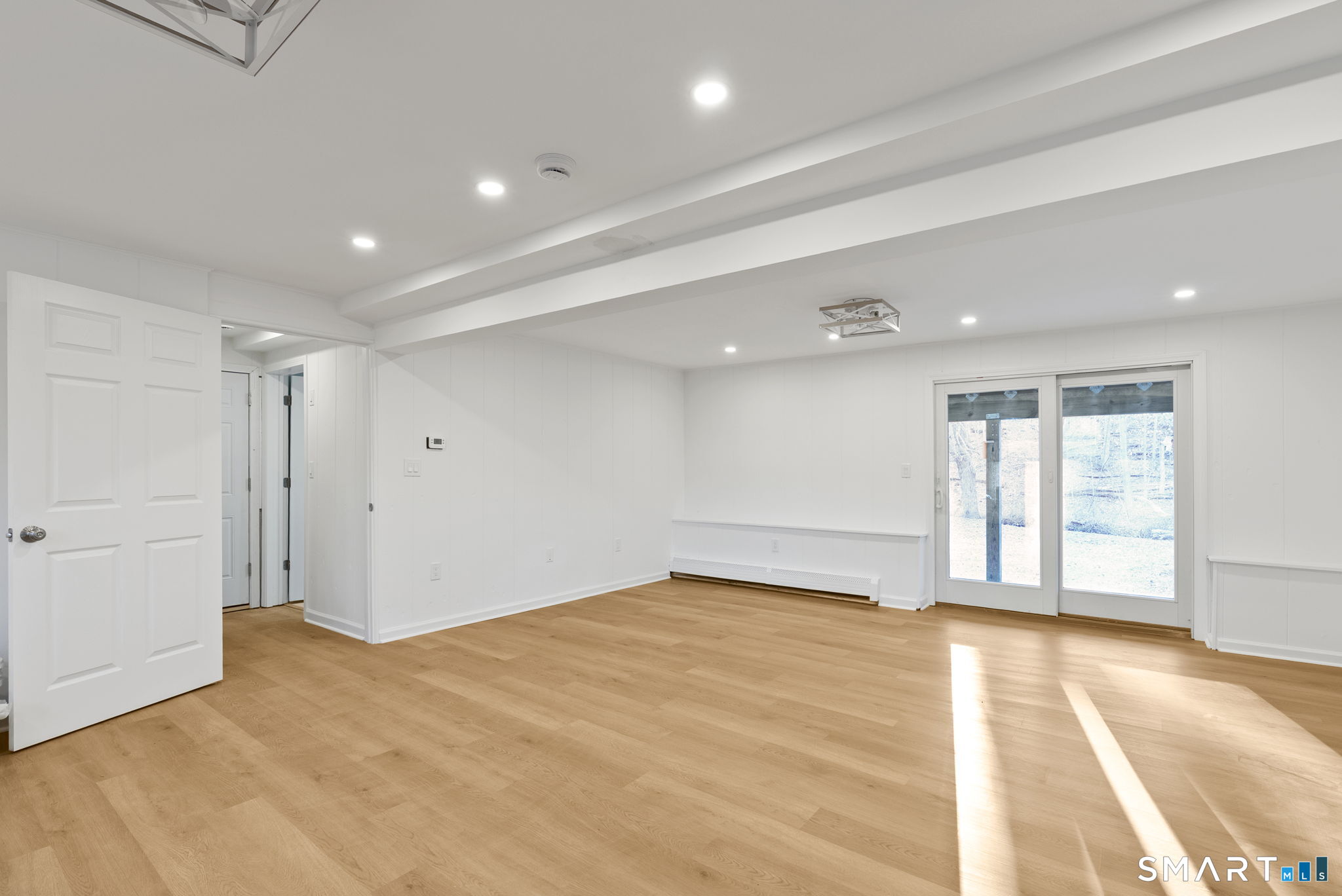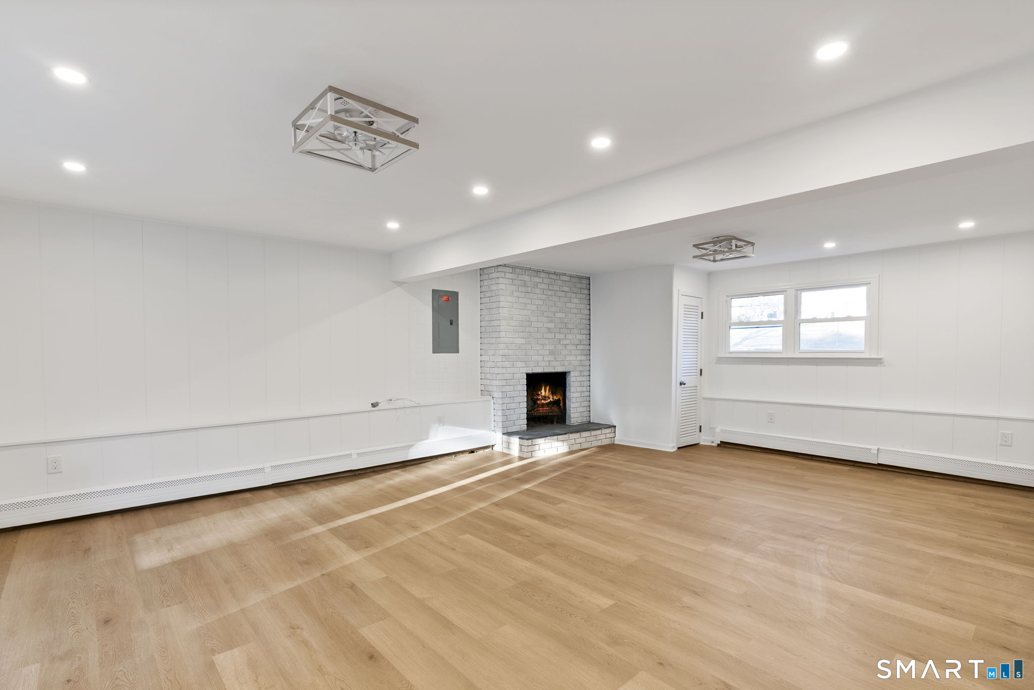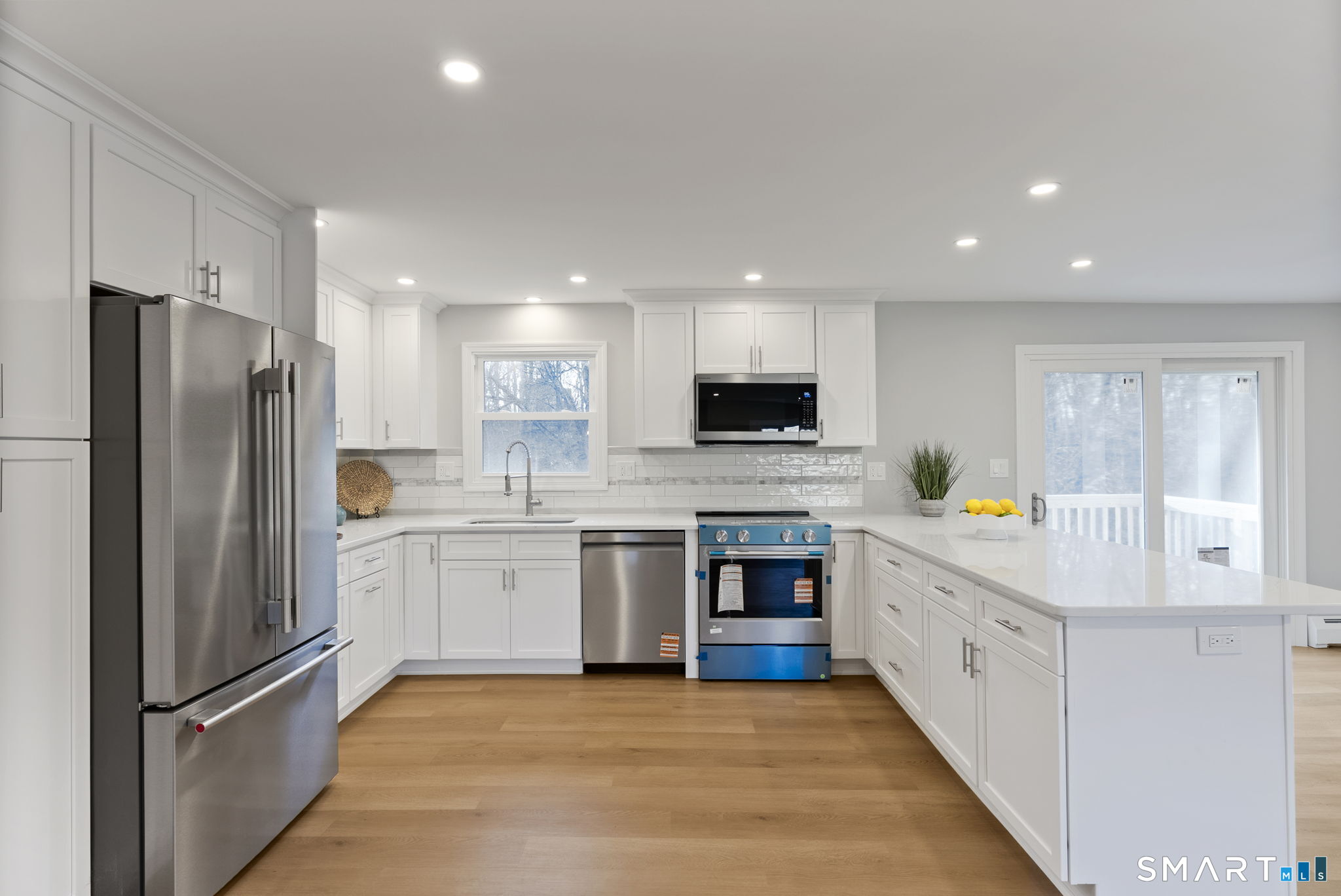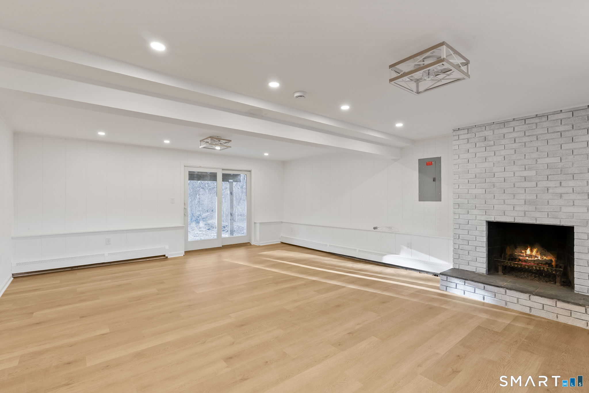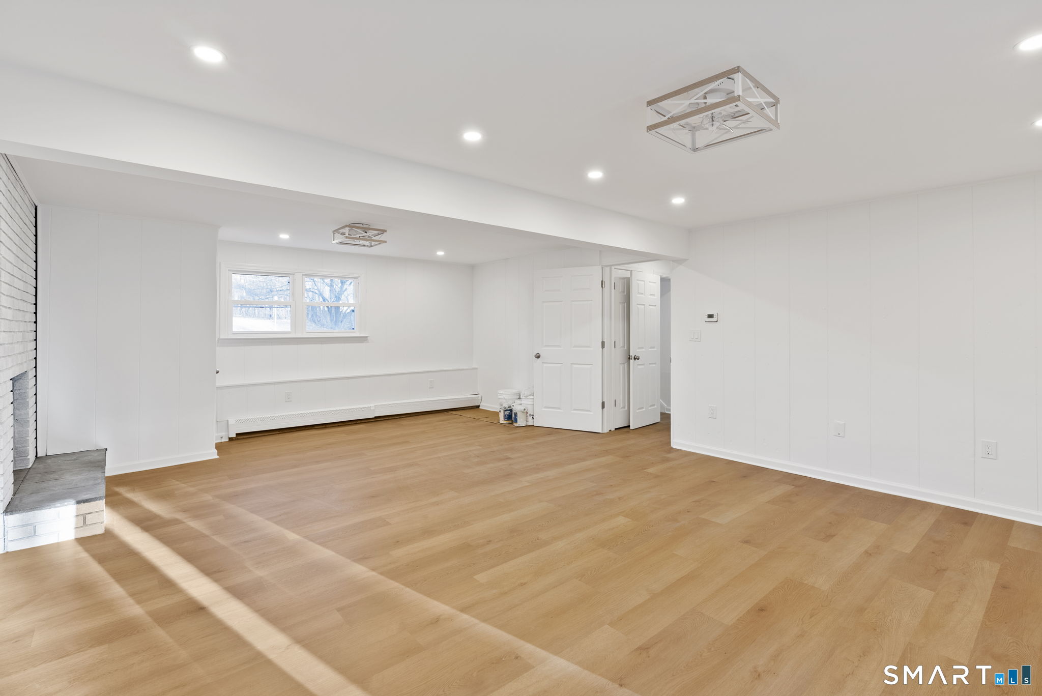 Completely renovated with attention to detail, this distinguished residence in the sought-after Buttonball neighborhood of Glastonbury offers 1,963 square feet of turnkey living space. Ideally positioned across from Buttonball School, the property is set on nearly an acre, abutting state-owned land and overlooking Smith Brook-an uncommon blend of privacy and natural beauty. The 1,338-square-foot main level presents a thoughtfully designed open floor plan, anchored by a beautifully appointed kitchen featuring quartz countertops, a breakfast bar, and new stainless steel appliances. The kitchen flows seamlessly into a spacious dining area and an inviting living room centered around a classic brick fireplace, creating an ideal setting for both everyday living and entertaining. Three bedrooms are offered, including a primary bedroom with an updated full bath, along with a fully remodeled hall bath. New flooring, along with a fresh, neutral interior, enhances the home's refined aesthetic. The finished walk-out lower level provides an additional 625 square feet of versatile living space, complete with a second fireplace, ideal for a family room, private office, or guest accommodations, with direct access to the patio and expansive backyard. Extensive upgrades-including a new roof, windows, siding, electrical, and plumbing-ensure lasting quality. This is a rare opportunity to enjoy a truly move-in ready home in one of Glastonbury's most desirable settings.