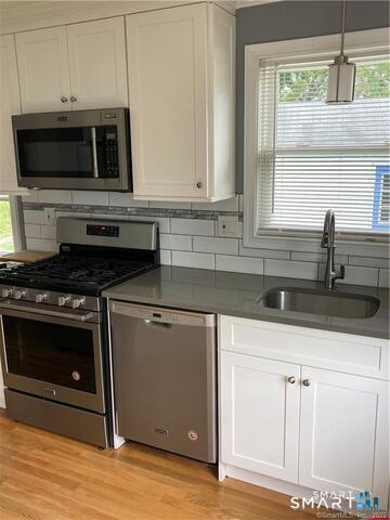 Like new... Renovated Ranch..Eat in Kitchen features Stainless Steel appliances including new Gas Stove; New Refrigerator; Dishwasher, New Microwave. The Washer and Dryer are in the lower level. House has Central Air; Gas Heat and Hot Water; City Water and City Sewers; Security System and Sprinkler System. Convenient location close to shopping; Exit 53 of I-95; Banking; CVS etc. There is a detached Garage and double wide Driveway; Shows GREAT!