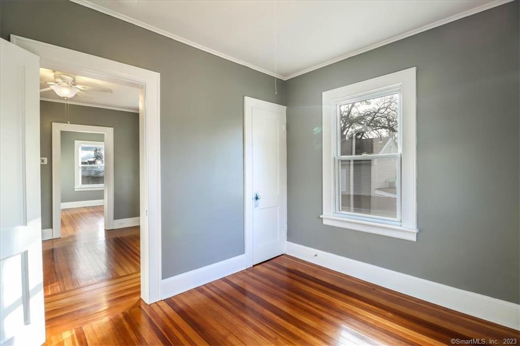 Downtown Milford, newly refurbished second floor unit with gleaming wood floors, & tons of natural light! Two nice sized bedrooms, sunroom, plenty of closet space. Updated Kitchen with white cabinetry, stainless appliances. Washer and Dryer and storage space in the basement for this unit. Walk to train, restaurants, bike to beach - tons of possibilities without using your car. Gas heat, off-street parking for two cars.