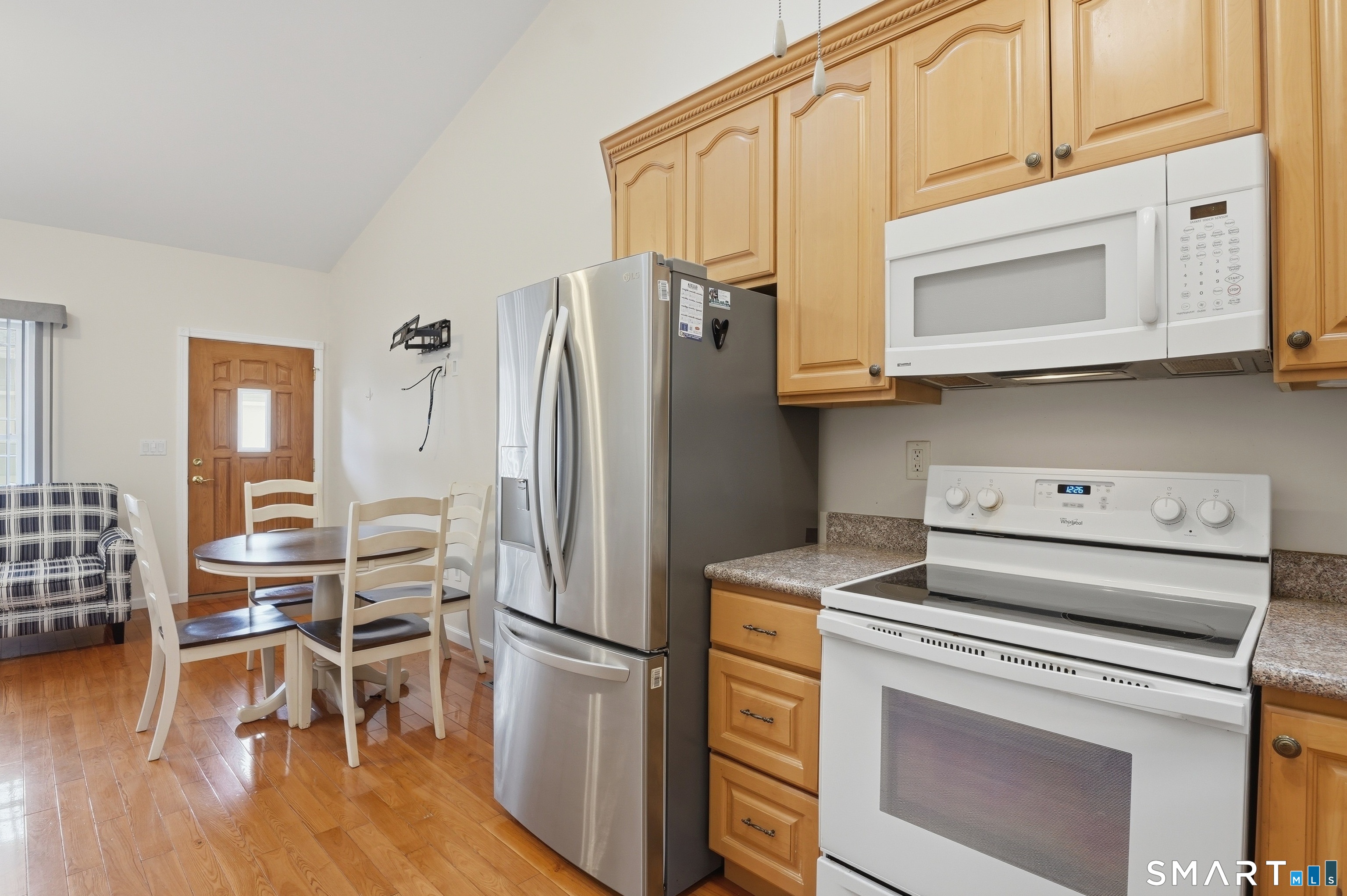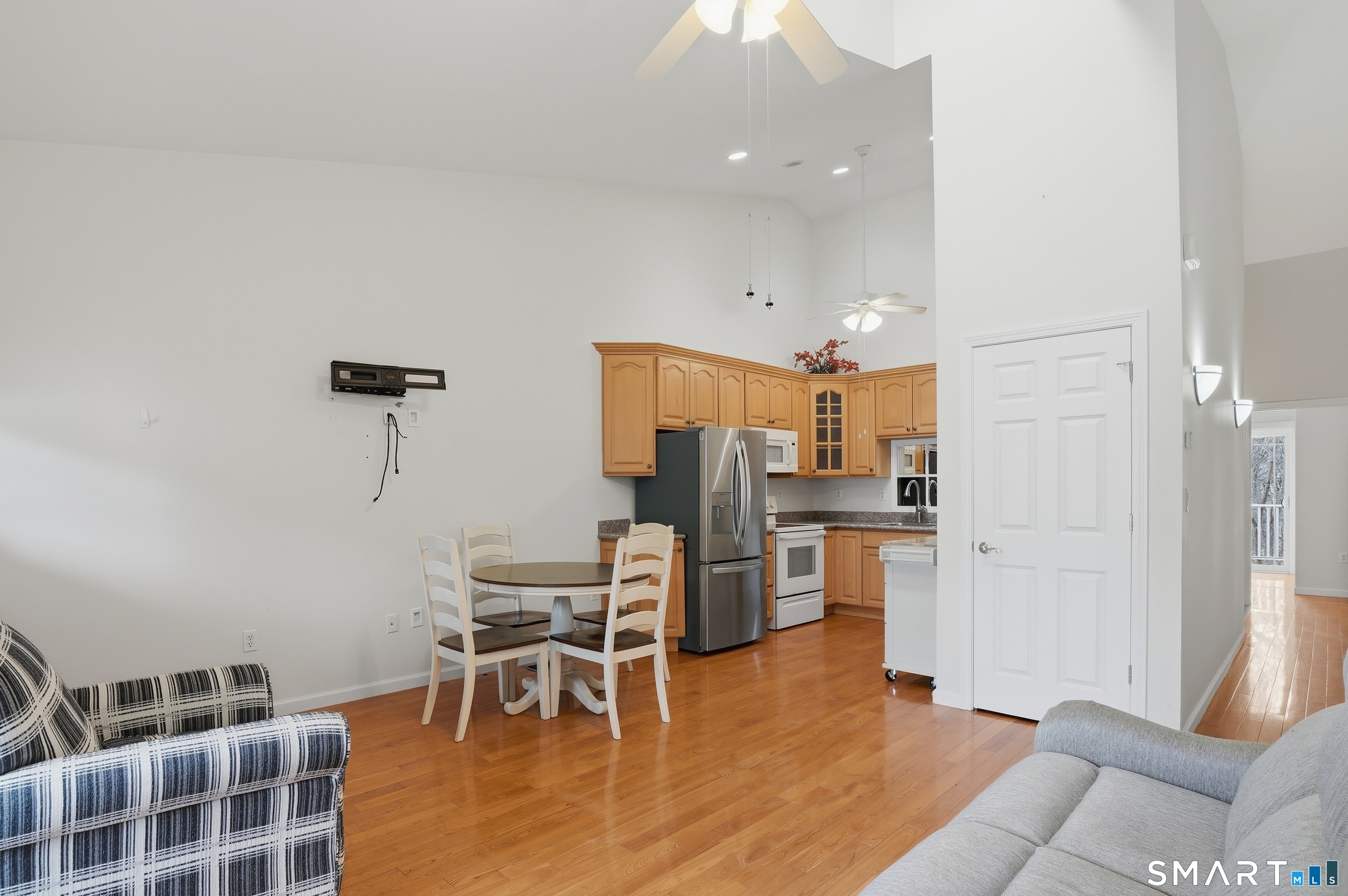 Discover comfortable and stylish living in this beautifully maintained 55+ community condo. This inviting 1-bedroom, 1-bathroom home features soaring high ceilings that create a bright, open atmosphere, complemented by elegant hardwood flooring throughout. The spacious layout offers a welcoming living area perfect for relaxing or entertaining, while the well-appointed kitchen provides ample storage and functionality. The generously sized bedroom offers a peaceful retreat with an attached private patio, and the full bathroom is designed for both comfort and convenience. In addition, a large basement provides abundant storage space-perfect for seasonal items, hobbies, or keeping everything organized with ease. Enjoy low-maintenance living in a quiet, well-kept community. Whether you're downsizing or seeking a simpler lifestyle, this charming home combines comfort, convenience, and timeless appeal.