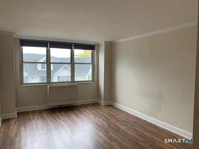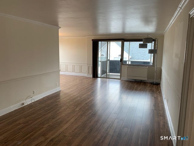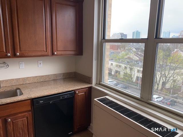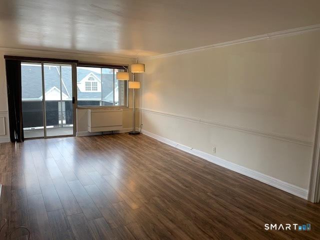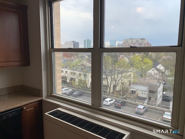 CITY LIVING AT IS BEST! Affordable convenient city living close to vibrant downtown Stamford. Secure doorman building. Spacious 1 bedroom, 1 and 1/2 bath condo with slider to private screened balcony. End Unit. Laminate floors throughout. Private parking in space # 57 plus guest parking available. This light filled end unit offers an open floor plan, large living room, separate dining area, kitchen with granite countertops. Laundry room conveniently located in common area on each floor. there is a health club with sauna and pool for summertime fun. Building allows cats but no dogs. Currently tenant occupied.