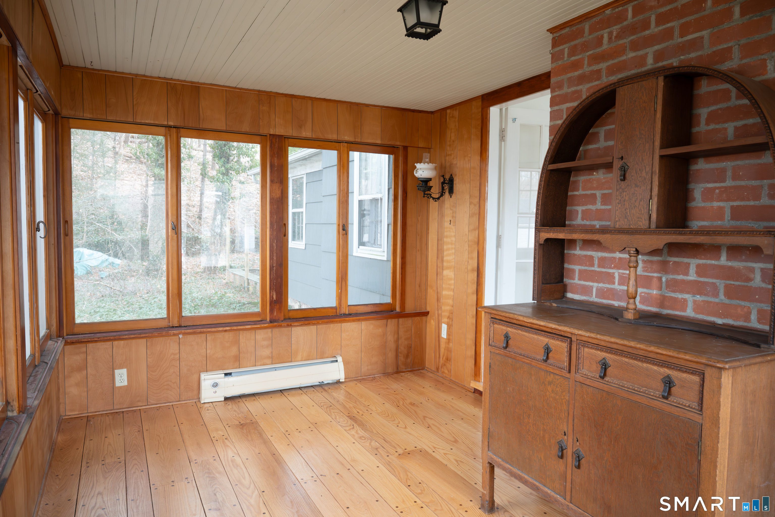 Set on nearly an acre of wooded surroundings in a convenient Avon location, this ranch-style home offers privacy, flexibility, and strong potential for customization. Previously configured as a two-bedroom residence, the layout allows for an easy conversion back depending on your needs. The main living area stretches across the front of the home and features a fireplace with a wood-burning stove insert and a large picture window that brings in abundant natural light. An adjacent room currently used as dining space could serve as a second bedroom, office, or den. The eat-in kitchen includes a bright bay window, while the generously sized primary bedroom provides comfortable main-level living. The partially finished lower level adds usable space with a bar area, laundry, and expansion possibilities. Outside, enjoy a stone patio, mature trees, and classic retaining walls, along with an oversized detached two-car garage featuring a full second floor offering excellent storage, workshop space, or future expansion potential. Additional storage shed included. Convenient to the Farmington River, trails, shopping, dining, and commuter routes.