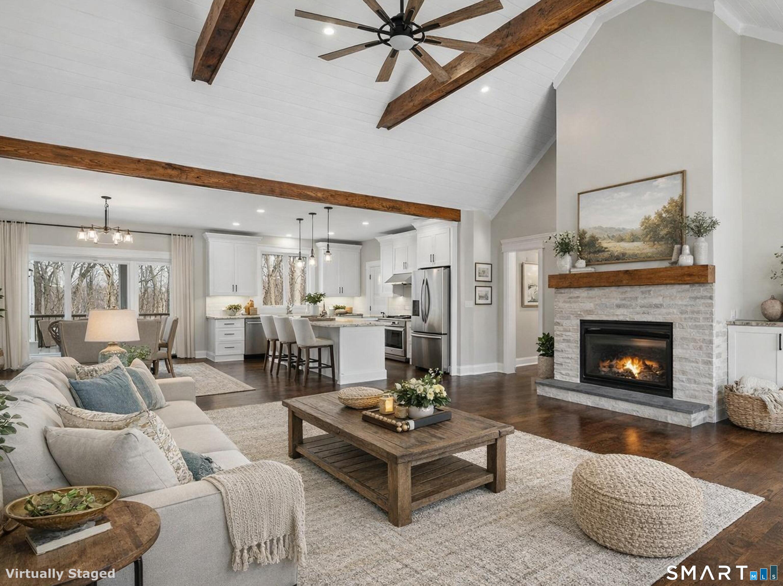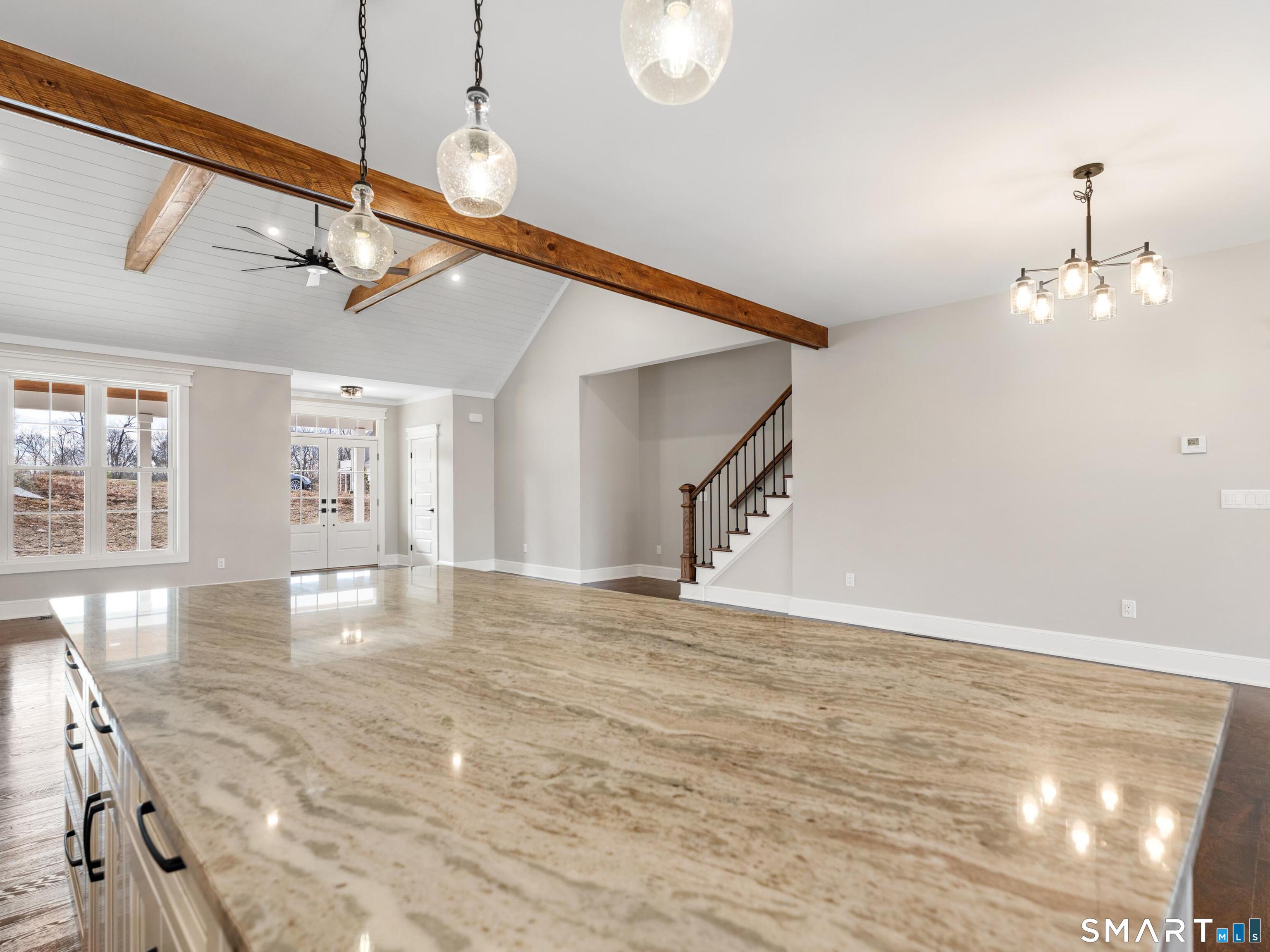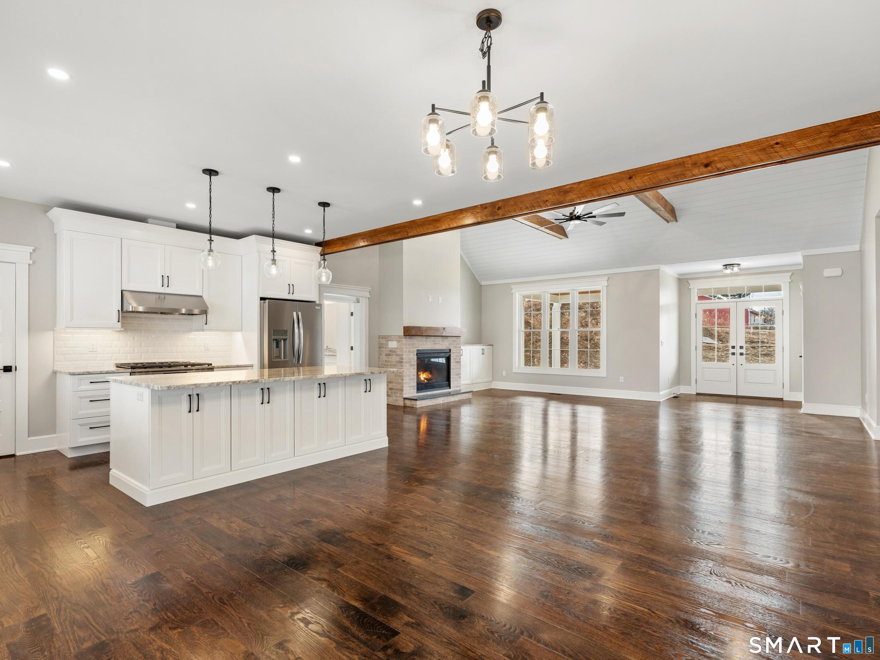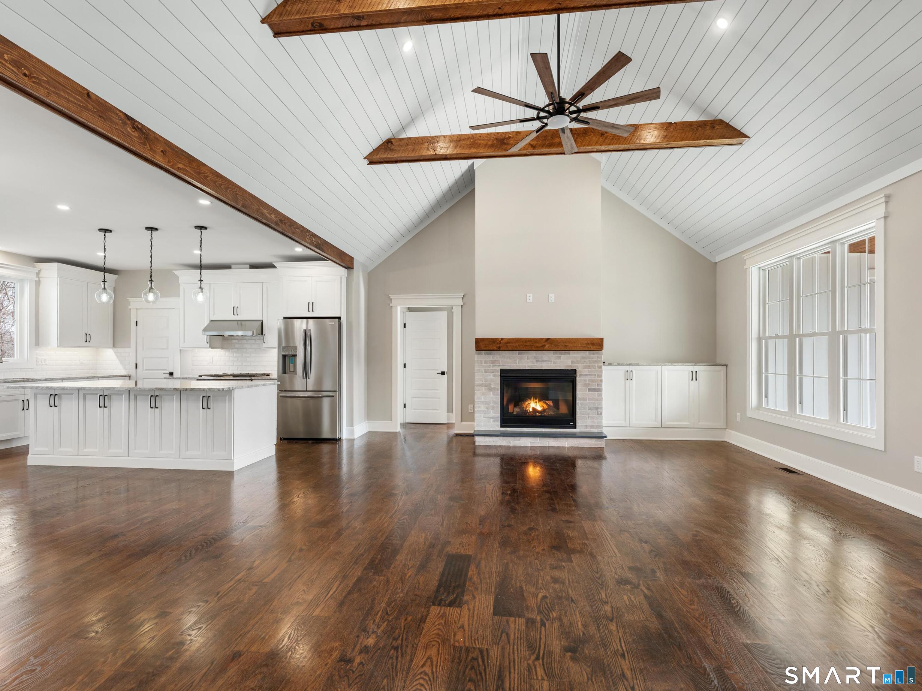It's ready for move-in! Quality built! Stunning New Construction! This brand-new Modern Farmhouse combines timeless curb appeal with today's most desirable features. Designed with symmetry and character in mind, the exterior showcases a welcoming covered front porch, a central gable, and expansive multi-panel windows that flood the home with natural light. Step inside to a vaulted family room with exposed beams and a cozy fireplace. Open dining area, and a chef's kitchen feature a large center island with seating, a walk-in pantry, and oversized sliders leading to the spacious 24x14 rear covered porch, perfect for outdoor dining. The thoughtful split-bedroom layout provides privacy for the luxurious owner's suite with private porch access, a spa-inspired bath, and a generous walk-in closet. Two additional bedrooms on the main level share a stylish full bath with dual sinks. Mudroom, laundry room with utility sink, and powder bath add to everyday convenience. Upper level (with own heat exchange) expands your living possibilities, offering a loft, bedroom, full bath, and walk-in storage. Additional highlights include: a three-car garage with natural light. This home features a full walk-out basement perfect for a home gym or office. This home is surrounded by many walking trails. Located in the center of Litchfield County, Goshen is the home of Sunset Meadow Vineyards, Action Wildlife Foundation, The Goshen Fair, Ivy Mt Park, and many nearby restaurants.