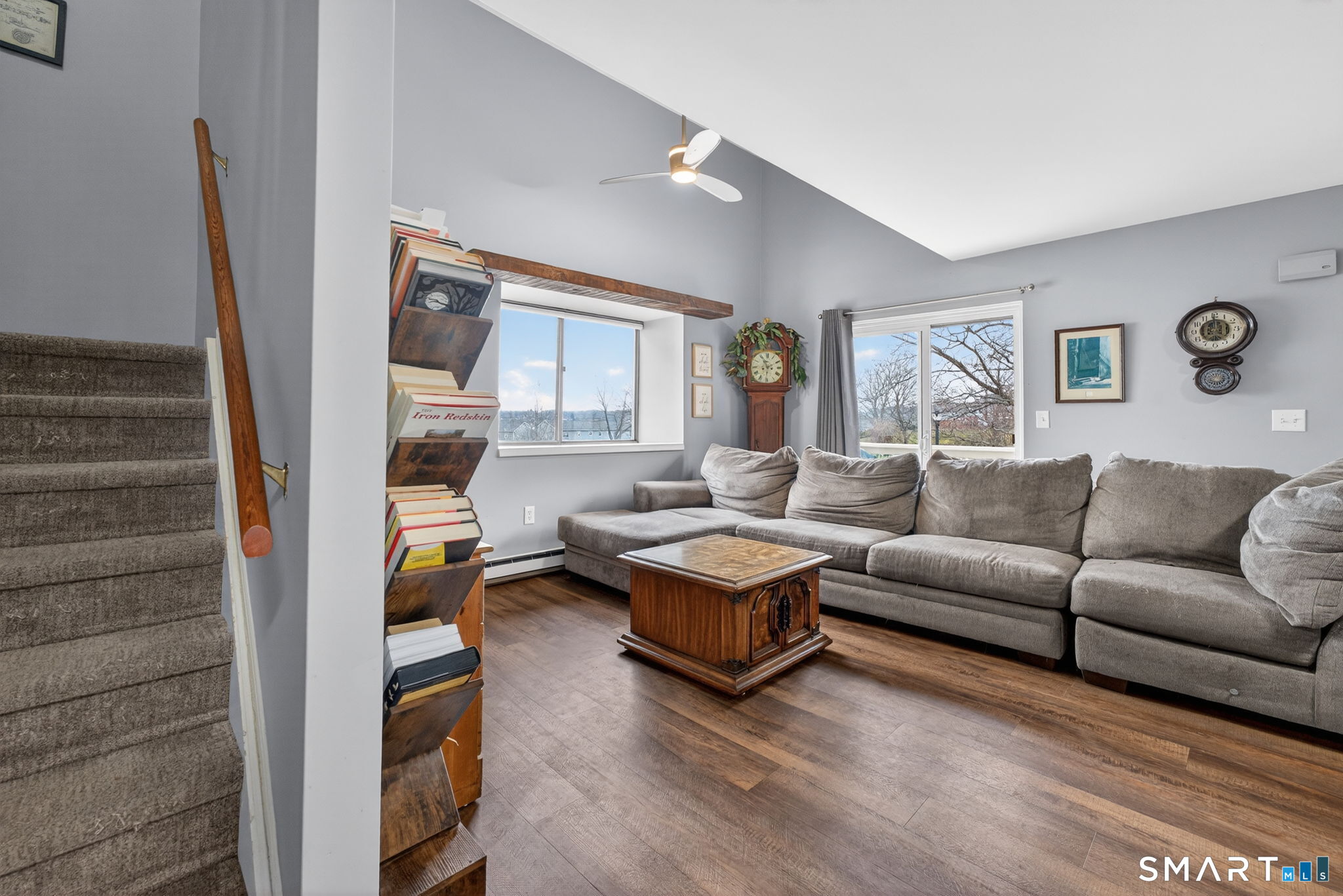 Desirable End Unit in Edgemere II! This well-maintained condo features an attached garage, private balcony, and versatile flex space perfect for a home office, guest room, or gym. Offering 1 bedroom and 1.5 baths, the unit also includes a convenient upstairs laundry hookup (washer & dryer not included) and brand-new carpeting on the stairs installed after the owner moved out. Additional storage is available in the floored attic with pull-down stairs. The seller has upgraded the home with Ethernet wiring in both the basement and main level, providing reliable connectivity for work or streaming. Located just steps from beautiful Lake Pocotopaug, Edgemere residents enjoy private lake and beach rights for swimming, kayaking, boating, and relaxing by the water. Currently the only available unit in this highly sought-after community, this is a rare opportunity to enjoy lake living in East Hampton, just minutes from parks, restaurants, and local amenities. Note: The Edgemere Condo Complex is not FHA approved.