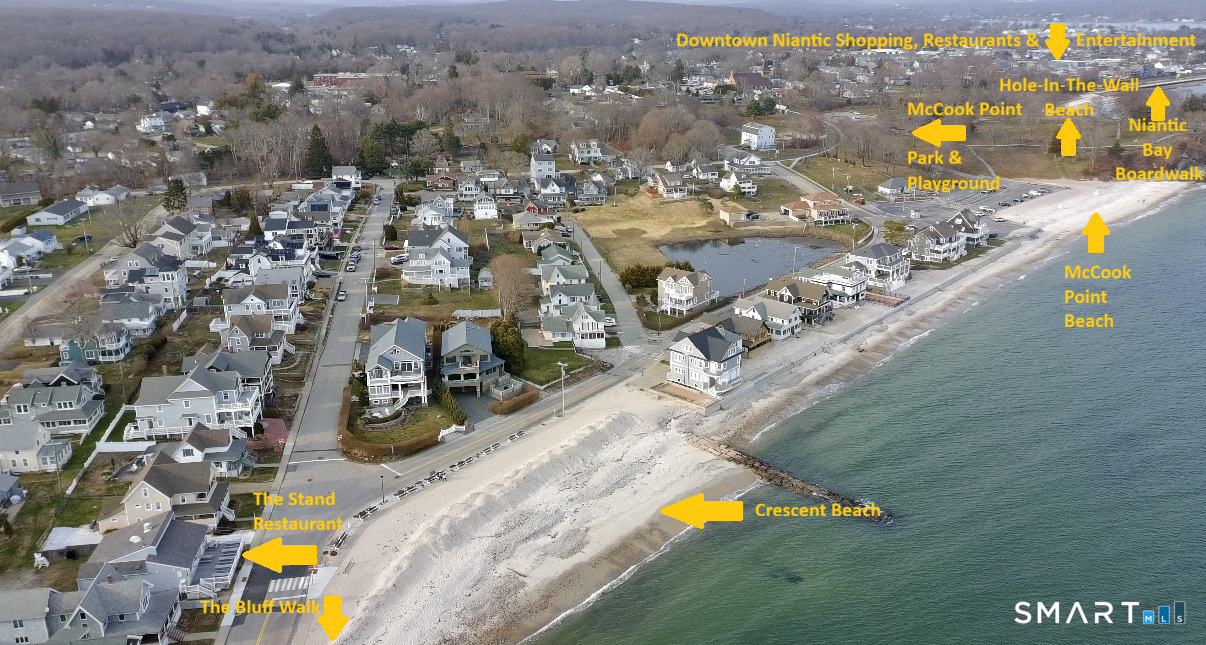 MODERN COASTAL RETREAT BY THE SEA! Move in just in time for summer fun. Enjoy coffee at sunrise on your spacious deck as Fido frolics in your fenced backyard, and later unwind with sunset views from the living room bay window. You'll love cooking in your thoughtfully remodeled kitchen with brand new stainless steel appliances, granite counters, white cabinetry & a generous breakfast bar, complemented by a tranquil updated full bath with new luxury vinyl flooring. Refinished hardwood floors add warmth, while plush carpeting upstairs & in the sunroom provides comfort throughout. A newer boiler & water heater enhance efficiency, and the roof offers lasting value. New exterior doors, modern light fixtures & fresh paint throughout complete this impeccably updated home. The full basement offers expansion potential for added living space, a home gym, and an abundance of storage. Beyond the home, the lifestyle truly sets this property apart. Conveniently located just 2 blocks to 2 Crescent Beaches, the bluff with stunning views, and dining overlooking the water at The Stand. Enjoy McCook Point Park, Hole in the Wall Beach, and endless coastal recreation. Store kayaks at the beach, request a mooring, or join the yacht club. Stroll the boardwalk, bike along the shoreline, or explore downtown Niantic's shops, dining & nightlife. Enjoy food, music & entertainment on Crescent Beach & views of the Celebrate East Lyme fireworks. Great income potential (subject to local regulations).