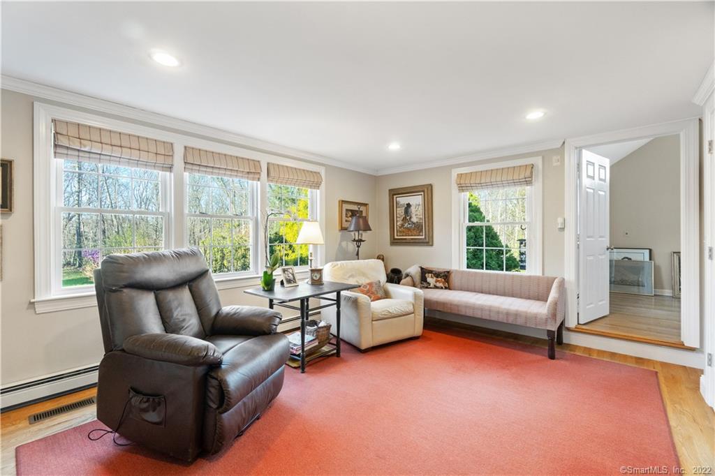 The one you've been waiting for-easy one-floor living in a peaceful Old Lyme setting just minutes to the Village. Set at the end of a quiet cul-de-sac, this well-designed ranch offers a functional layout with great flow between living spaces and abundant natural light throughout. The home features a spacious primary suite with a walk-in closet, walk-in tub and separate shower. There are two additional bedrooms and a full bath on the main level, making everyday living simple and convenient. The eat-in kitchen is adjacent to a comfortable family room and a spacious office that can easily serve as a fourth bedroom which has direct access to a third full bath, ideal for guests, working from home or flexible living arrangements. French doors from both the living room and primary suite lead to a stone patio overlooking a private yard bordered by protected land with access to scenic trails. A detached barn and garden shed offer versatile storage and utility, while a newly installed generator provides added peace of mind. While the home may benefit from minor updates, it presents a rare opportunity in a highly desirable location close to the Village, beaches, and local amenities. Come take a look!
